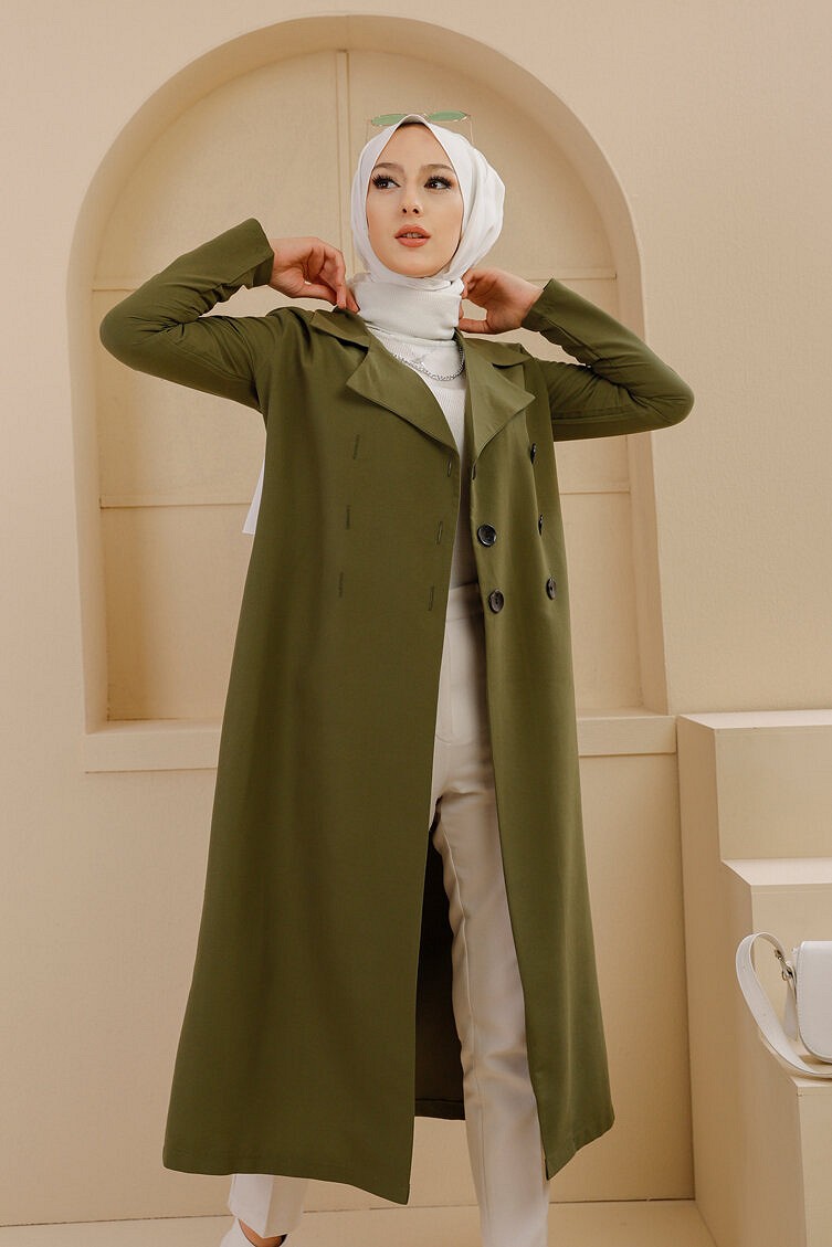 Trench femme (Manteau Hijab Saison Automne Hiver) - Couleur kaki