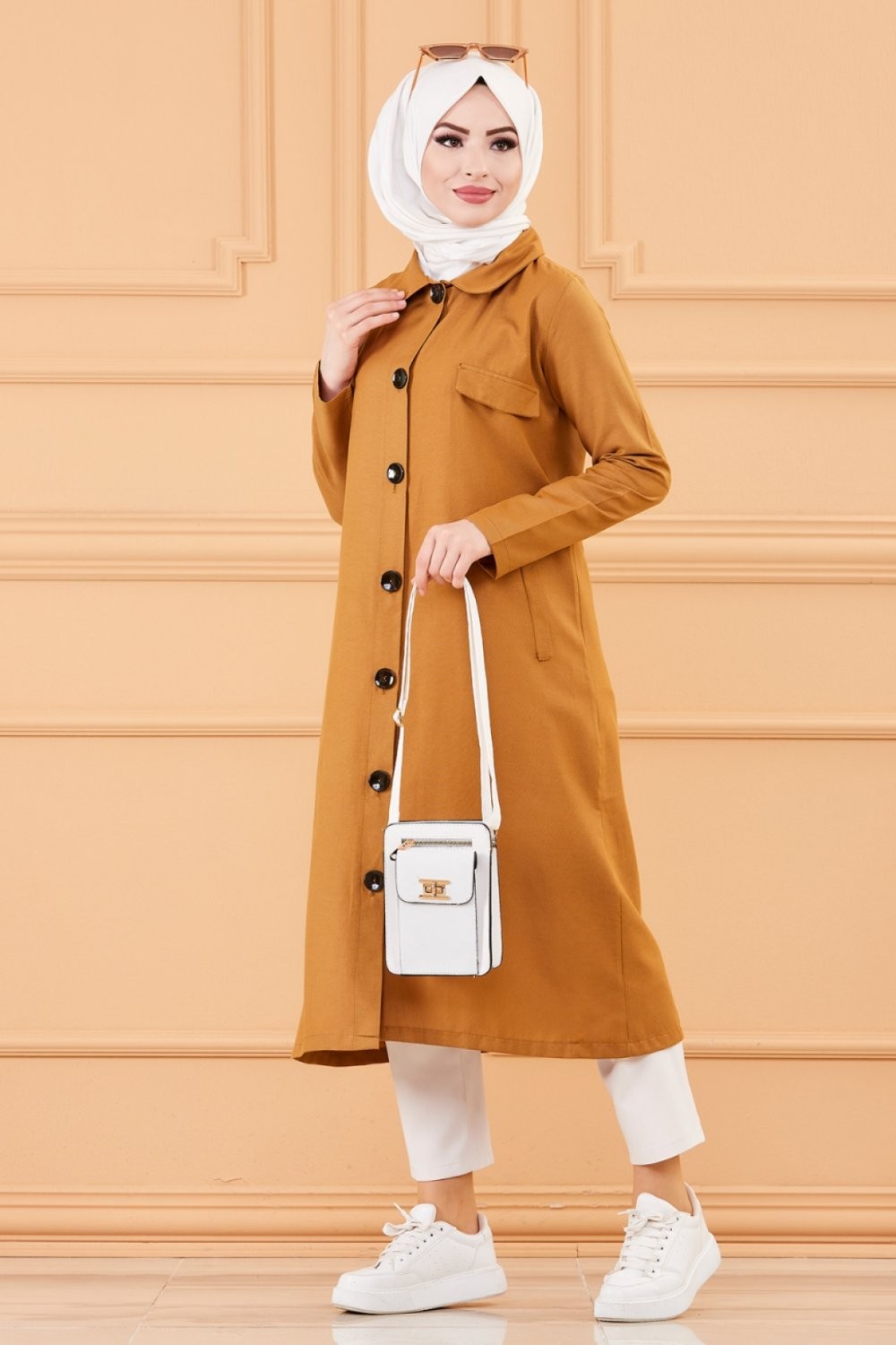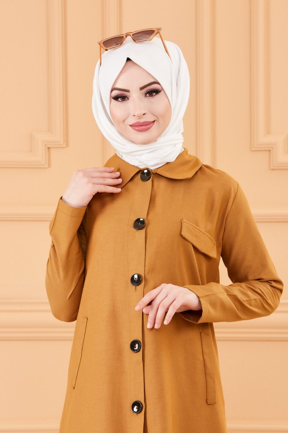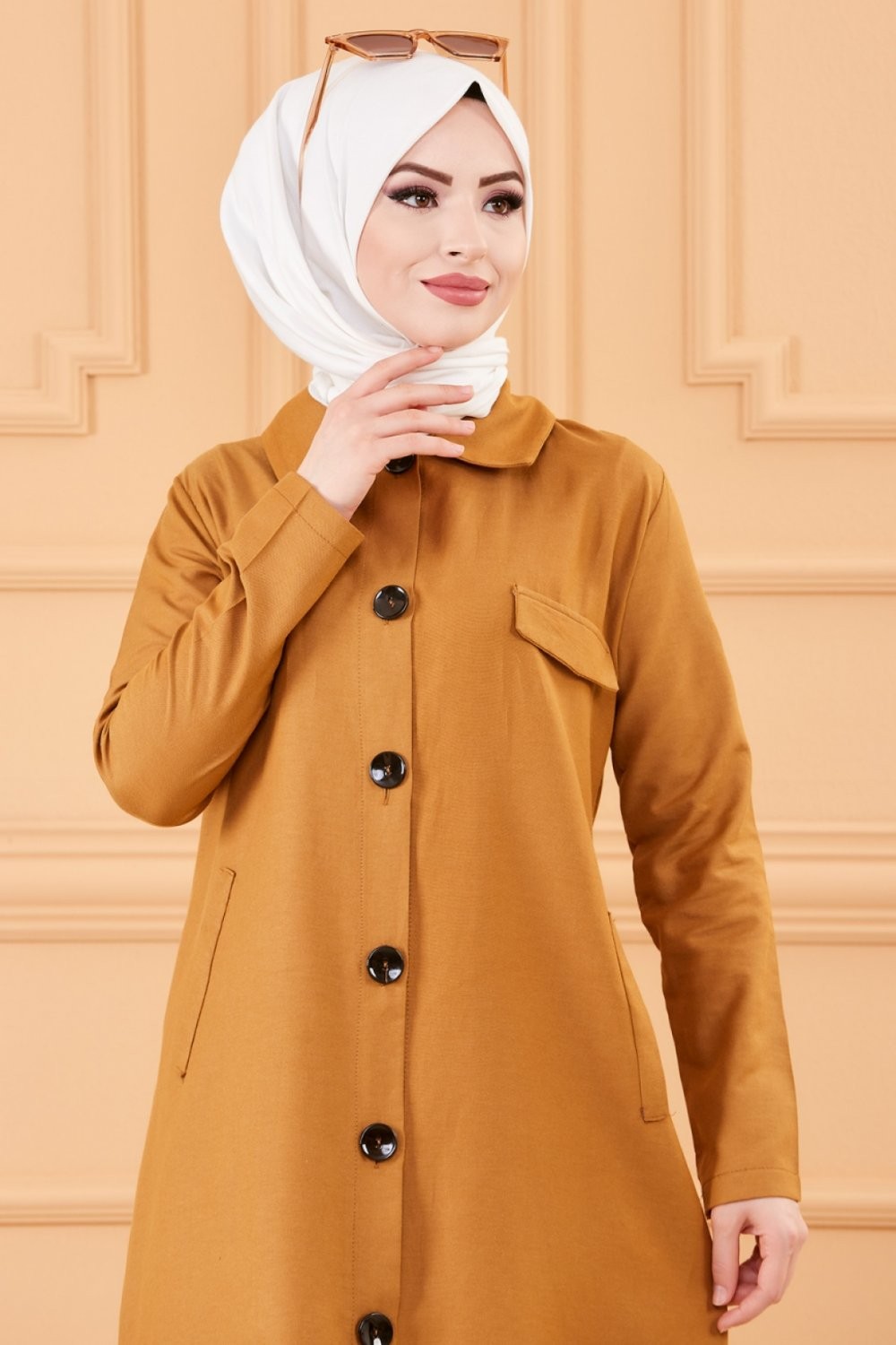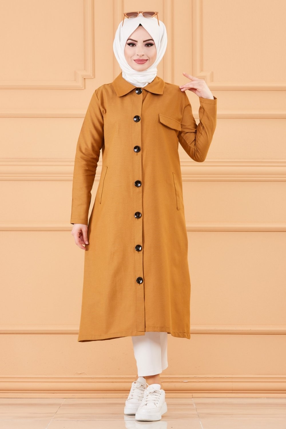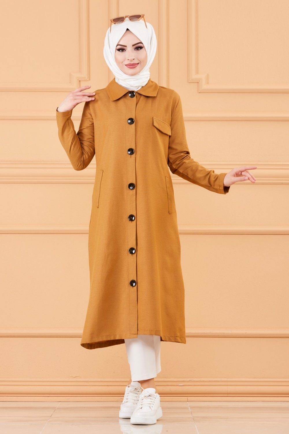 Trench femme - Veste longue (Vetement hijab pour musulmane) - Couleur moutarde-tabac Vetement & Accessoire