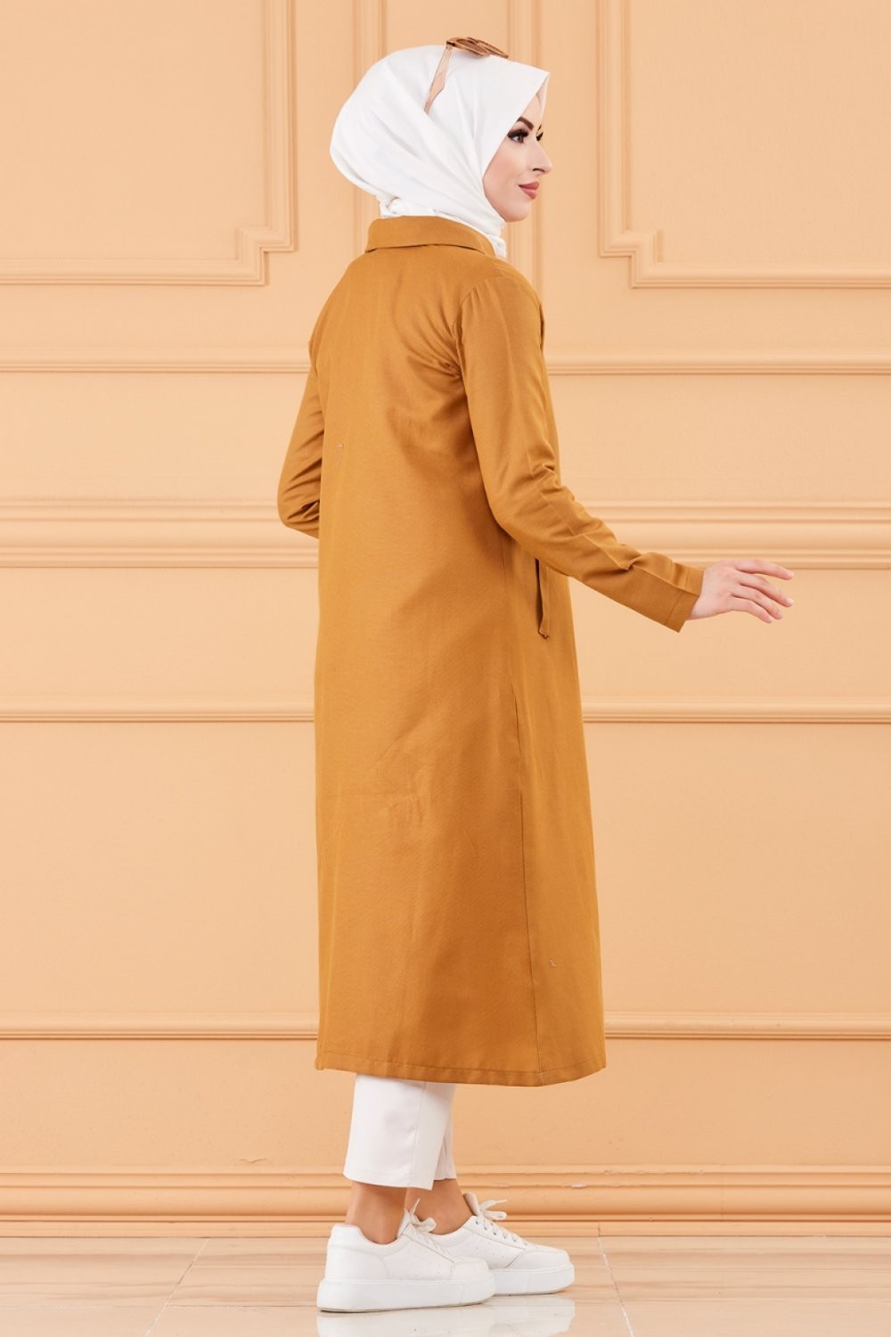 Trench femme - Veste longue (Vetement hijab pour musulmane) - Couleur moutarde-tabac