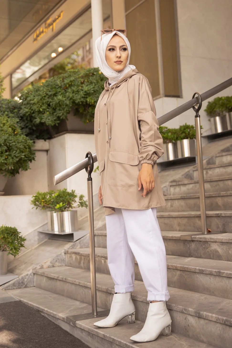 Imperméable femme à capuche (Vêtement Décontracté et Chic Hijab Saison Hiver) - Couleur kaki - REF. 35350 (36.90 €)