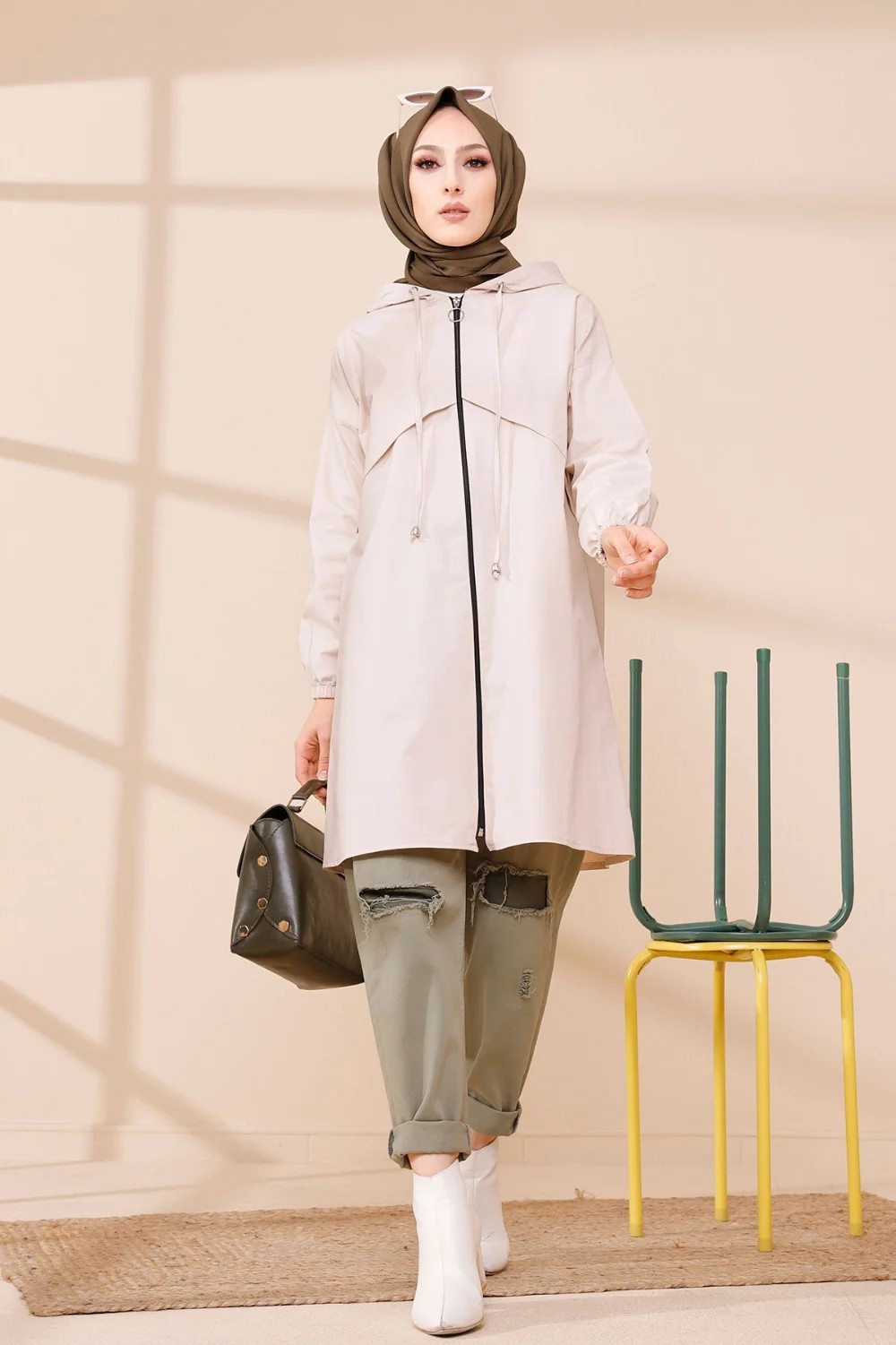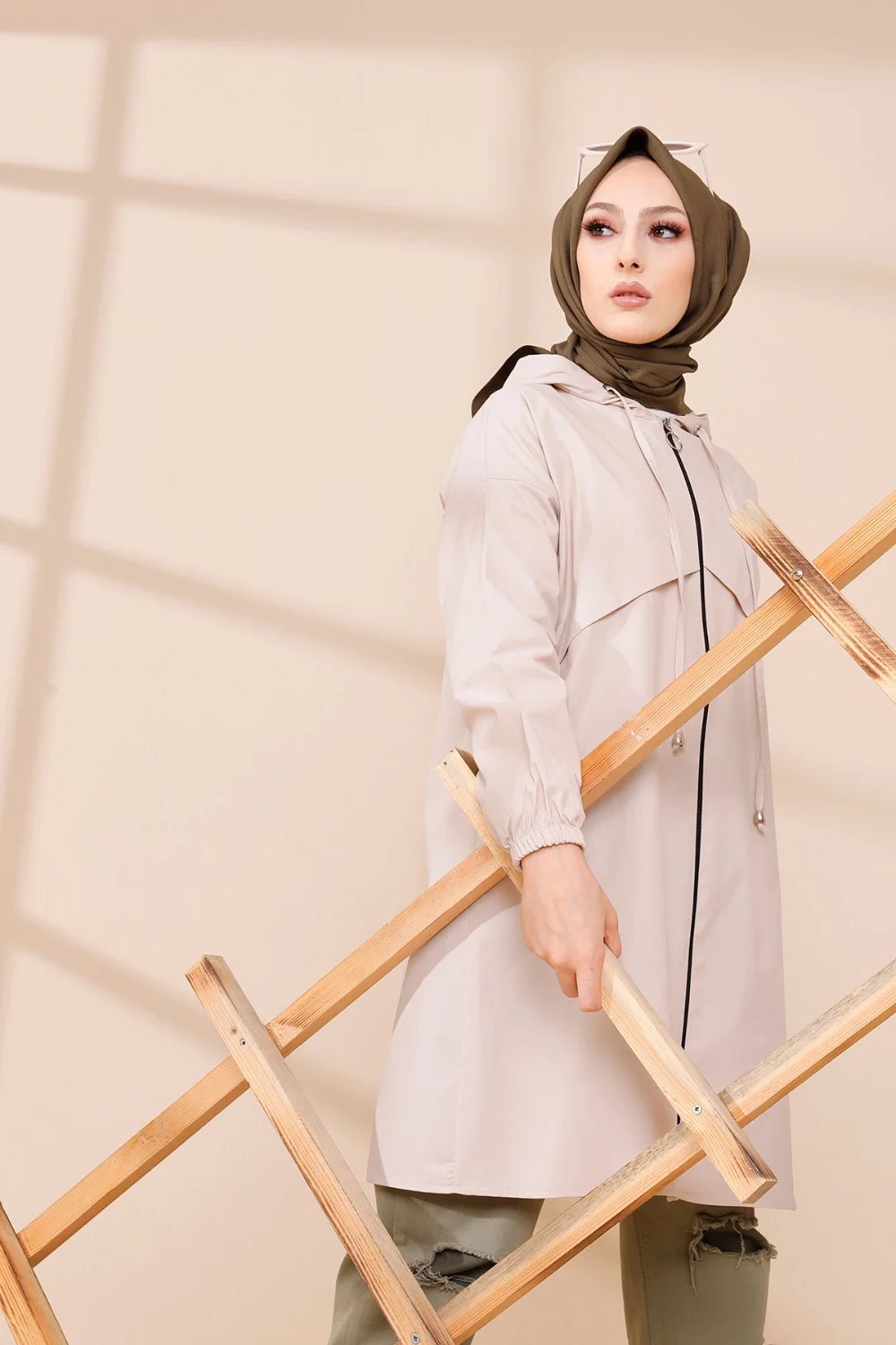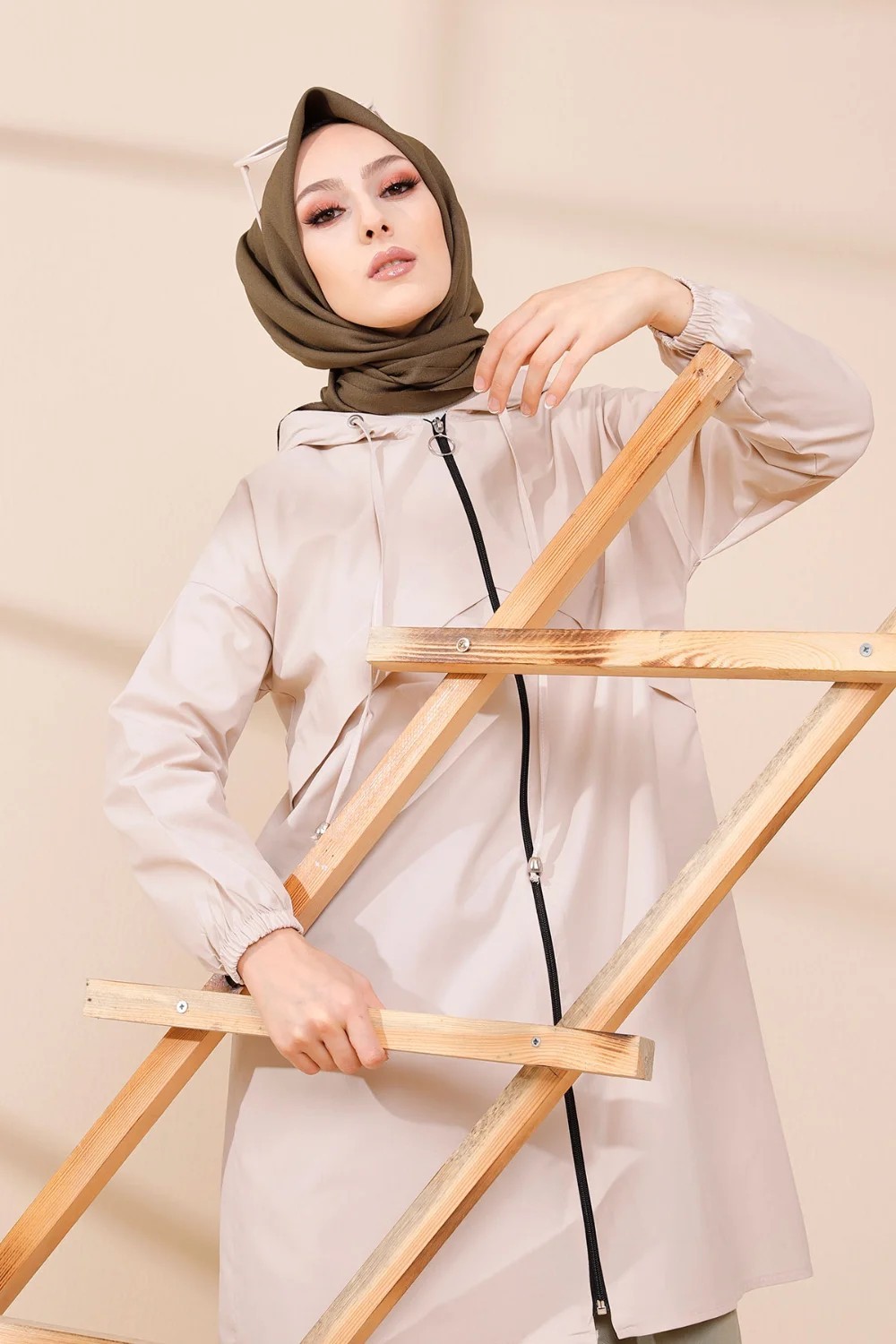 Veste-Tunique zippée à capuche (Tenue Hijab Automne Hiver) - Couleur anthracite et kaki - REF. 35273 (26.00 €)