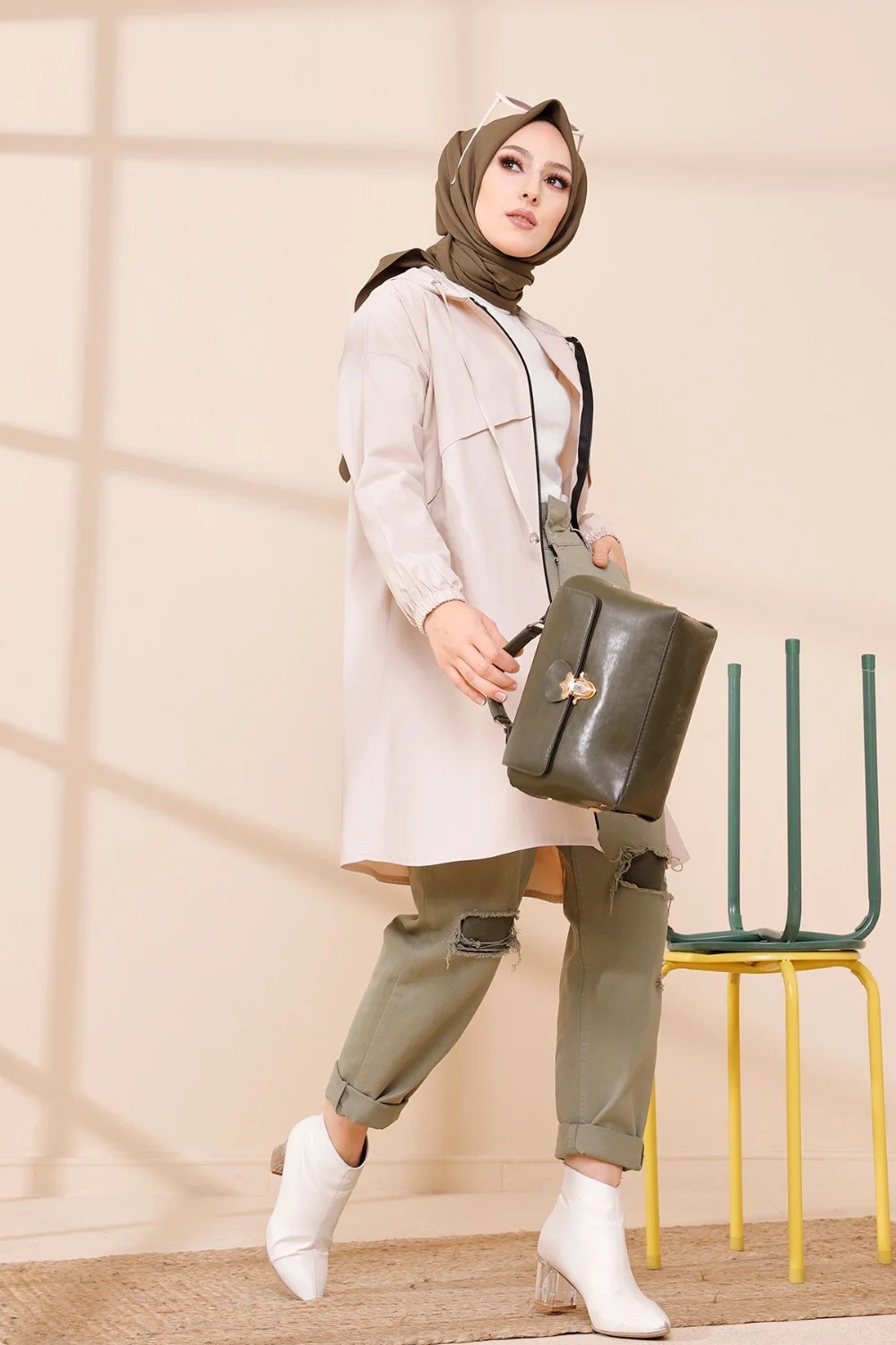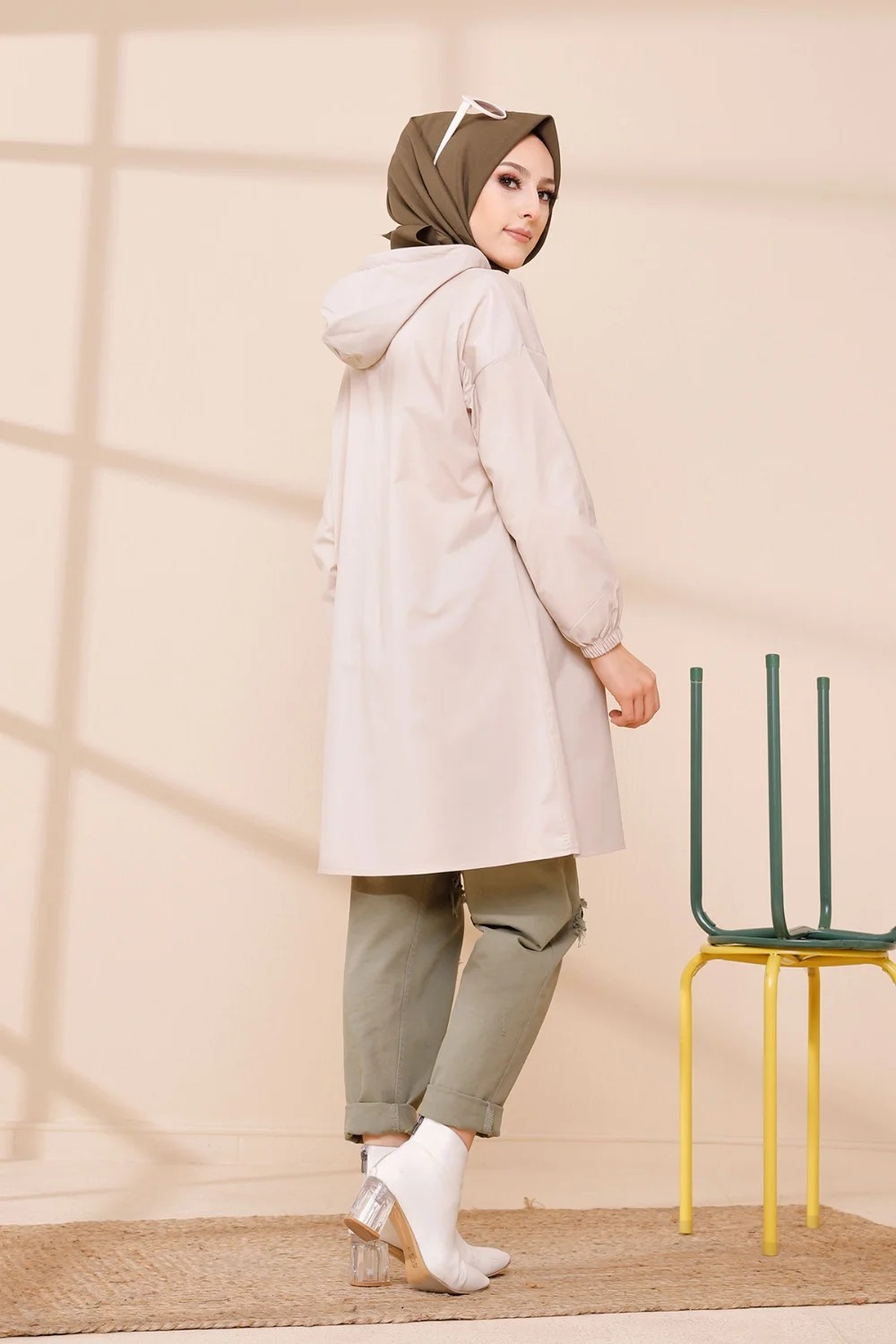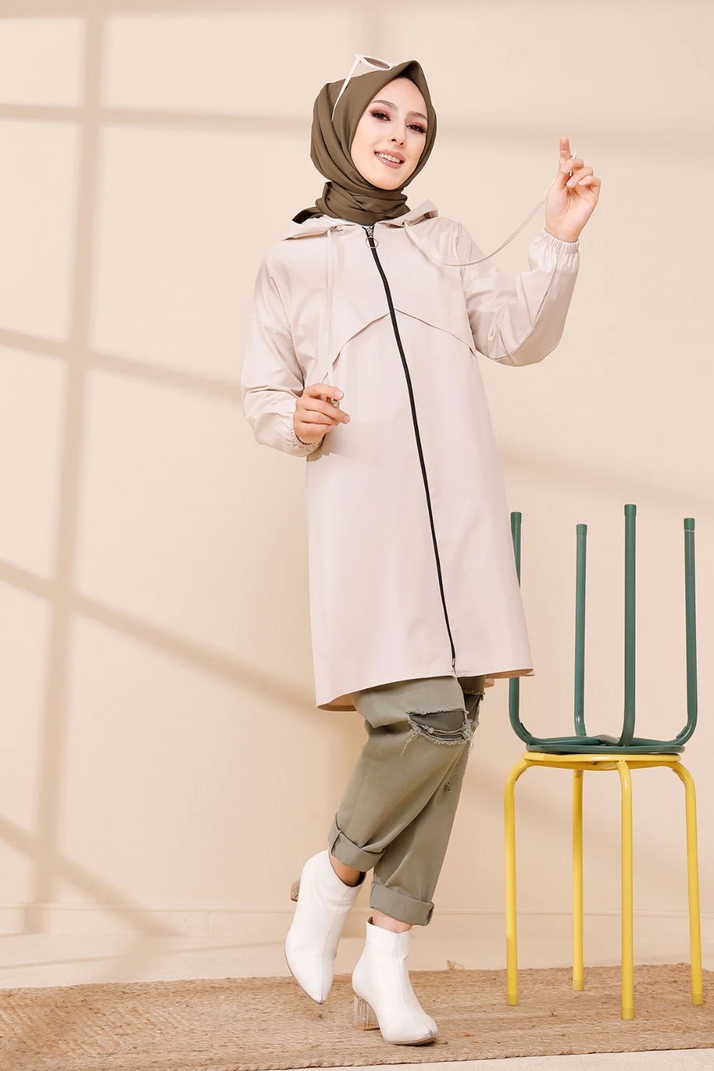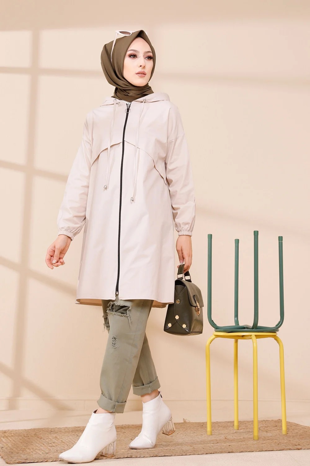 Veste-Tunique zippée à capuche (Tenue Hijab Automne Hiver) - Couleur anthracite et kaki - REF. 35273 (26.00 €)