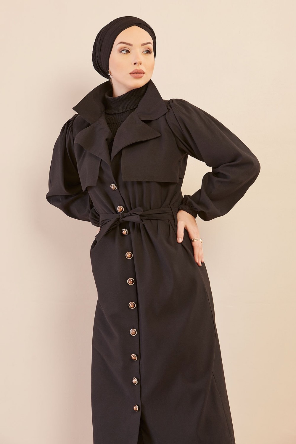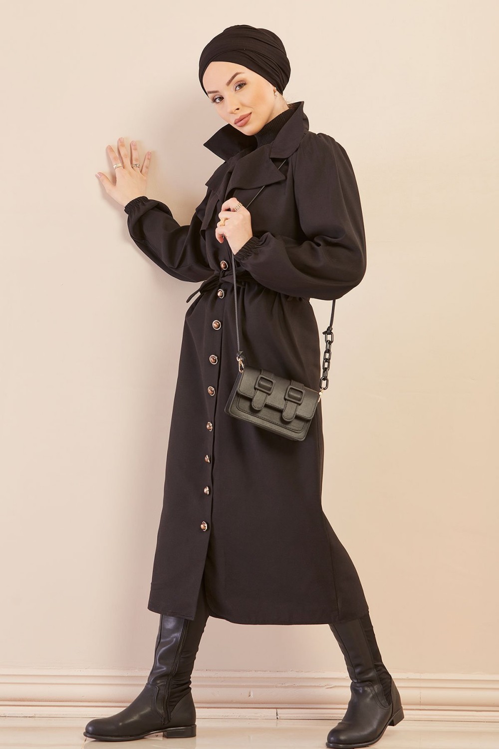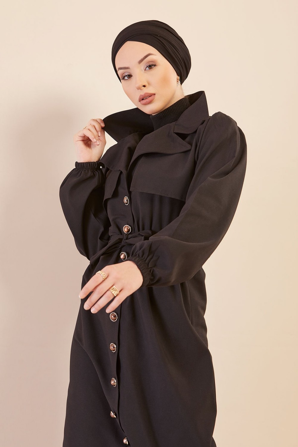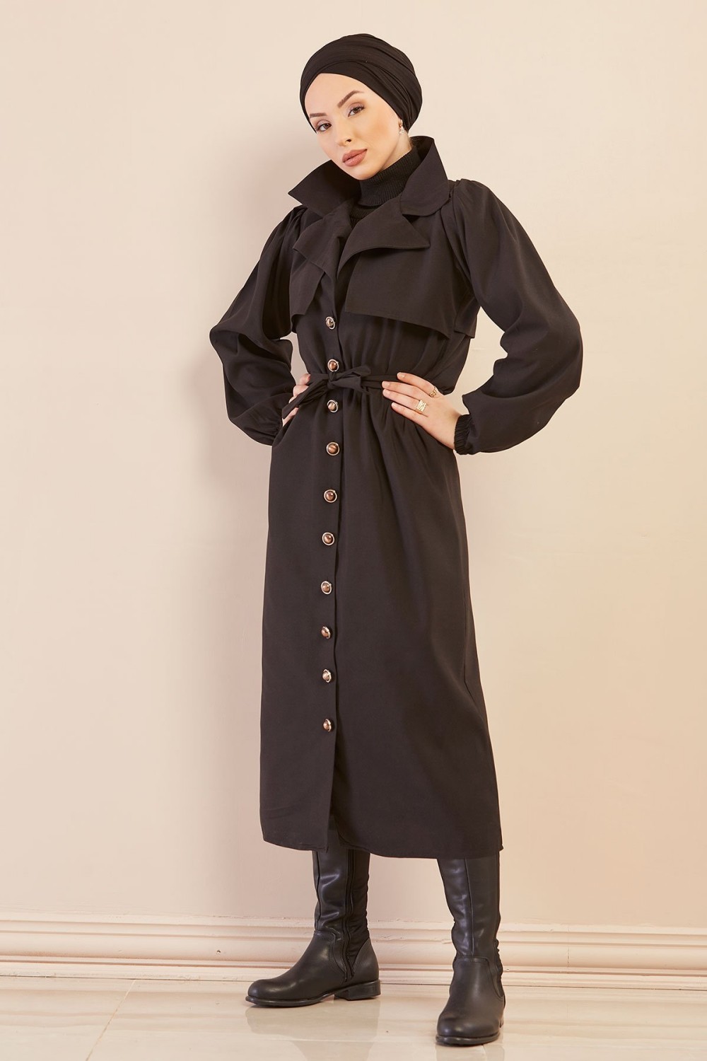 Trench-coat de ville et Robe boutonnée mi-longue pour femme - Couleur noire - REF. 30457 (39.00 €) - En Promotion à 29.90 €
