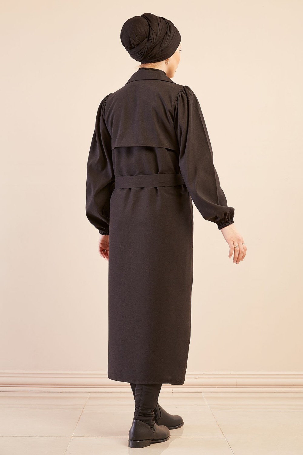 Veste Manteau femme avec ceinture intégrée (Tunique Automne Hiver - Boutique Vêtement Hijab Turque en ligne) - Couleur noir et bordeaux - REF. 35327 (19.90 €)