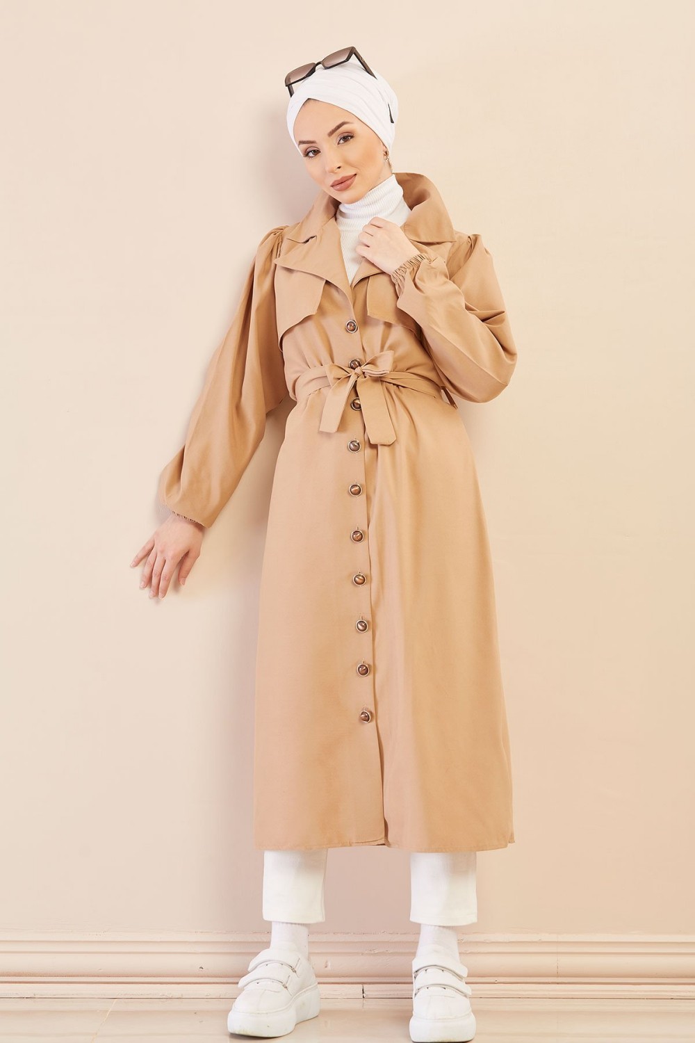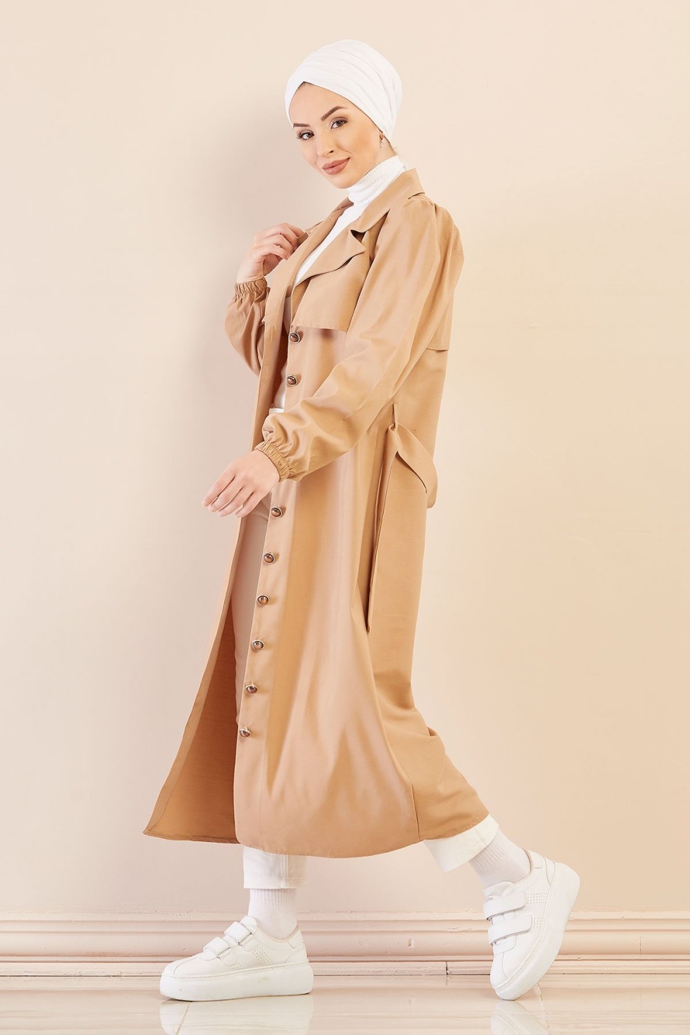 Trench-Coat mi-long pour femme (Tenue modeste fachion France) - Couleur beige - REF. 34633 (29.90 €)