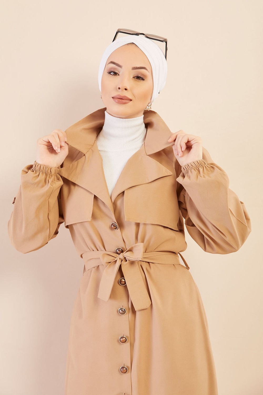 Robe mi longue style Trench (Vêtement hijab) pour femme voilée) - Couleur kaki - REF. 33202 (32.00 €) - En Promotion à 24.90 €