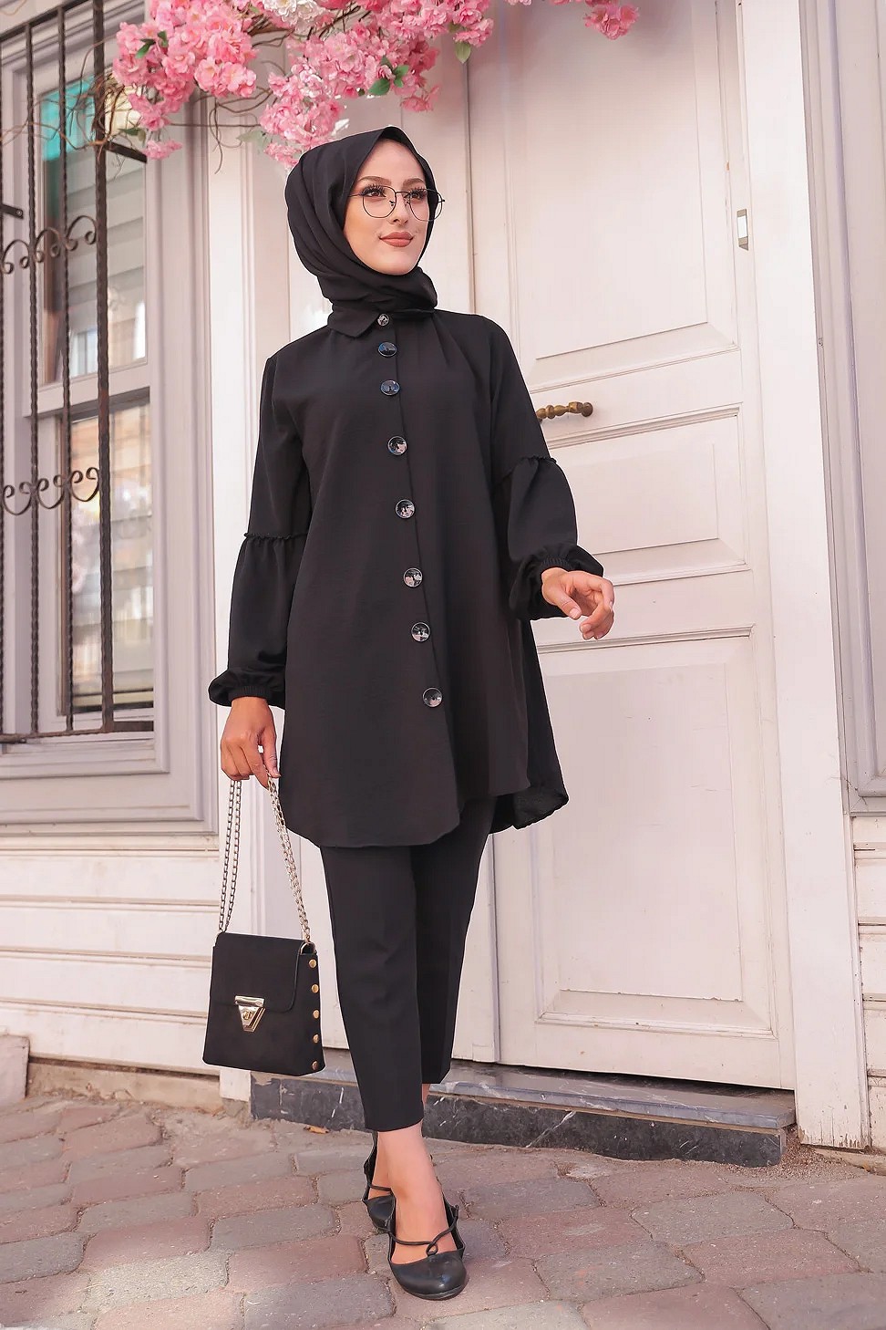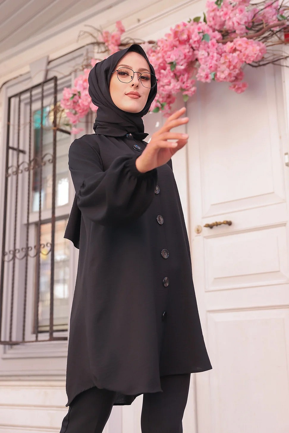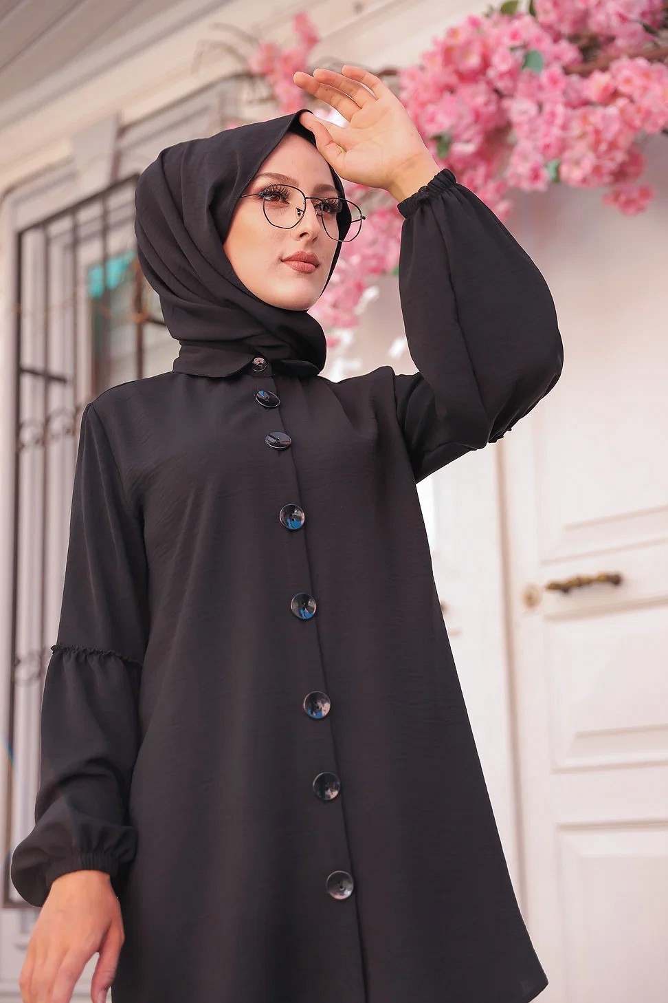 Tunique Chemise ample fermeture boutons pour femme (Vêtement Mastour Hijab) - Couleur noir Vetement & Accessoire