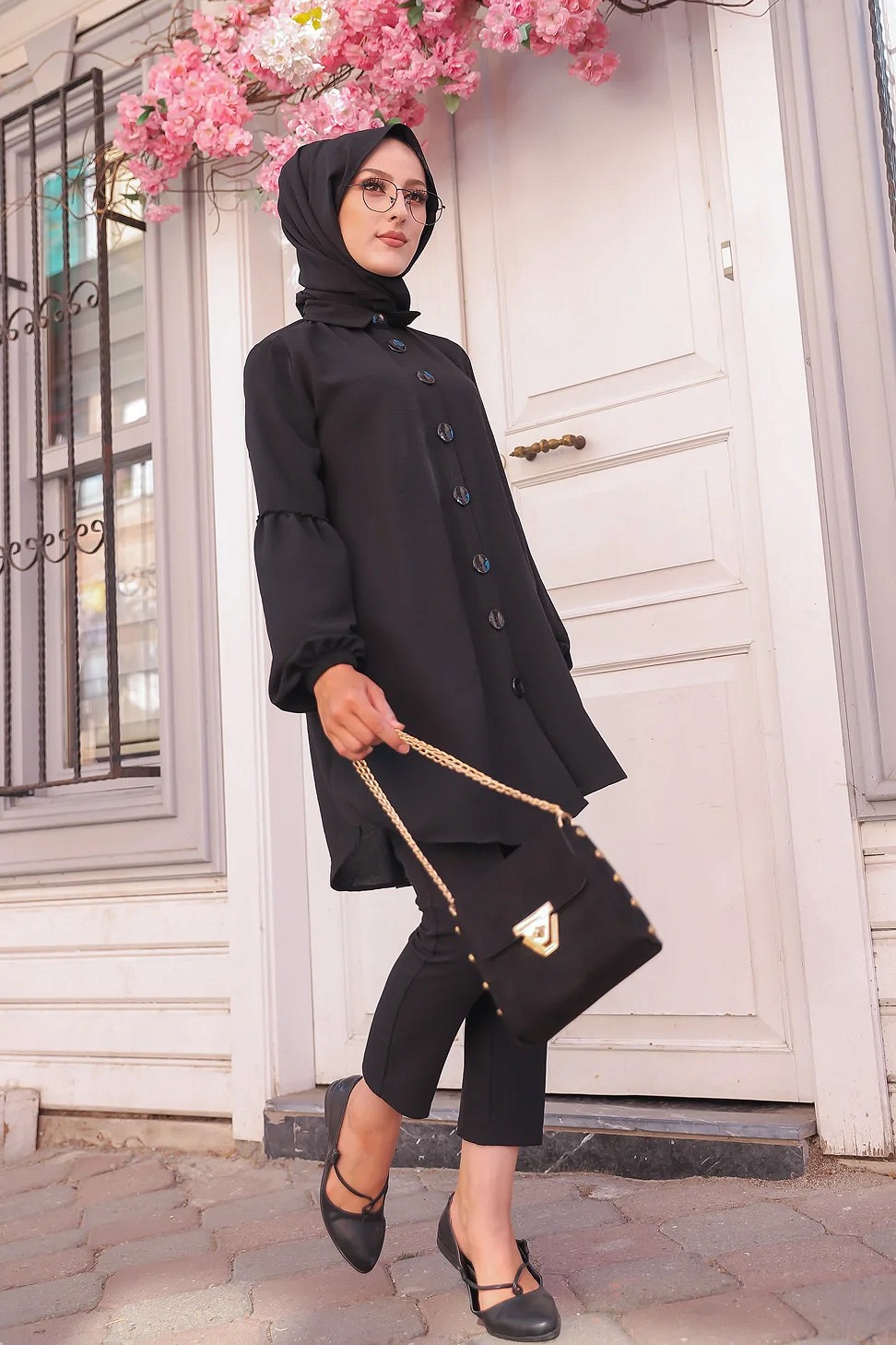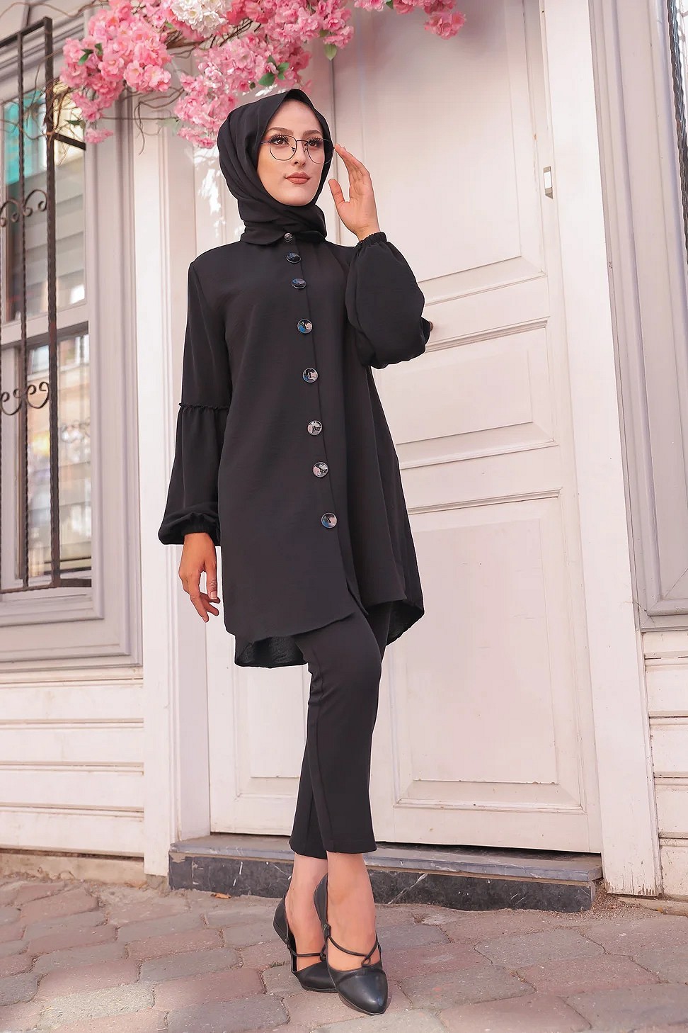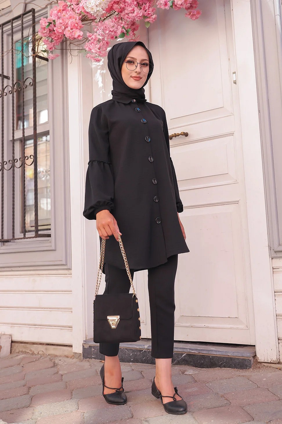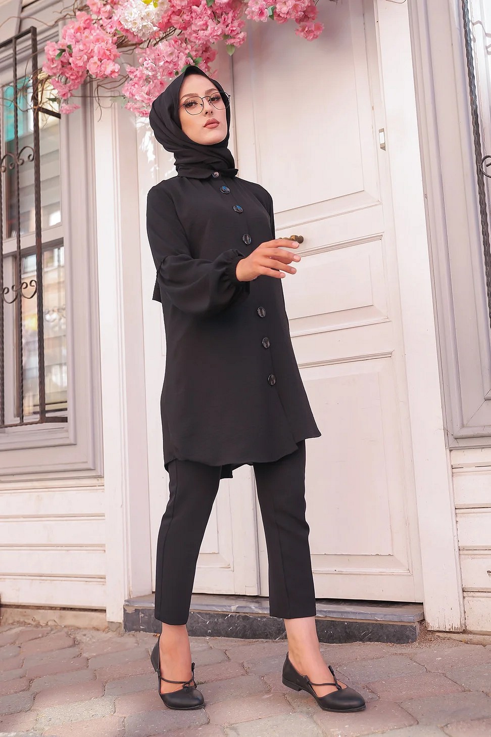 Tunique Chemise ample fermeture boutons pour femme (Vêtement Mastour Hijab) - Couleur noir Vetement & Accessoire