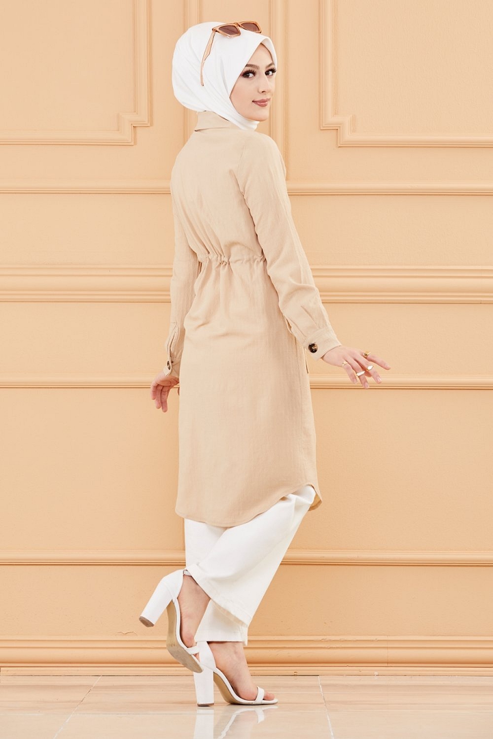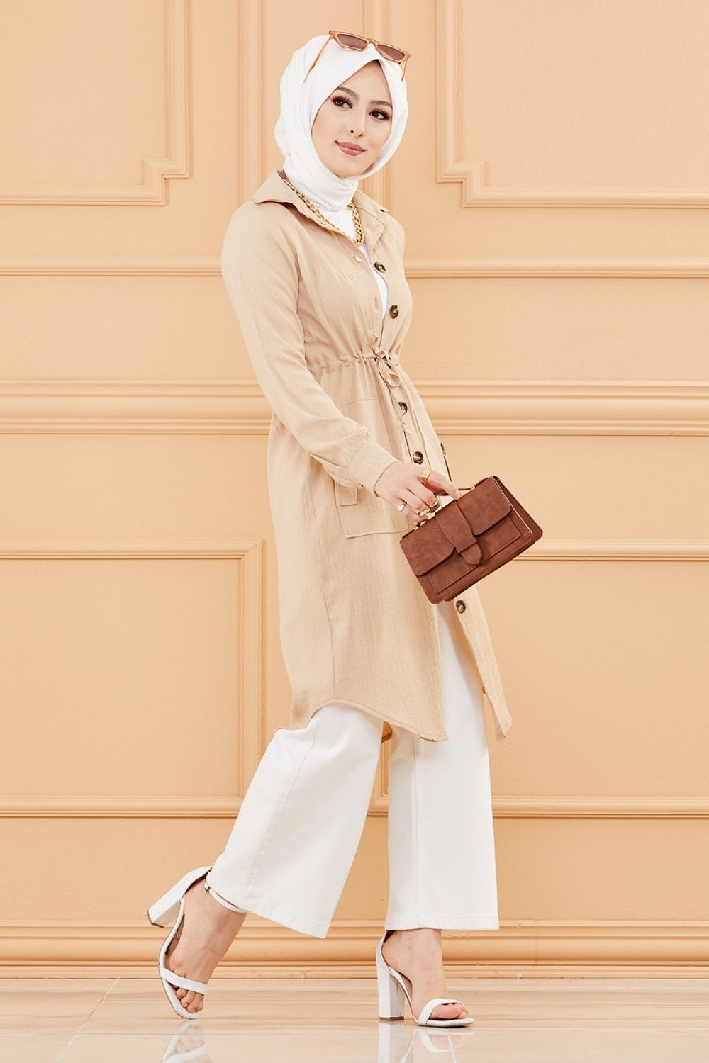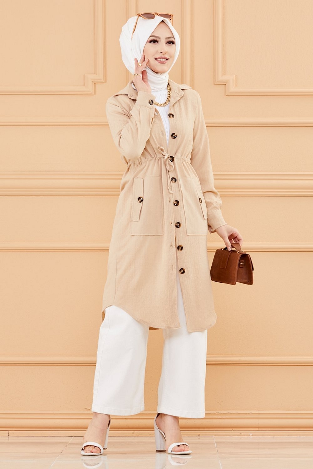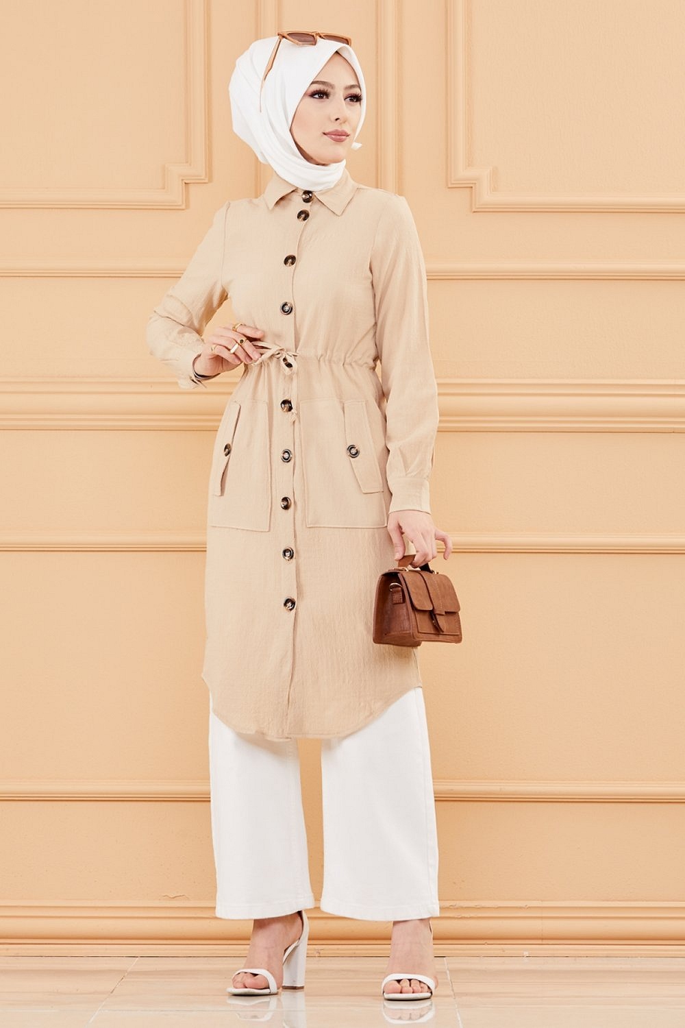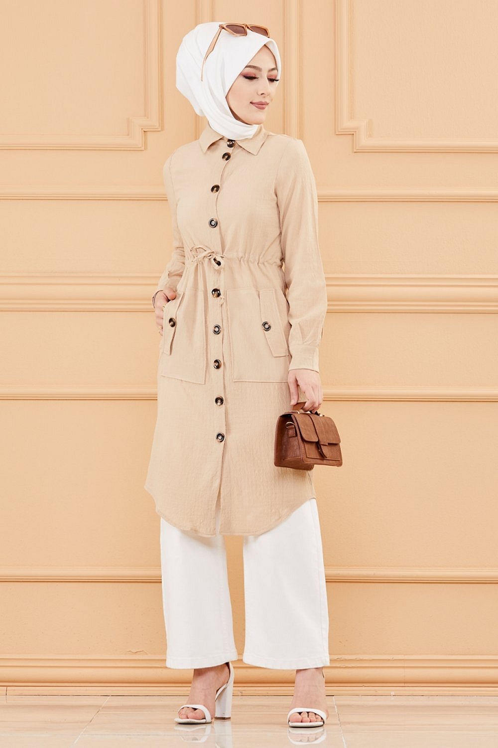 Tunique-Veste longue avec lien de serrage a la taille (Vetement pour femme voilee) - Couleur roche