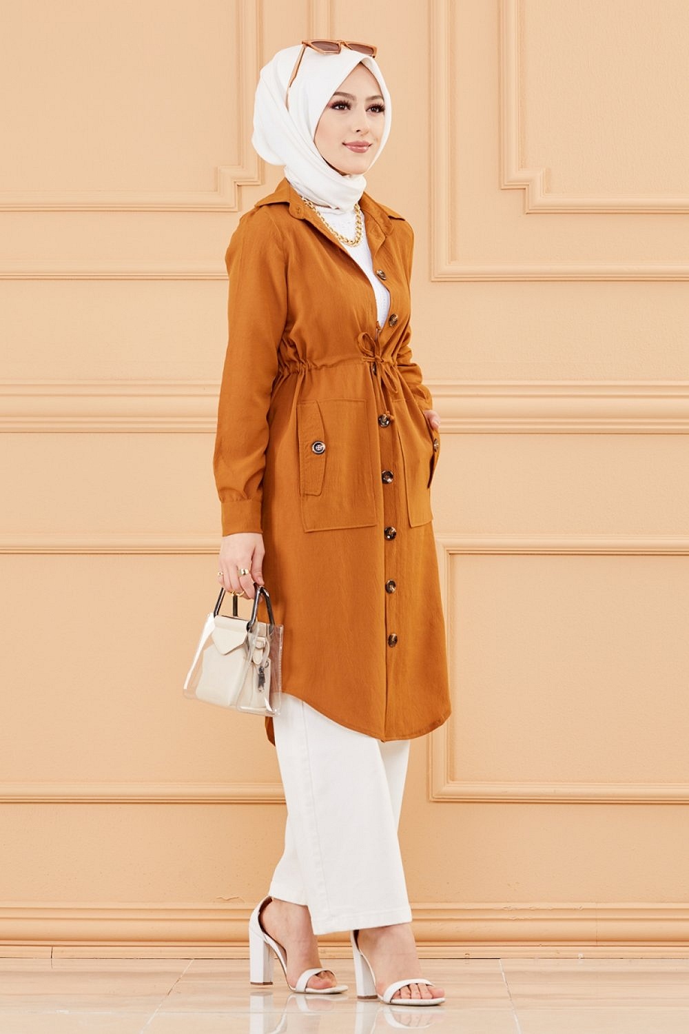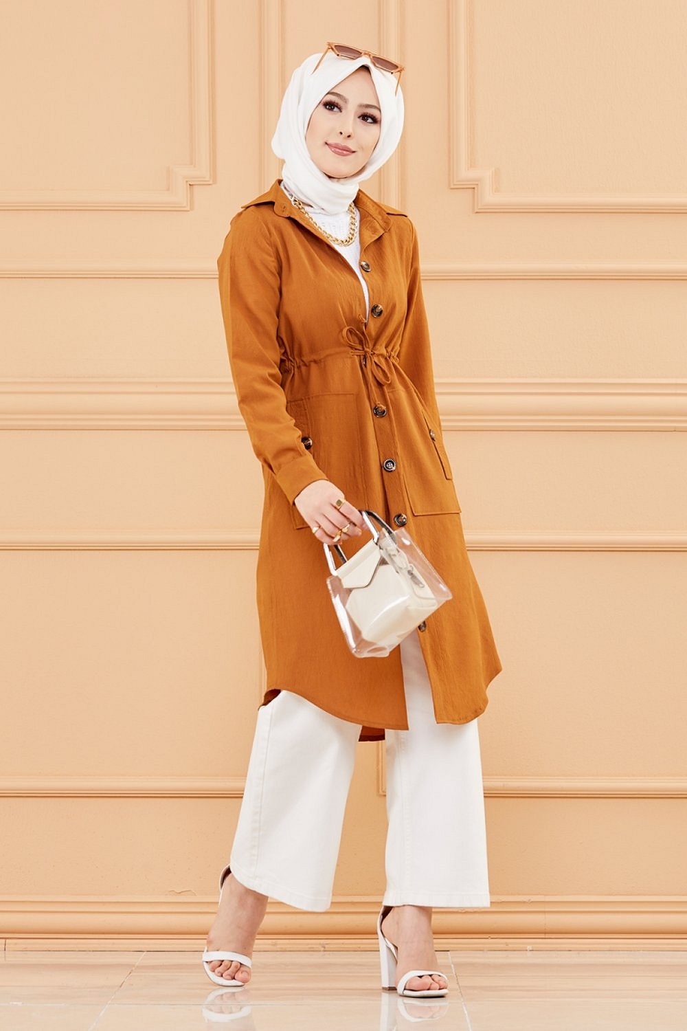 Tunique Veste style saharienne (Boutique mode musulmane) - Couleur tabac