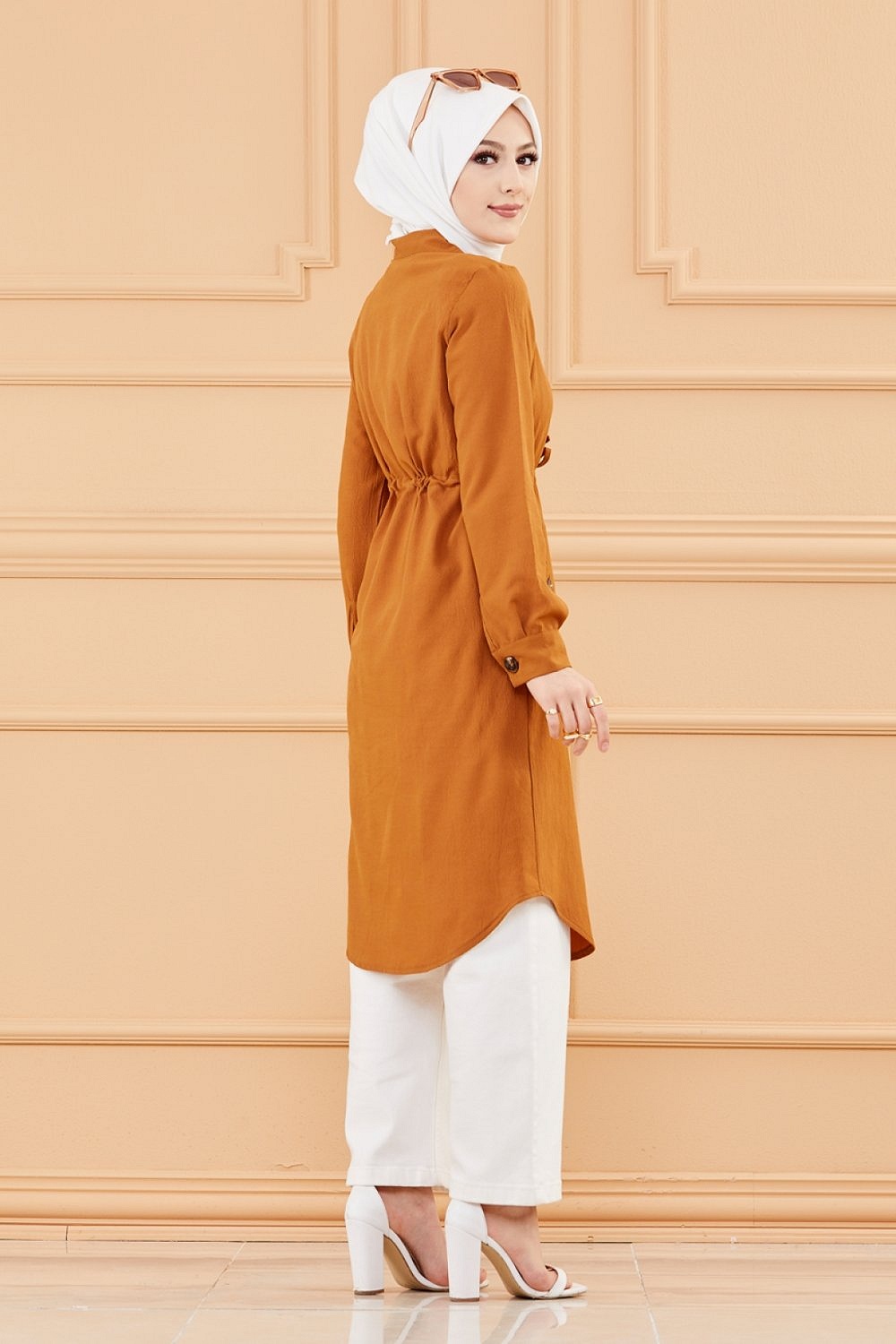 Tunique casual à manches ballon (Vêtement style habillé pour femme voilée) - Couleur brique - REF. 35905 (19.90 €)