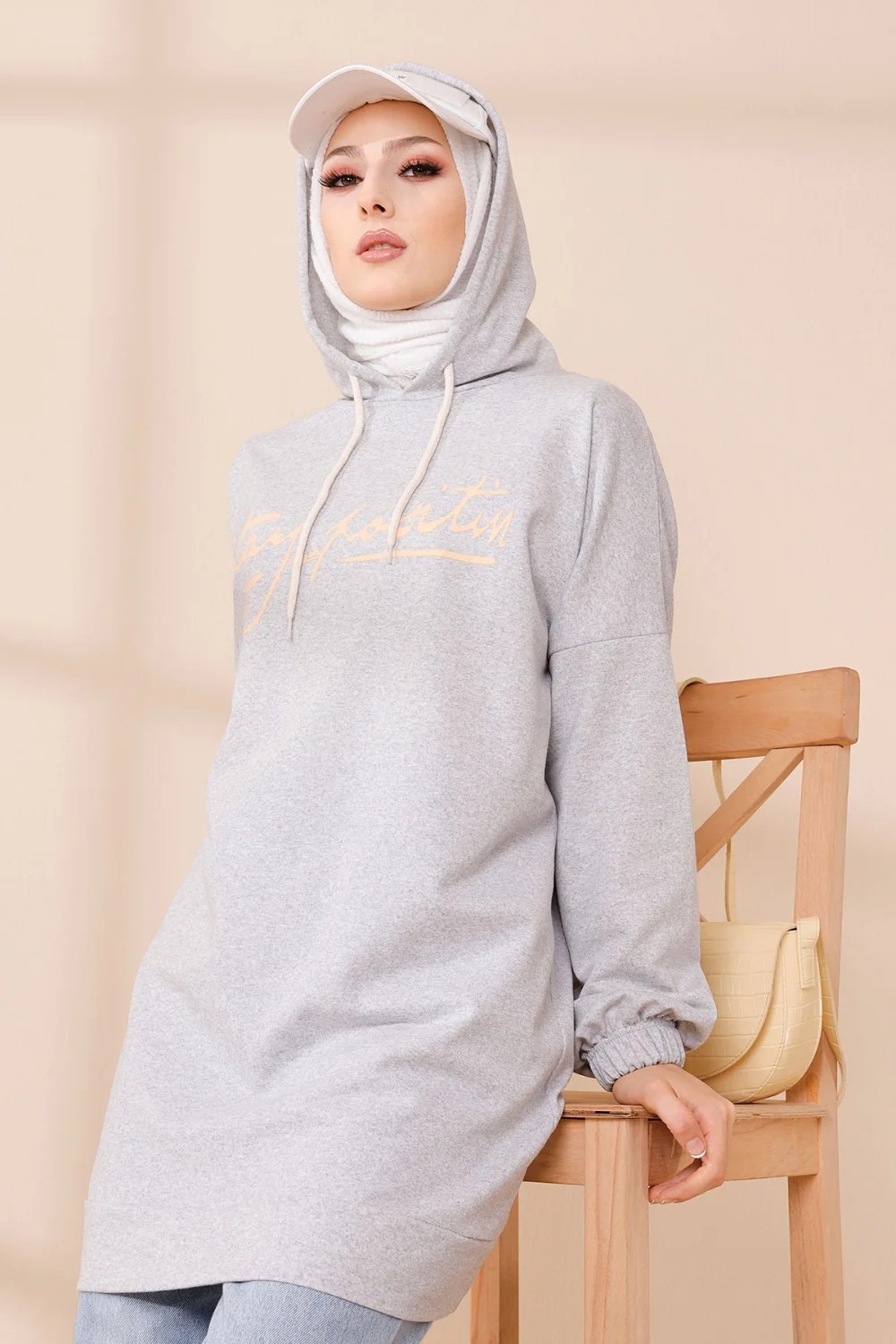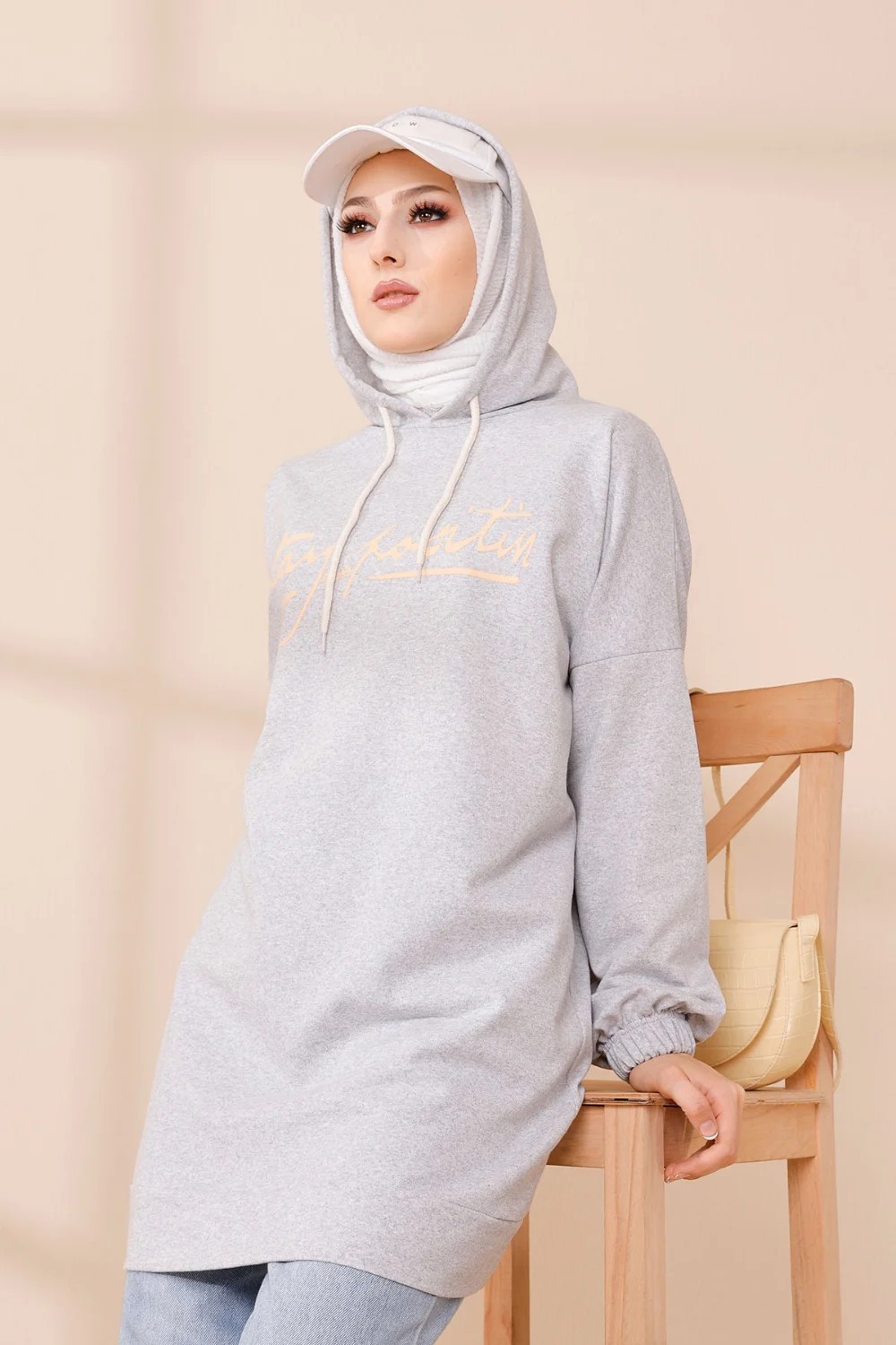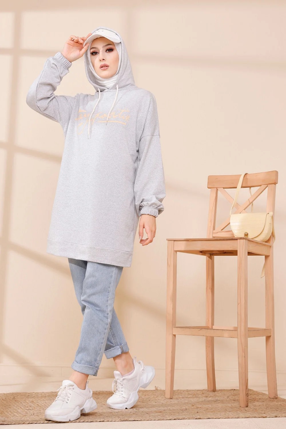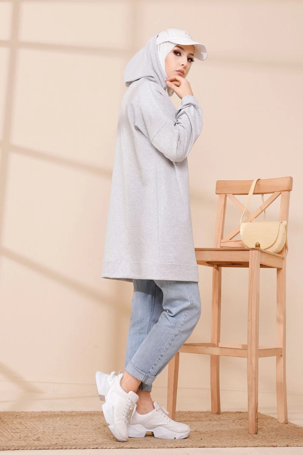 Tunique a capuche ample pour femme (Style Sweat-Shirt decontracte) - Couleur gris clair