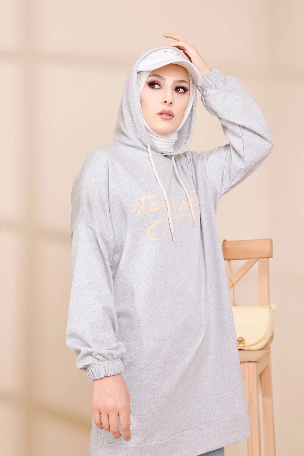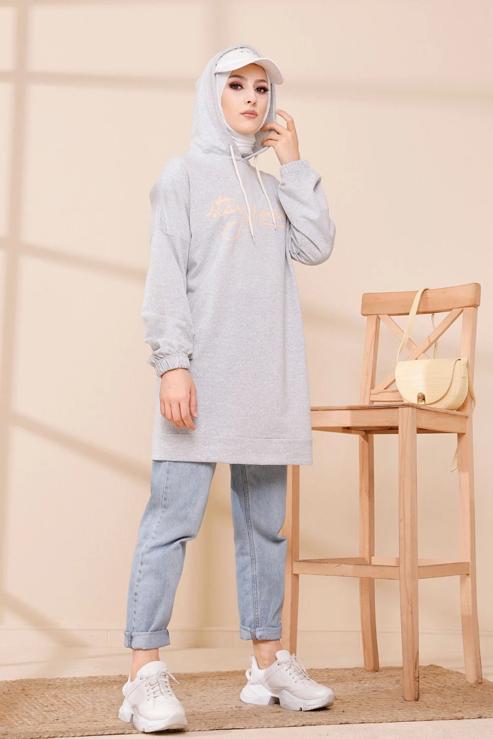 Tunique à capuche ample pour femme (Style Sweat-Shirt décontracté) - Couleur gris clair Vetement & Accessoire