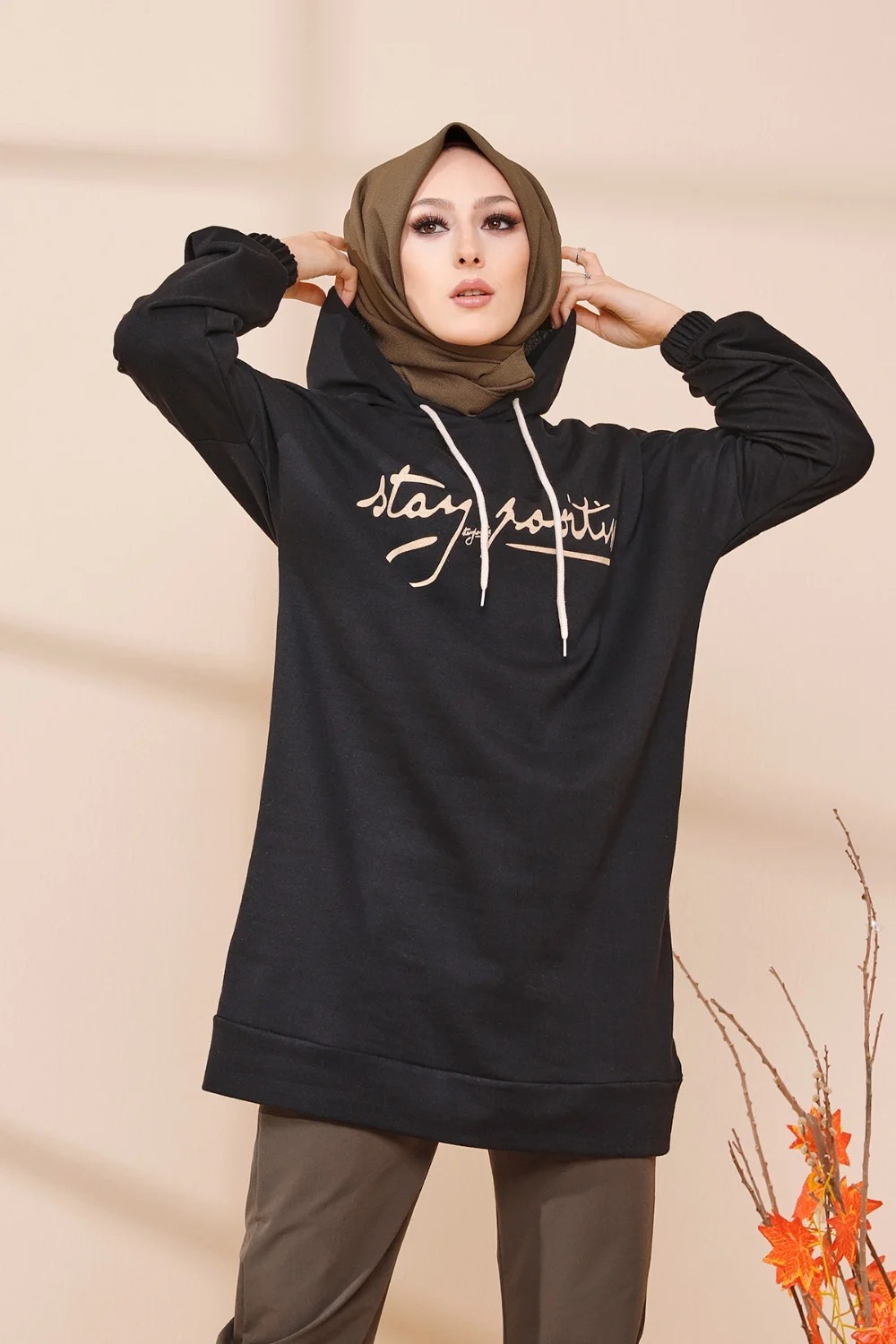 Tunique a capuche ample pour femme (Style Sweatshirt decontracte) - Couleur noir