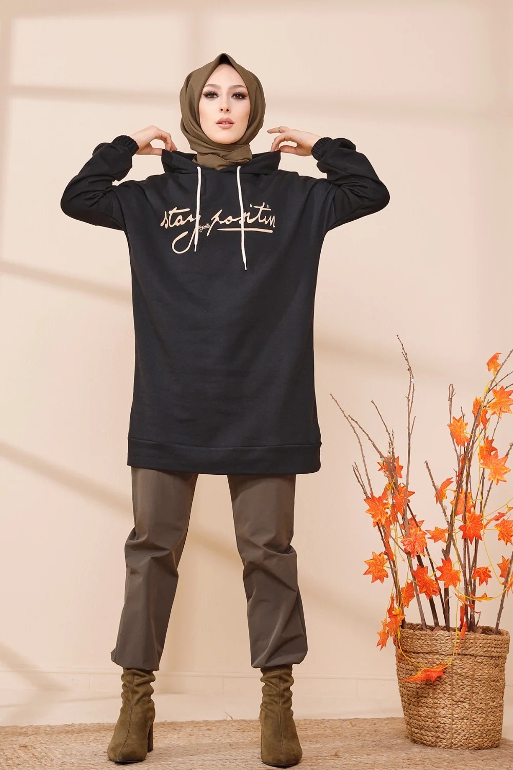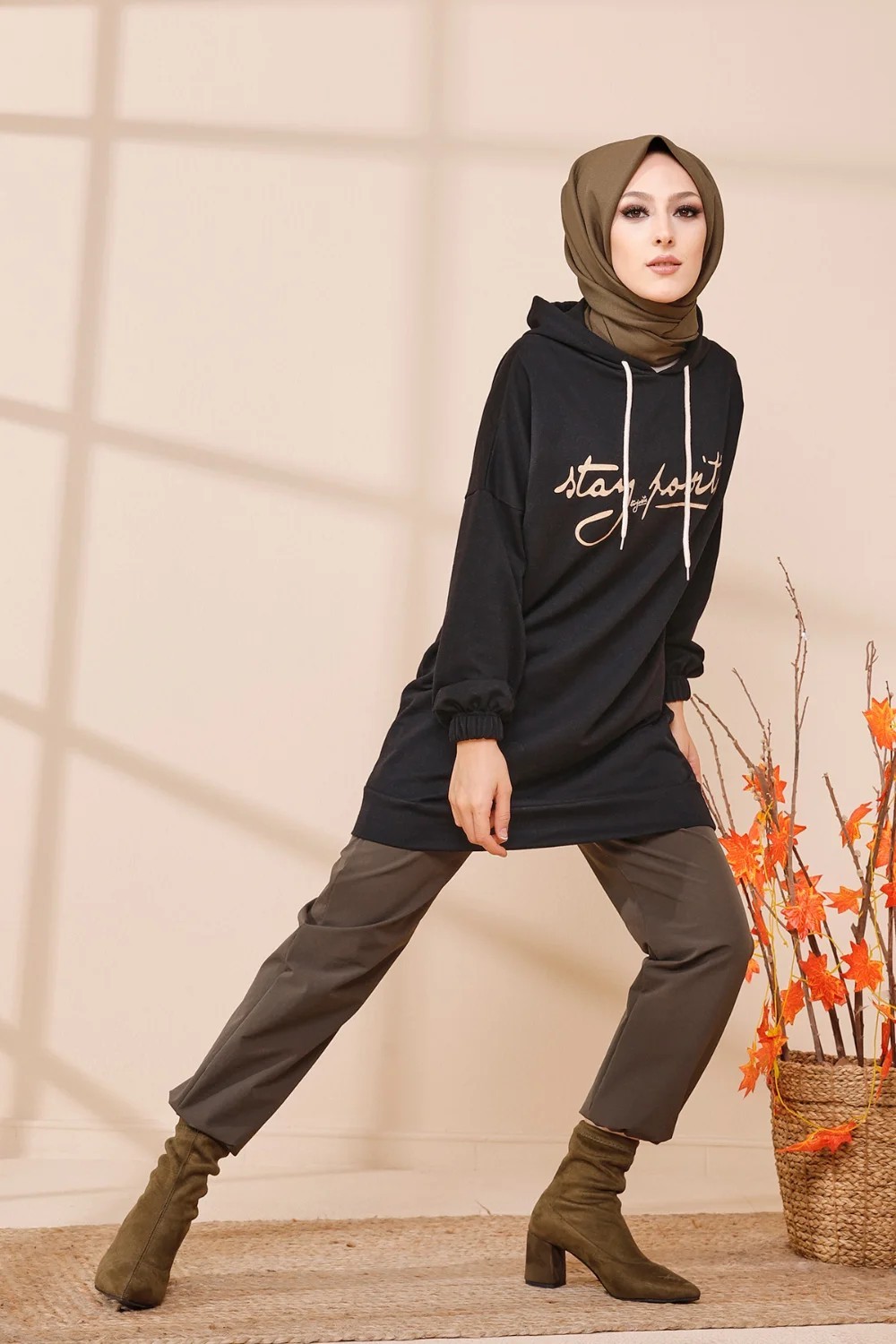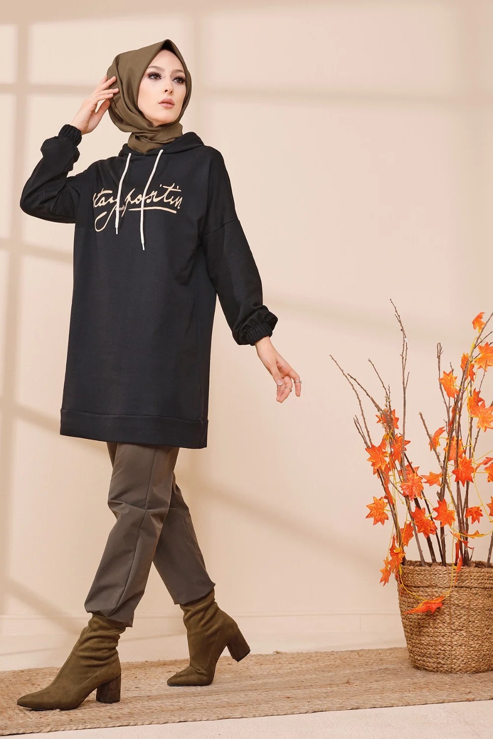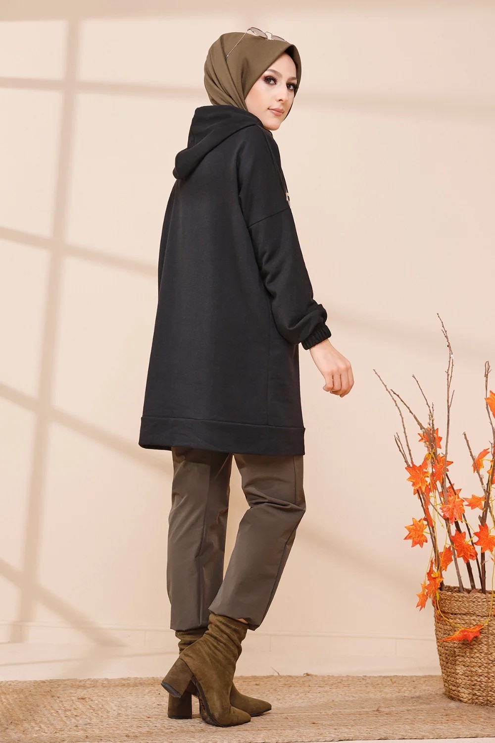 Tunique moderne avec capuche (Vêtement Hijab) - Couleur noir et kaki - REF. 35326 (26.00 €)