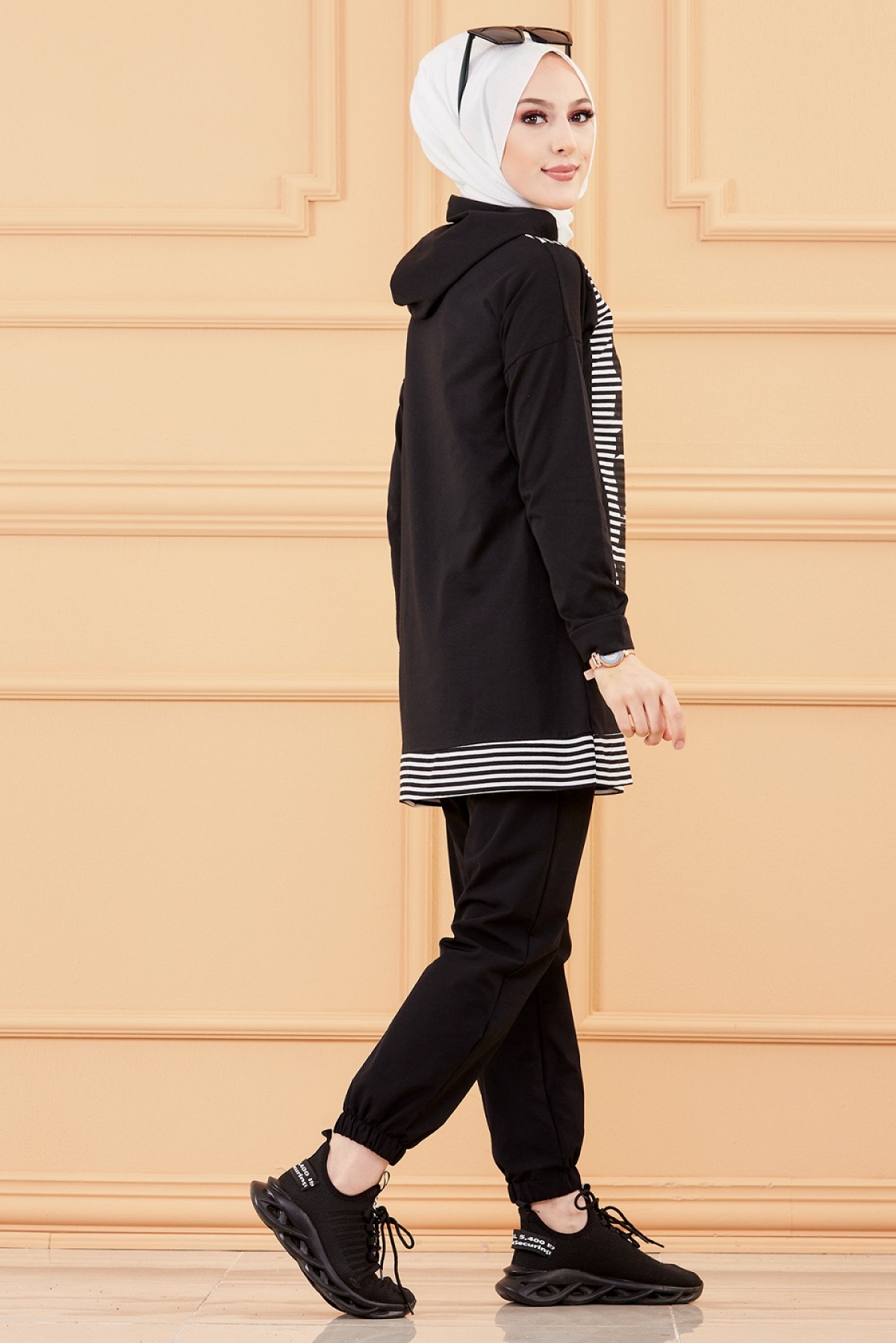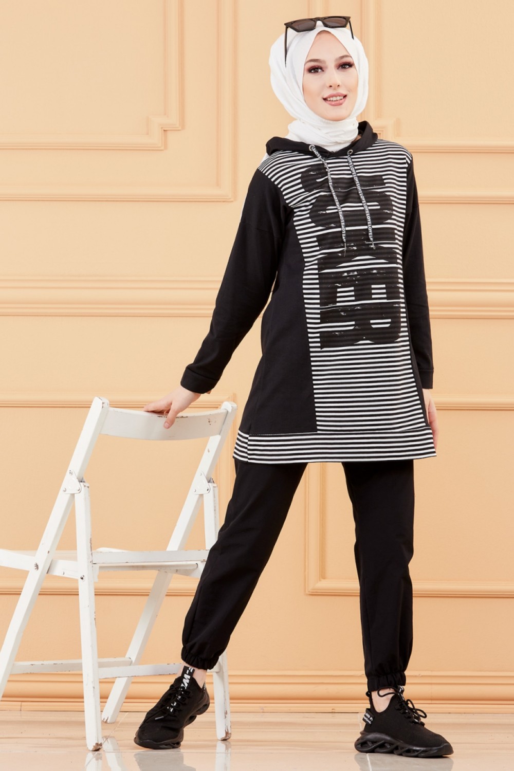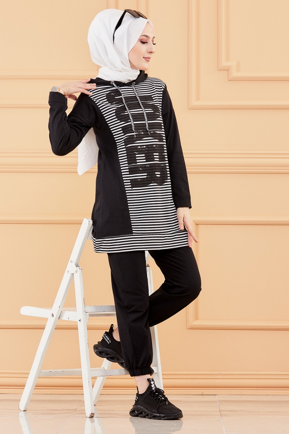 Ensemble décontracté pour femme (Hijab moderne et sport) - Couleur noir et blanc - REF. 36259 (28.00 €)