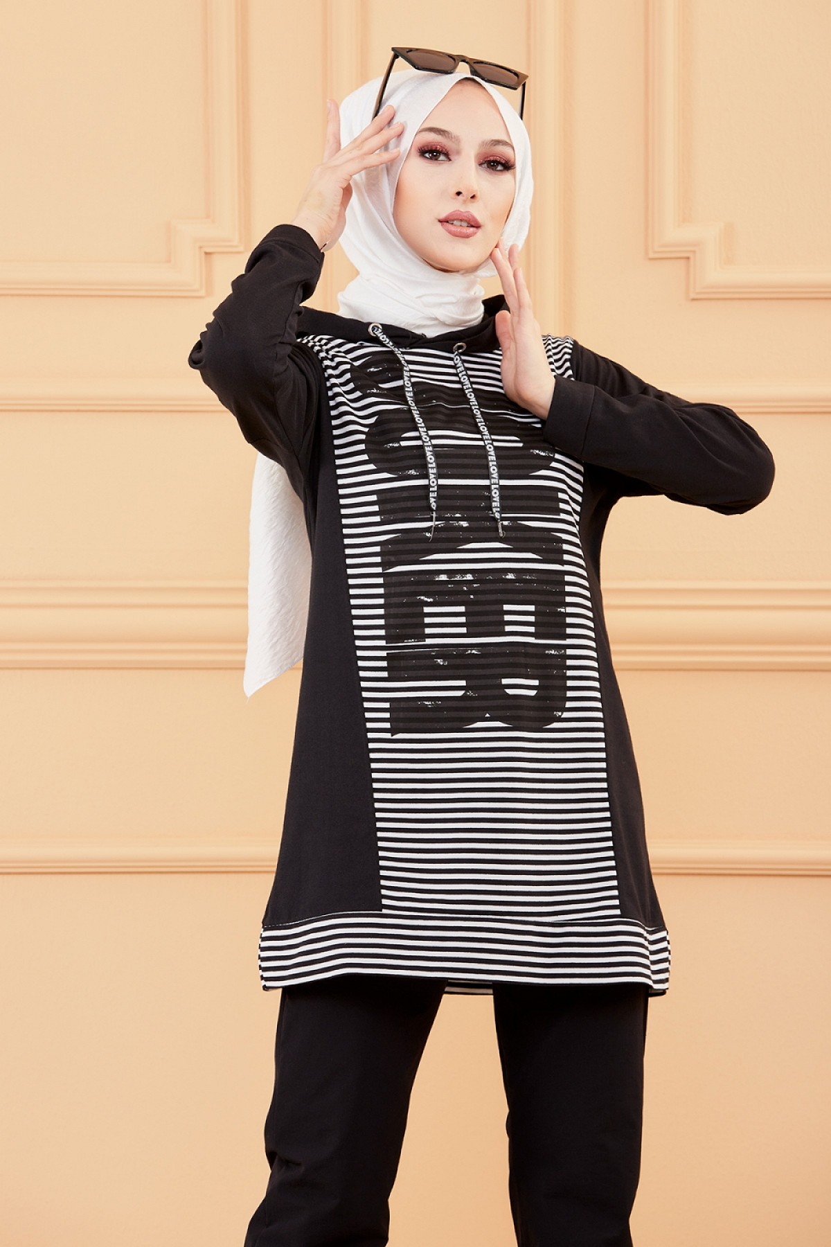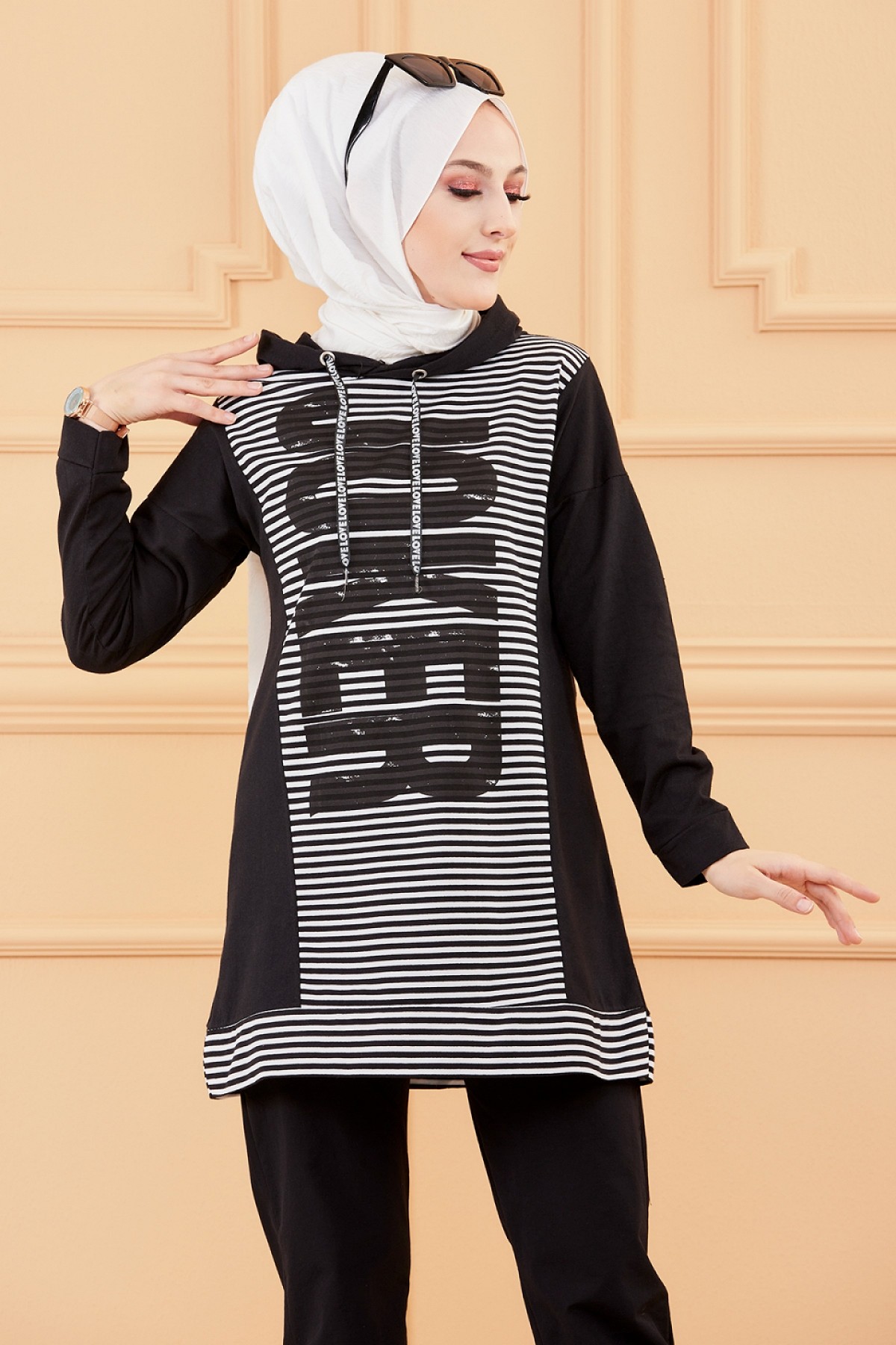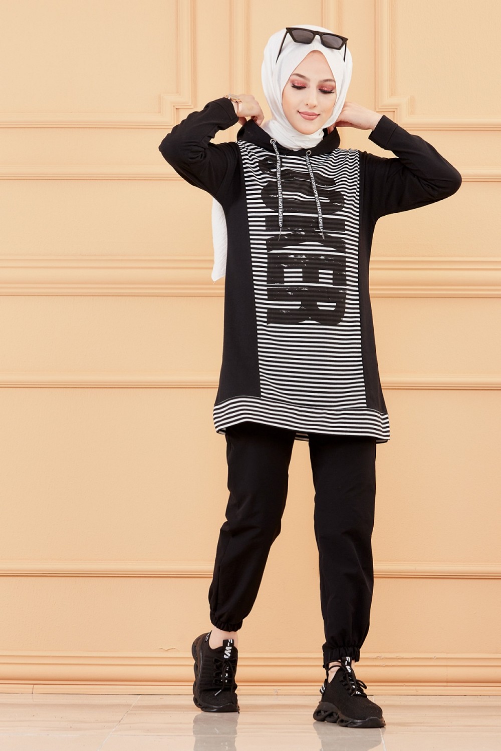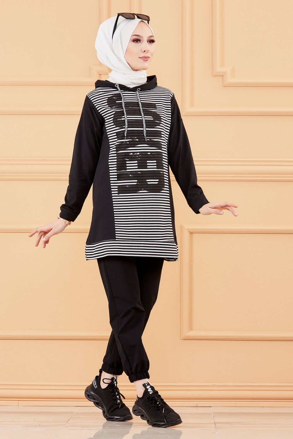 Ensemble décontracté pour femme (Hijab moderne et sport) - Couleur noir et blanc - REF. 36259 (28.00 €)