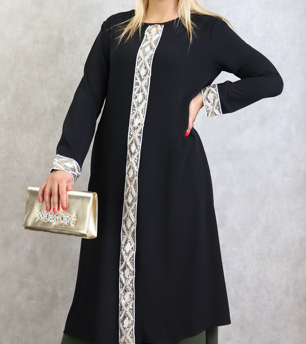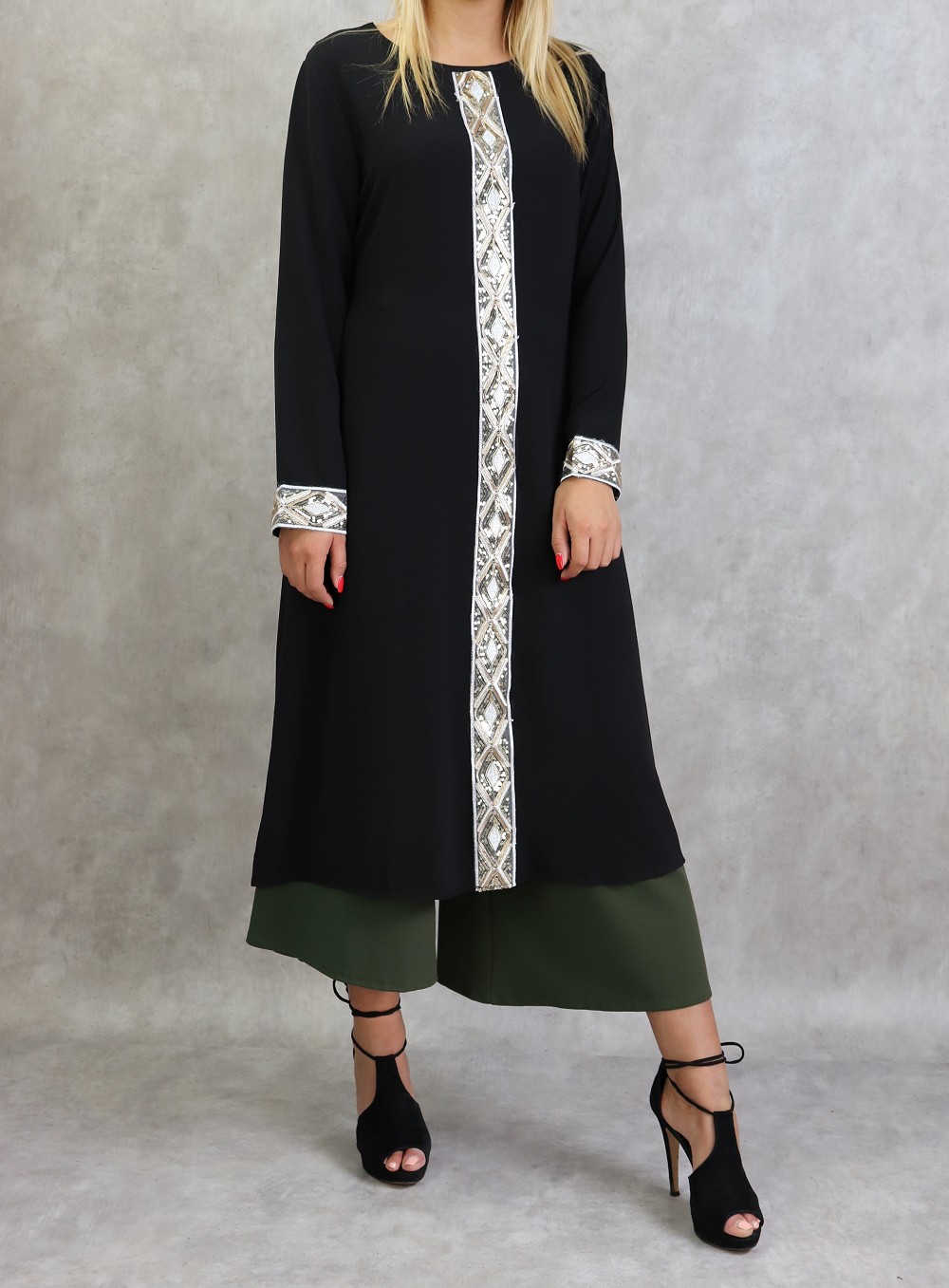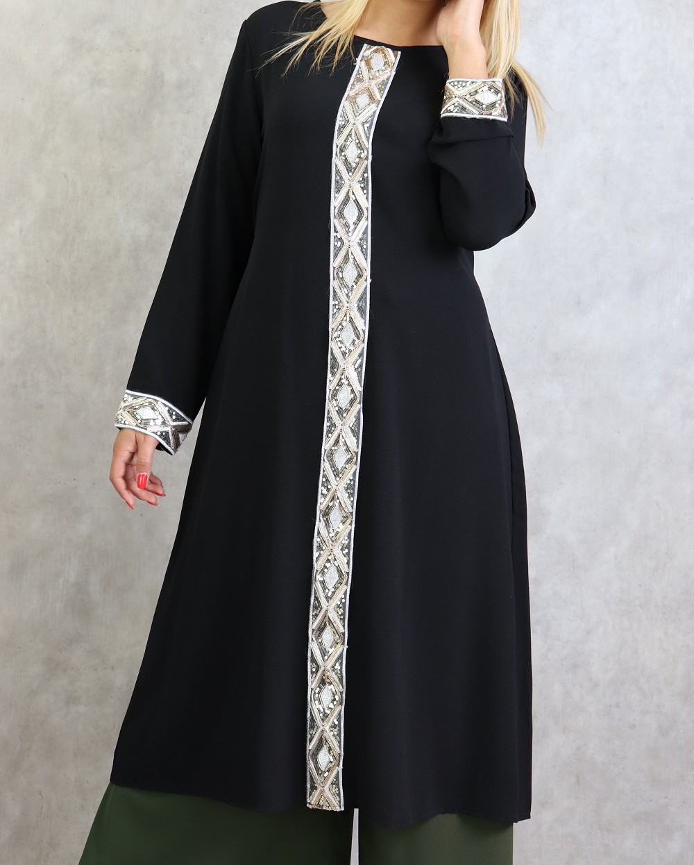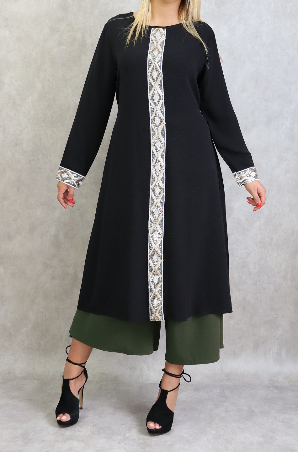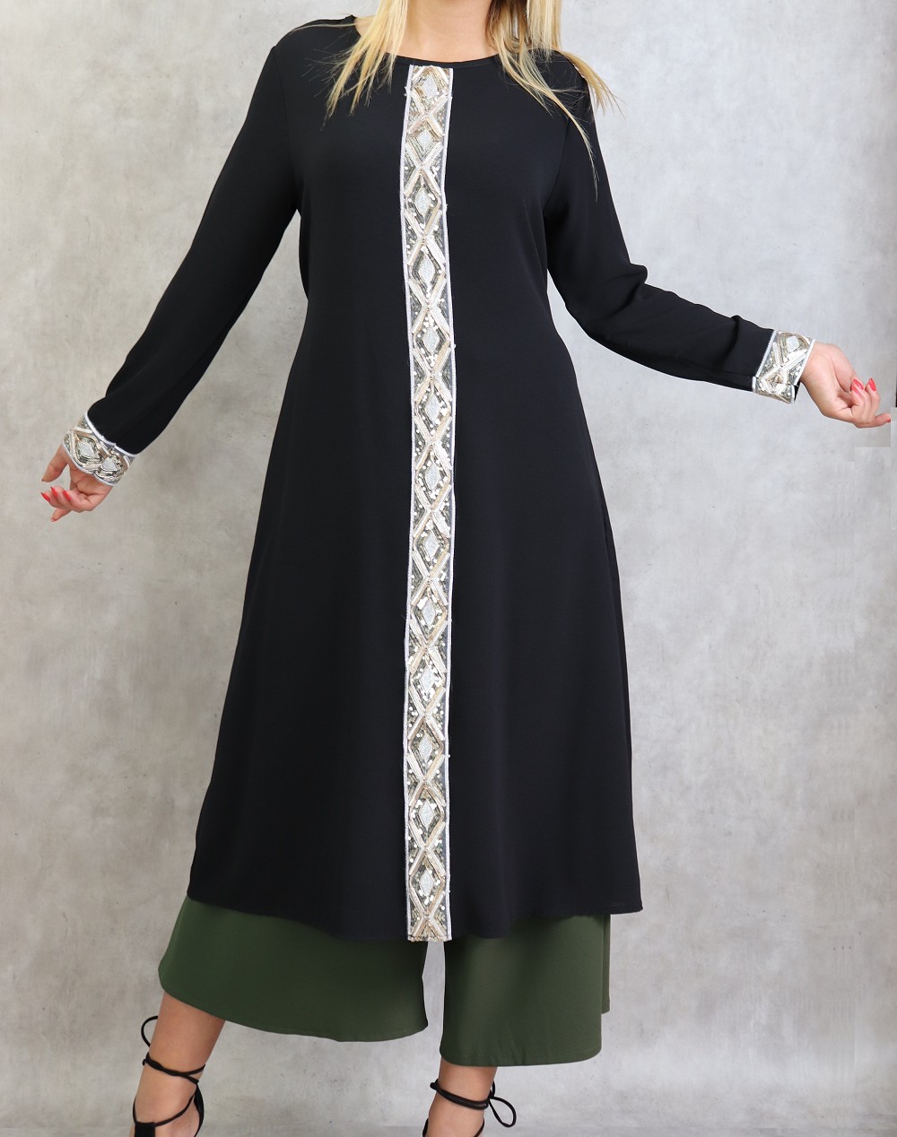 Tunique à manches longues avec strass - Couleur Noire Vetement & Accessoire