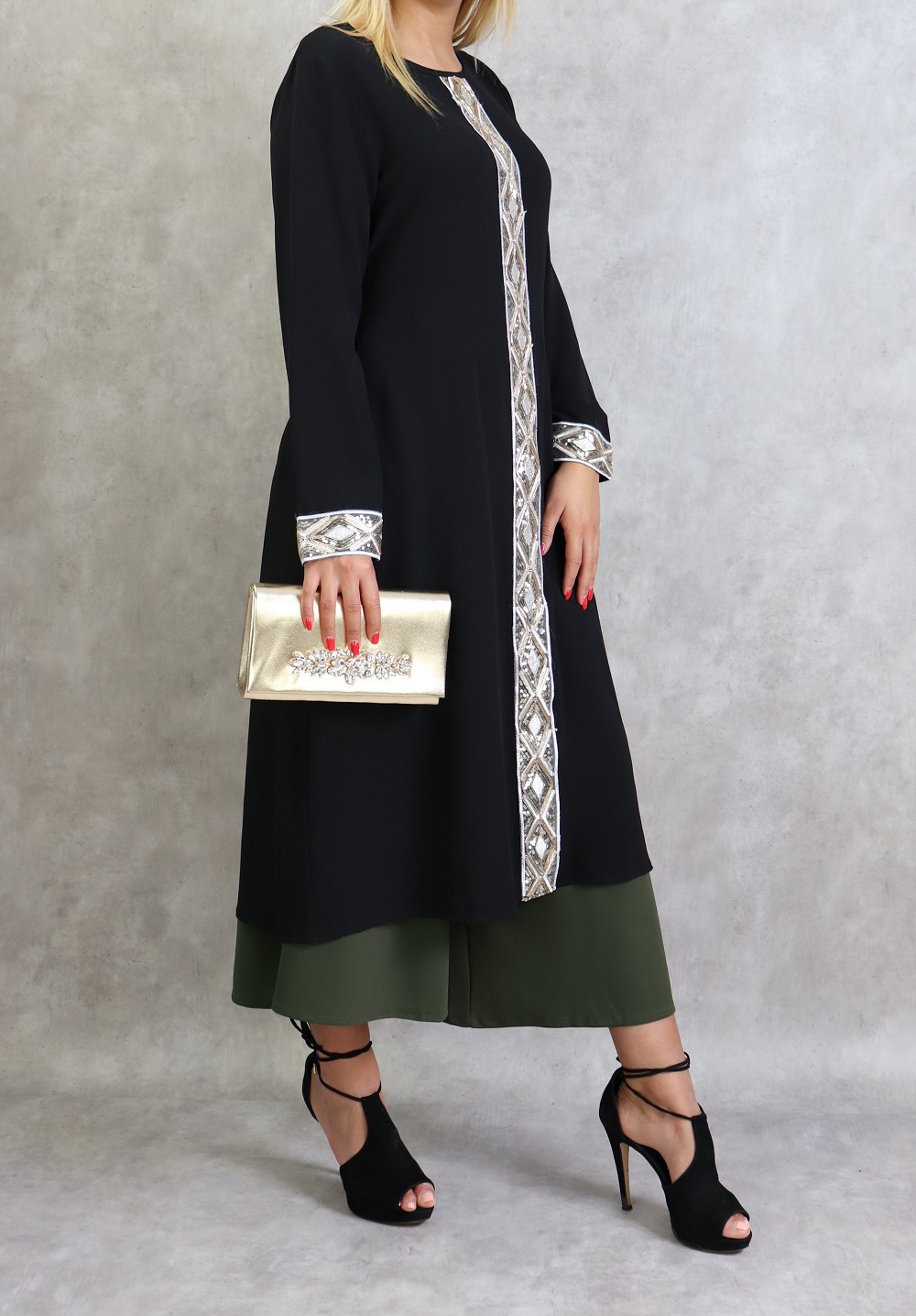 Veste longue classique boutonnée élégante (Vêtement pour femme voilée) - Couleur noire - REF. 33249 (24.90 €) - En Promotion à 19.90 €