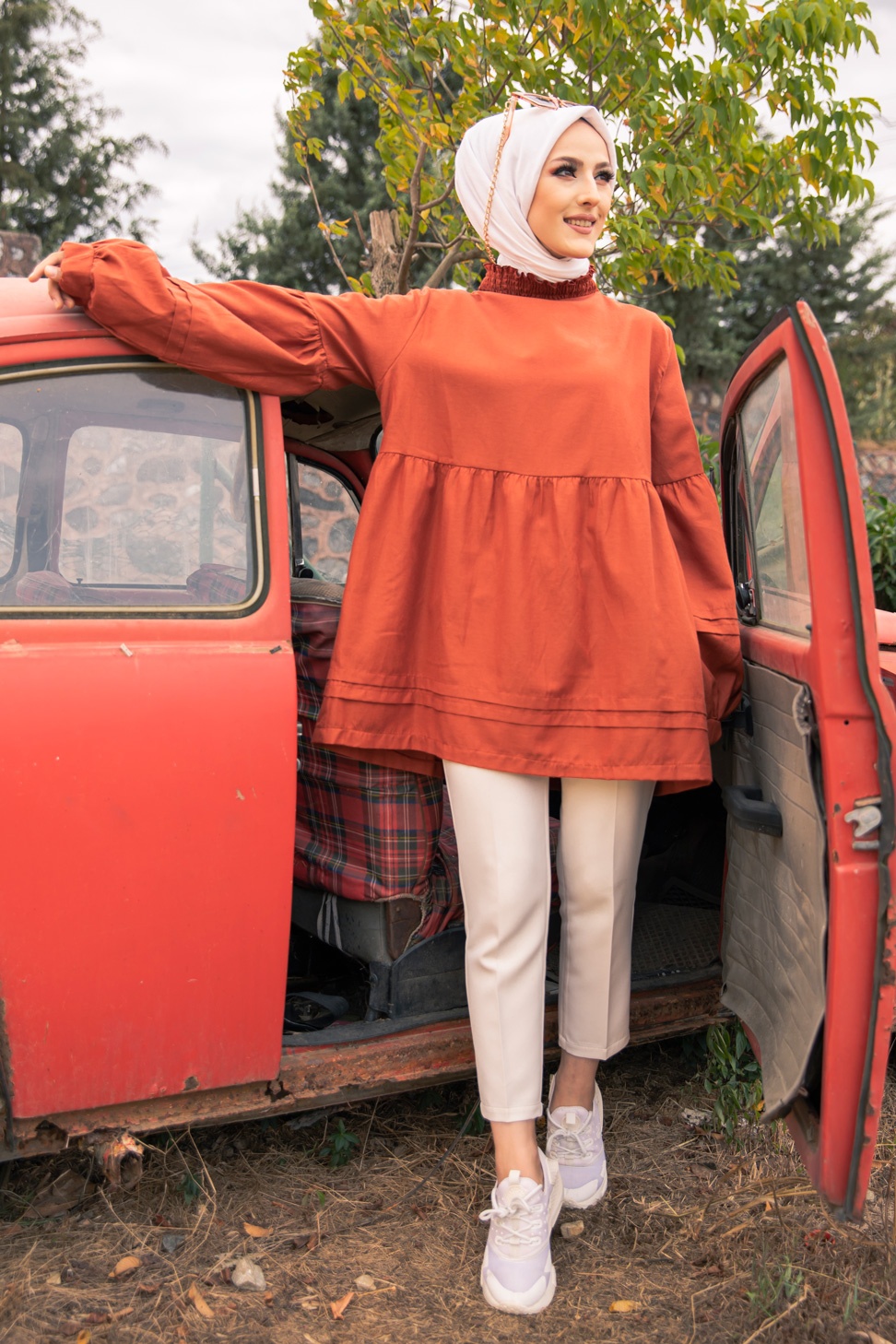 Tunique ample à manches larges pour femme - Couleur rouille Vetement & Accessoire