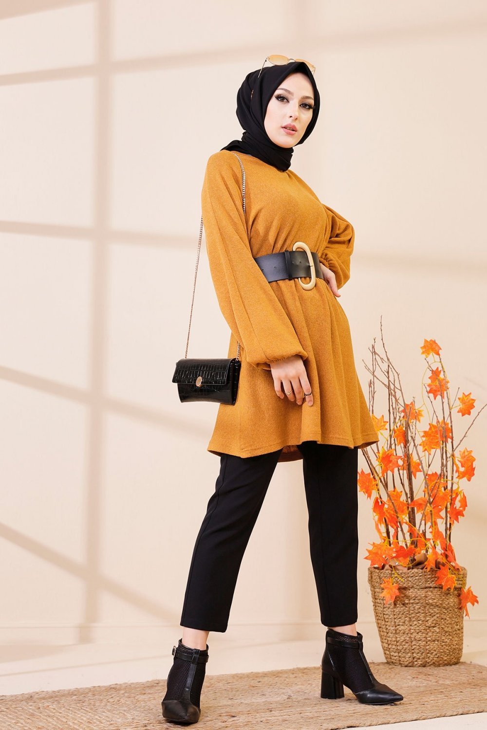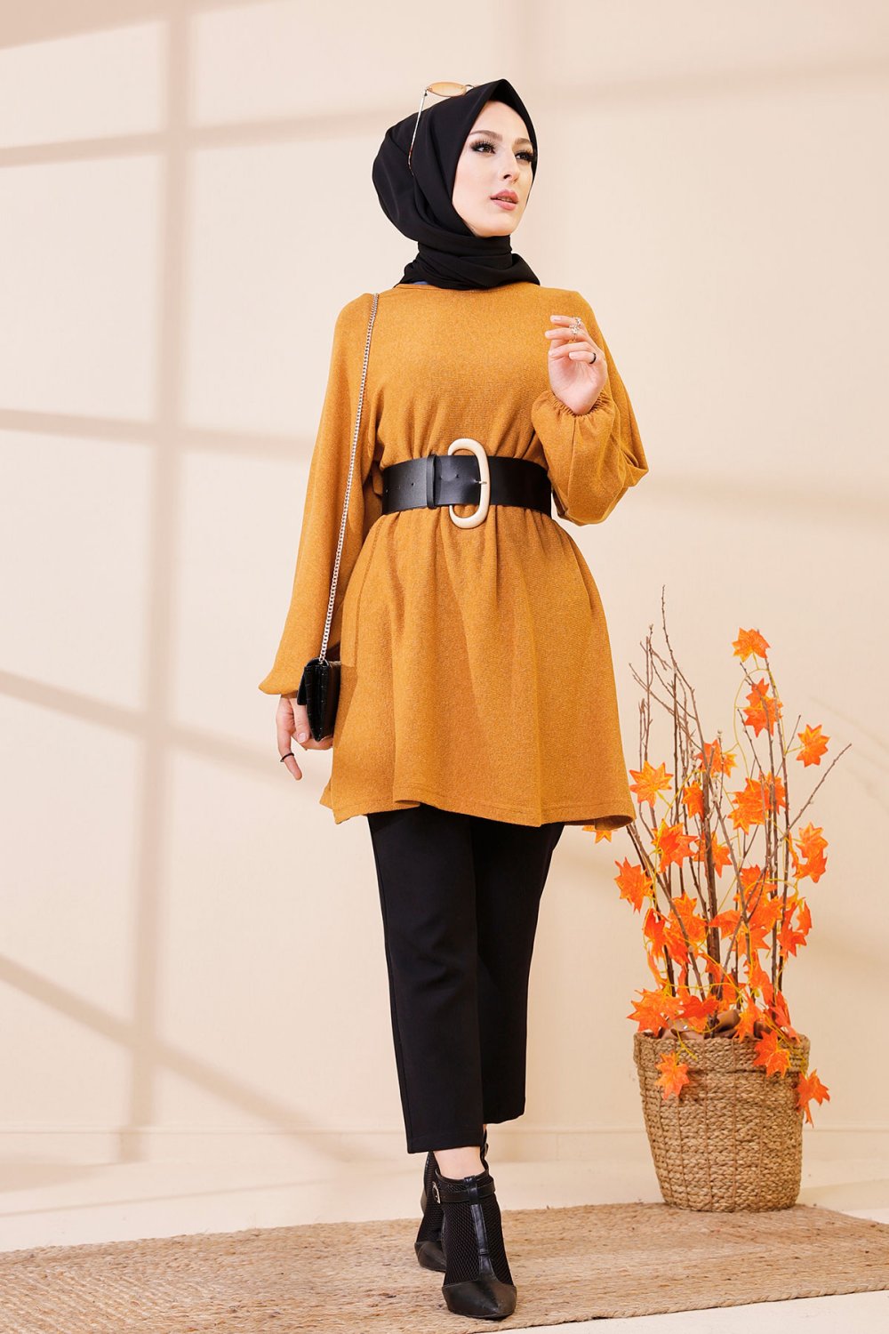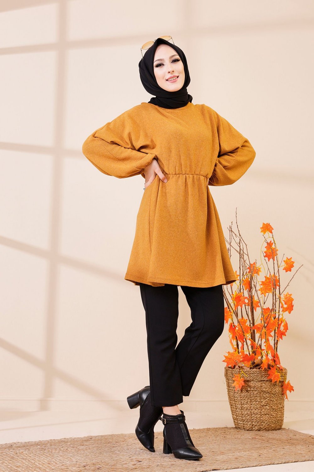 Tunique ample pour femme (Vêtement saison automne Hiver) - Couleur moutarde Vetement & Accessoire