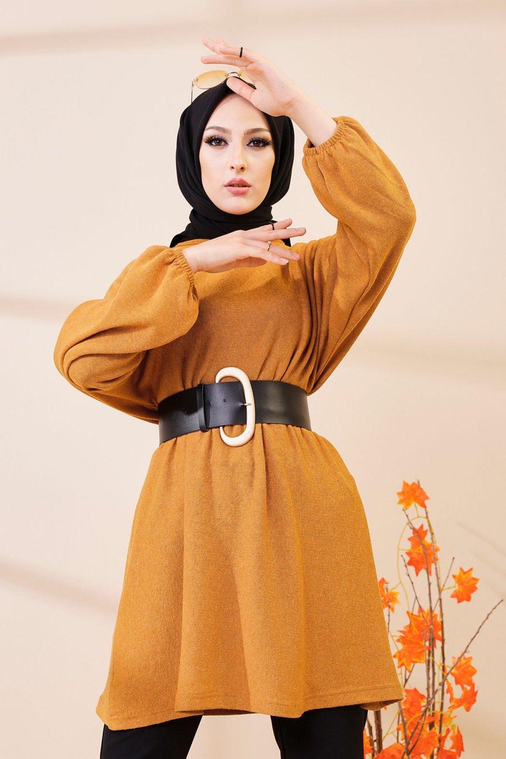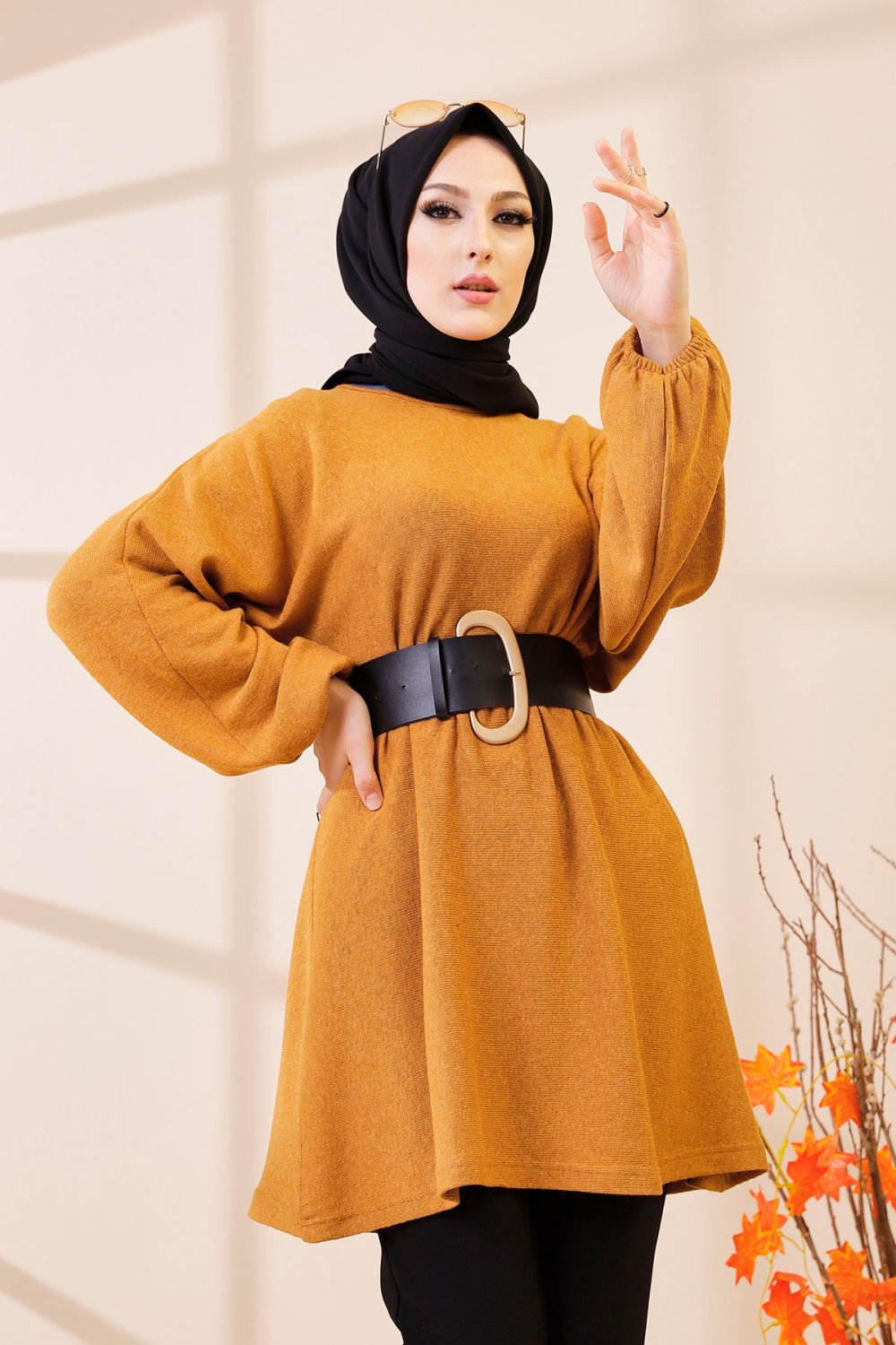 Tunique brillante avec ceinture (Vêtement moderne pour femme voilée) - Couleur brique - REF. 35688 (25.00 €)