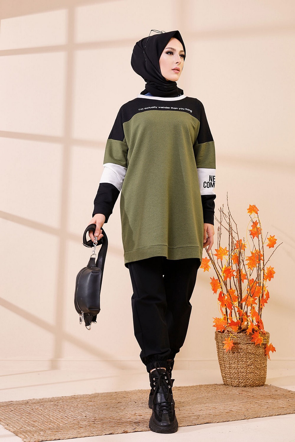 Tunique ample style decontracte et sport (Tenue Hijab moderne) - Couleur kaki