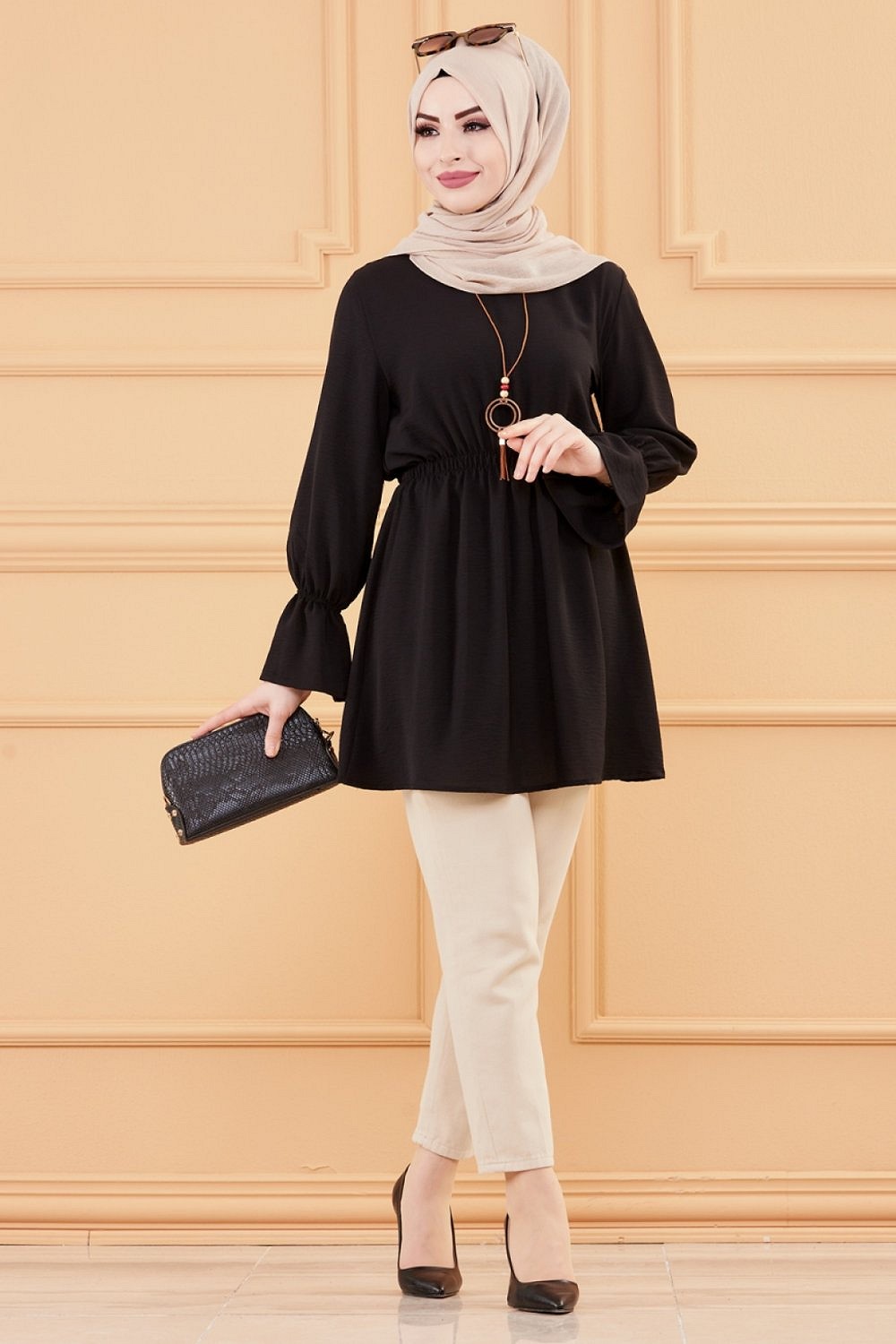 Veste mi-longue pour femme voilée (Gilet pour Hijab) - Couleur noir - REF. 33109 (19.90 €)