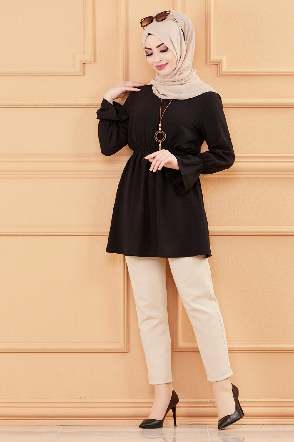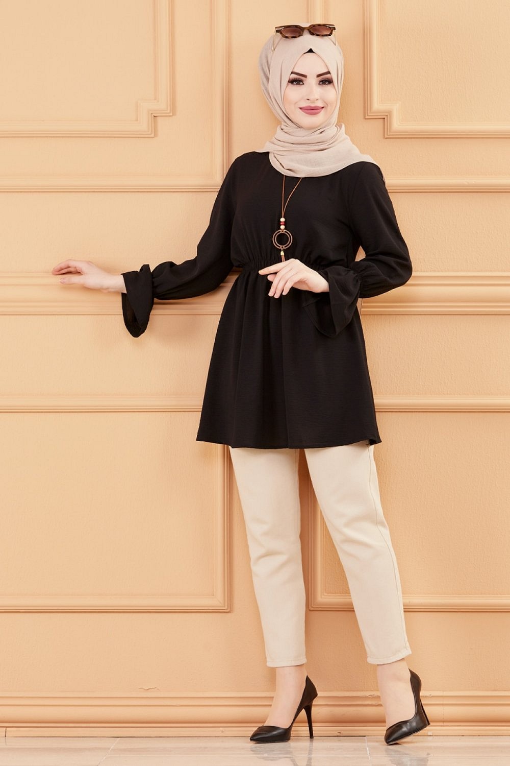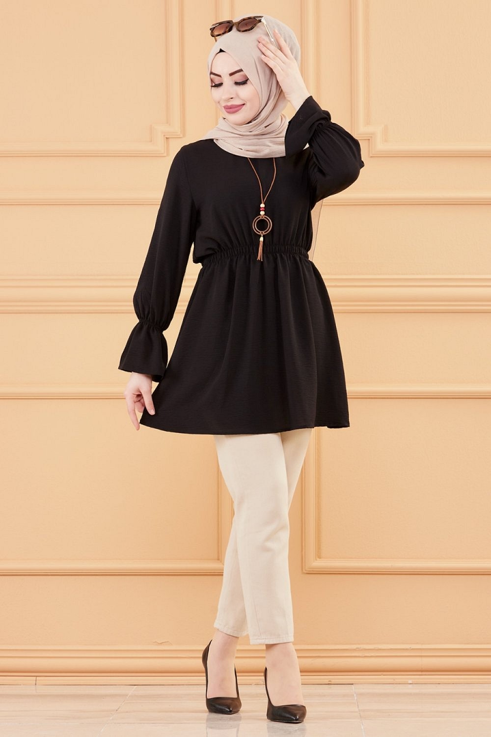 Tunique ample coupe originale (Vetement Hijab pour femme voilée) - Couleur kaki - REF. 33943 (19.90 €)