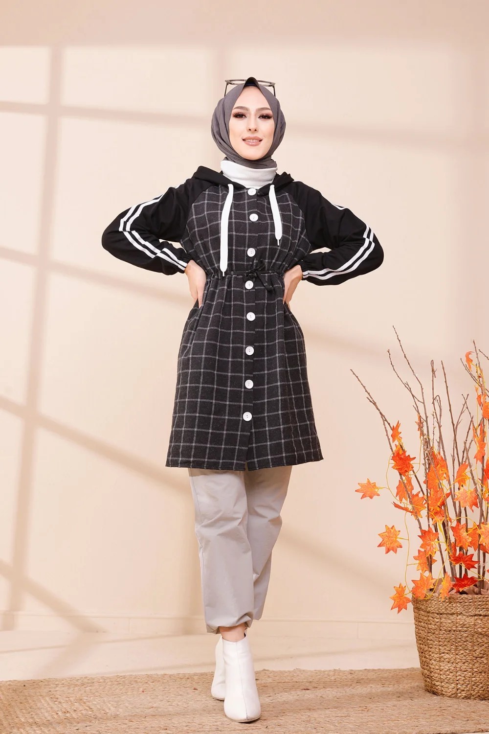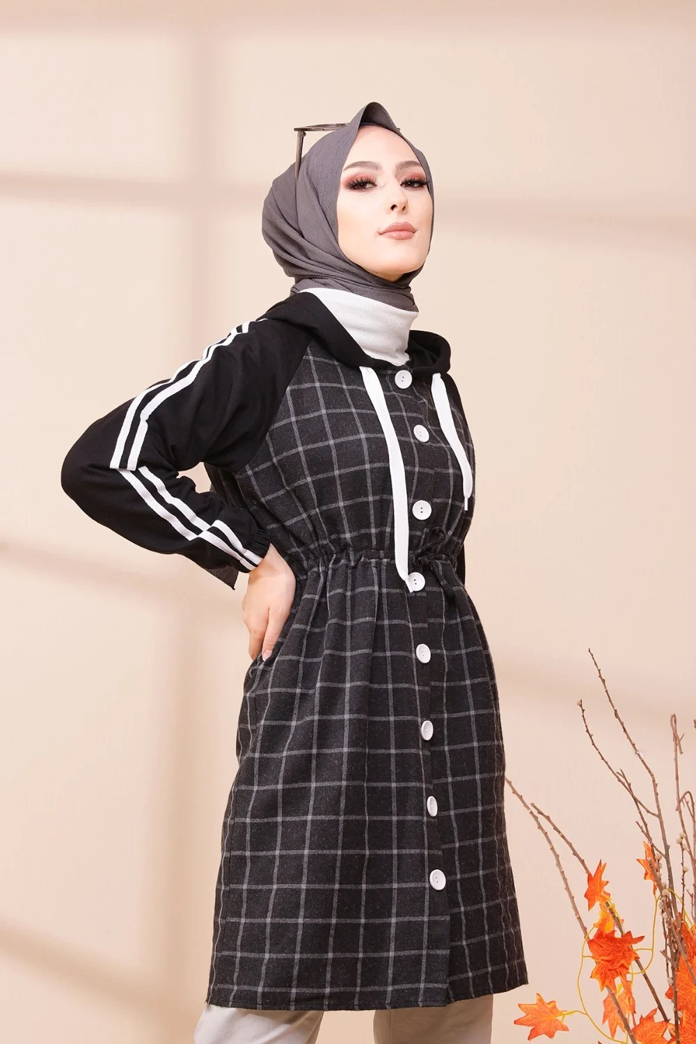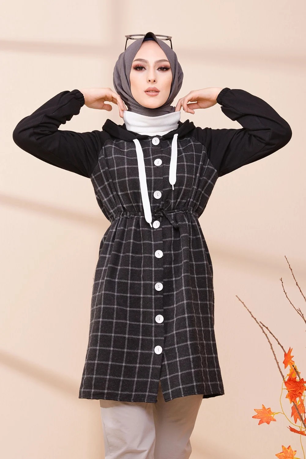 Tunique avec capuche (Tenue moderne pour hijab) - Couleur noir et anthracite