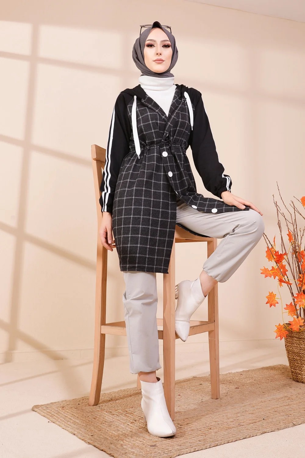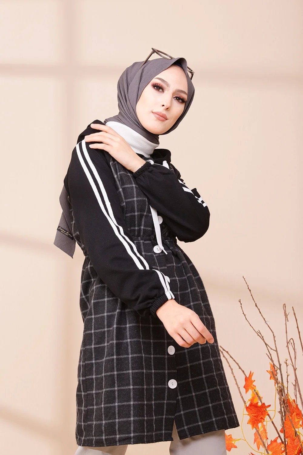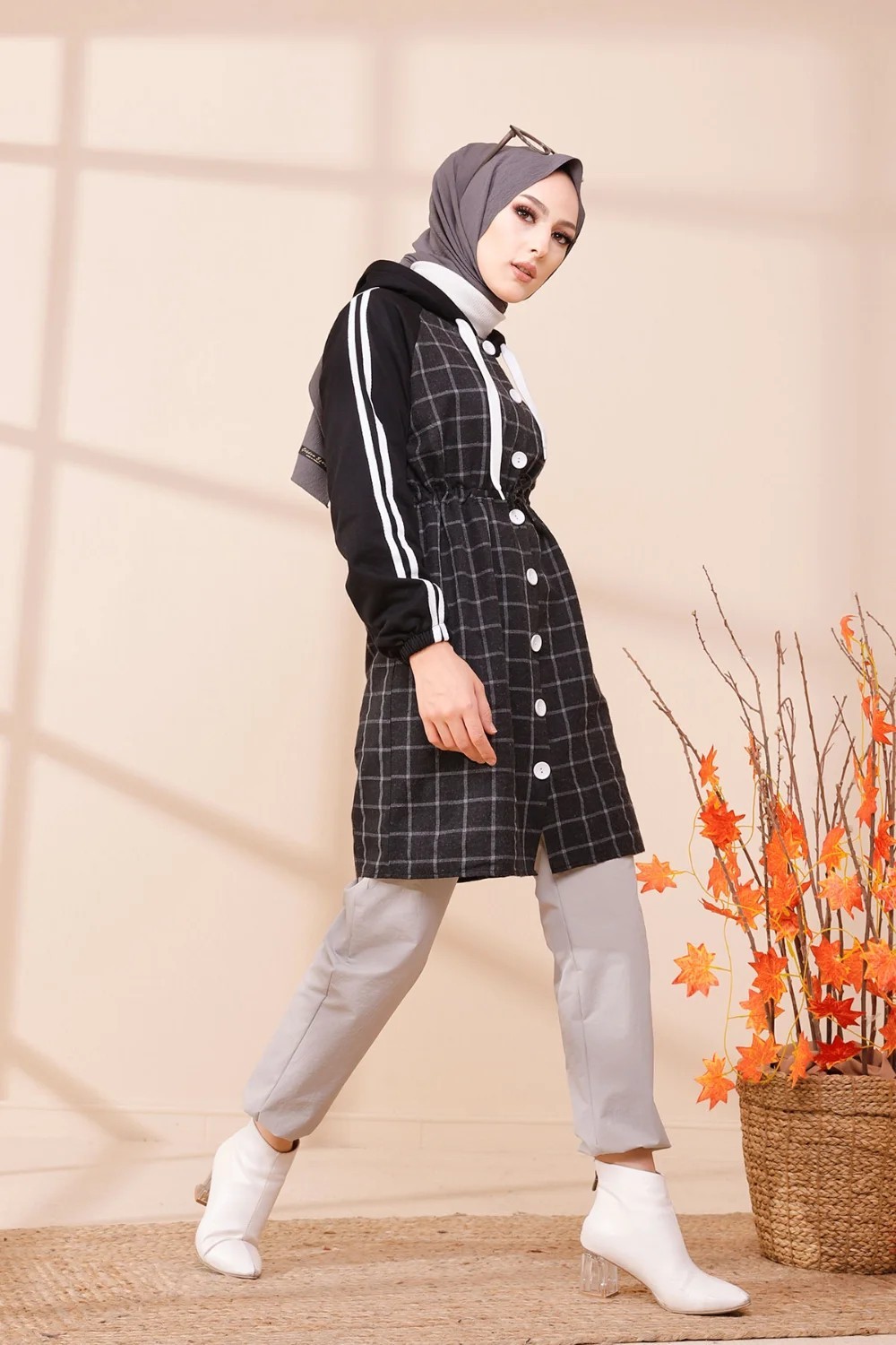 Tunique avec capuche (Tenue moderne pour hijab) - Couleur noir et anthracite