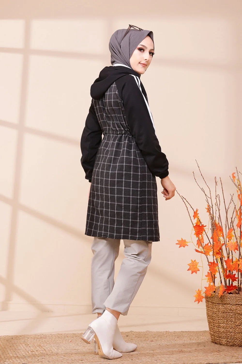 Tunique avec capuche (Tenue moderne pour hijab) - Couleur noir et anthracite Vetement & Accessoire