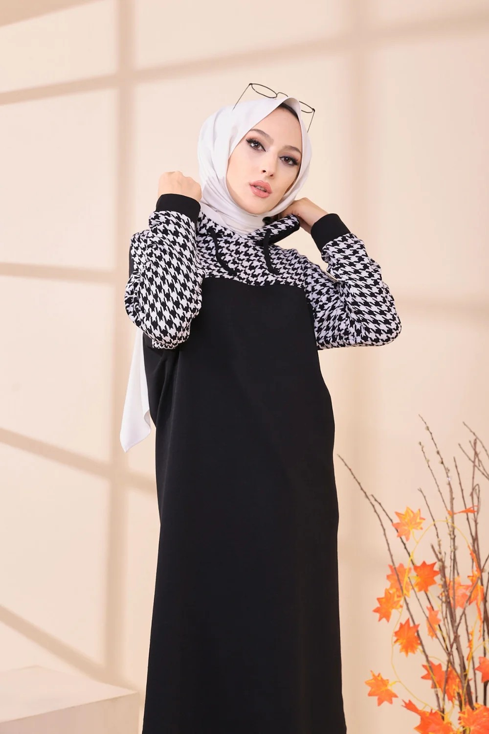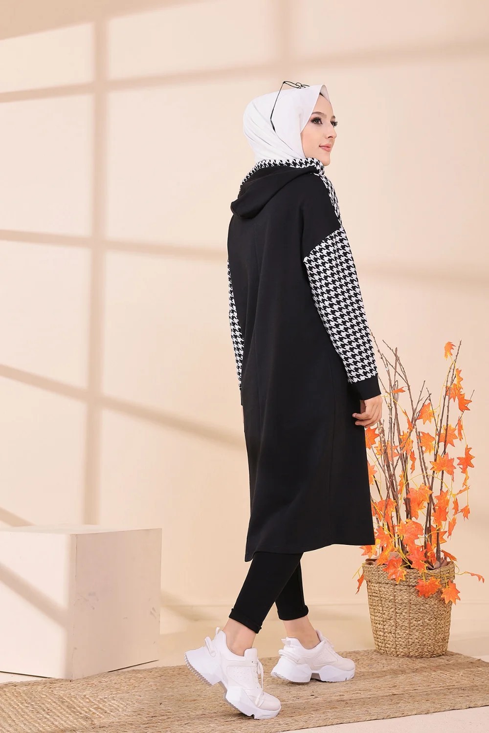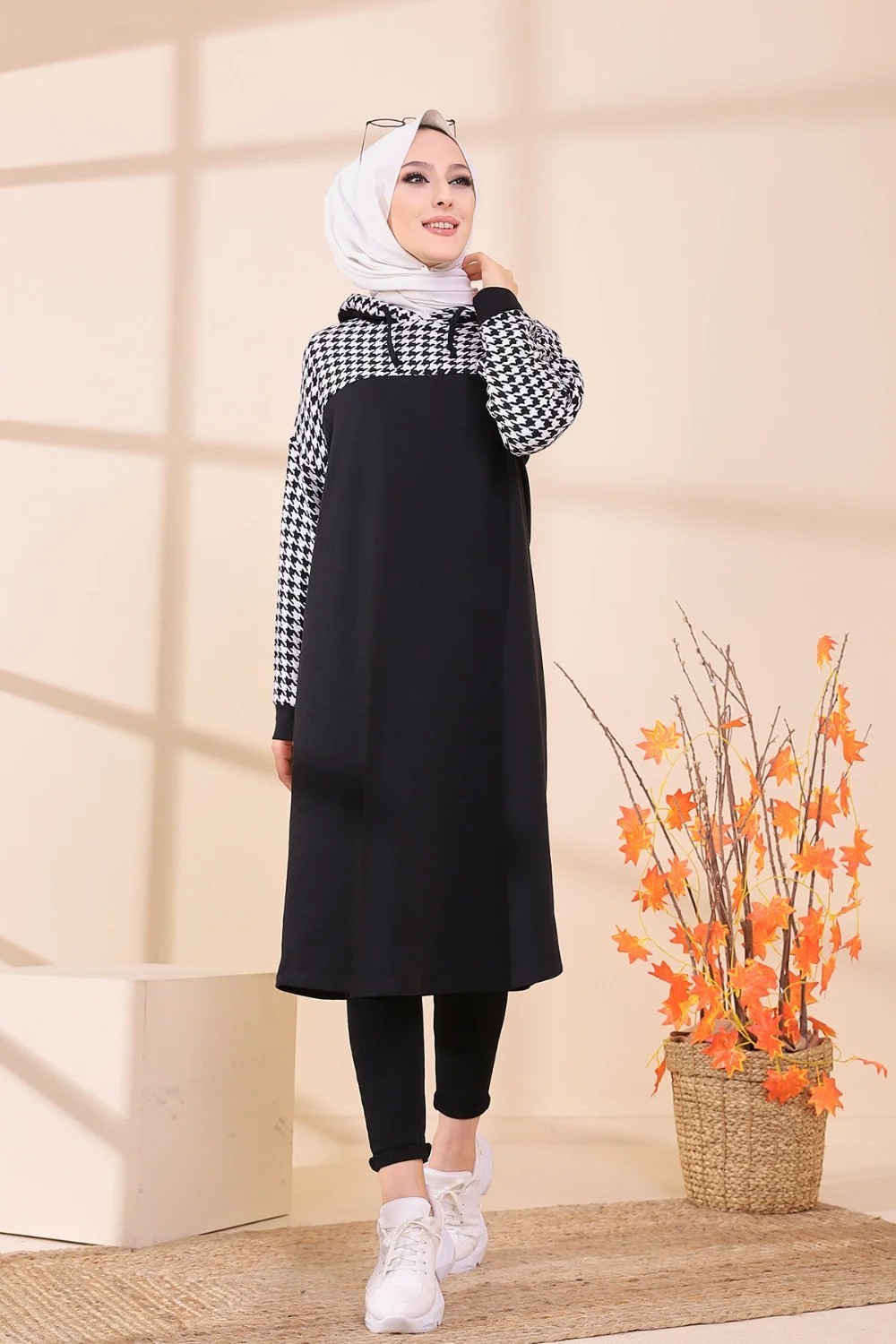 Tunique avec capuche bicolore (Vêtement moderne pour femme voilée - Collection) - Couleur noir et blanc Vetement & Accessoire