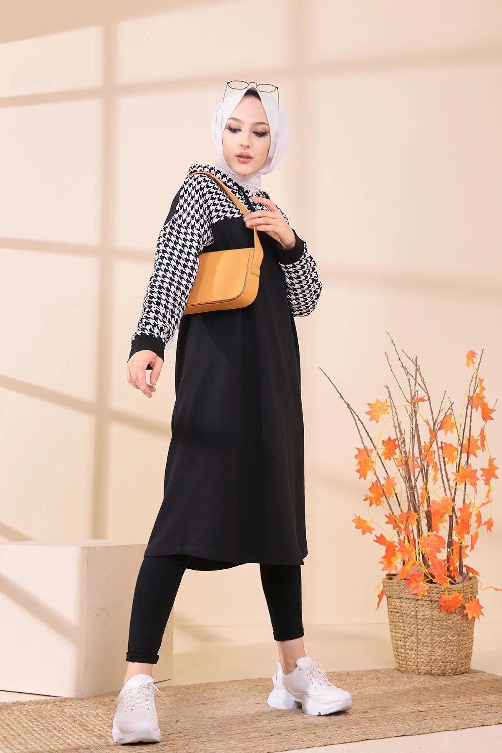 Tenue décontractée de type Sportswear - Vetement islamique mastour pour femme musulmane - Couleur noir et moutarde - REF. 33216 (29.90 €) - En Promotion à 24.90 €