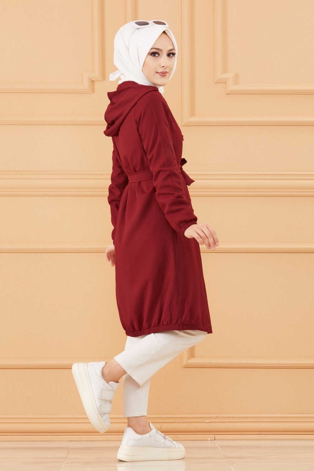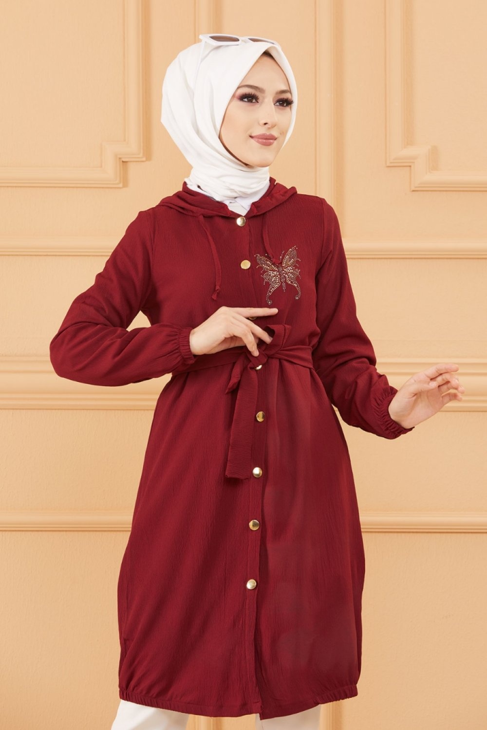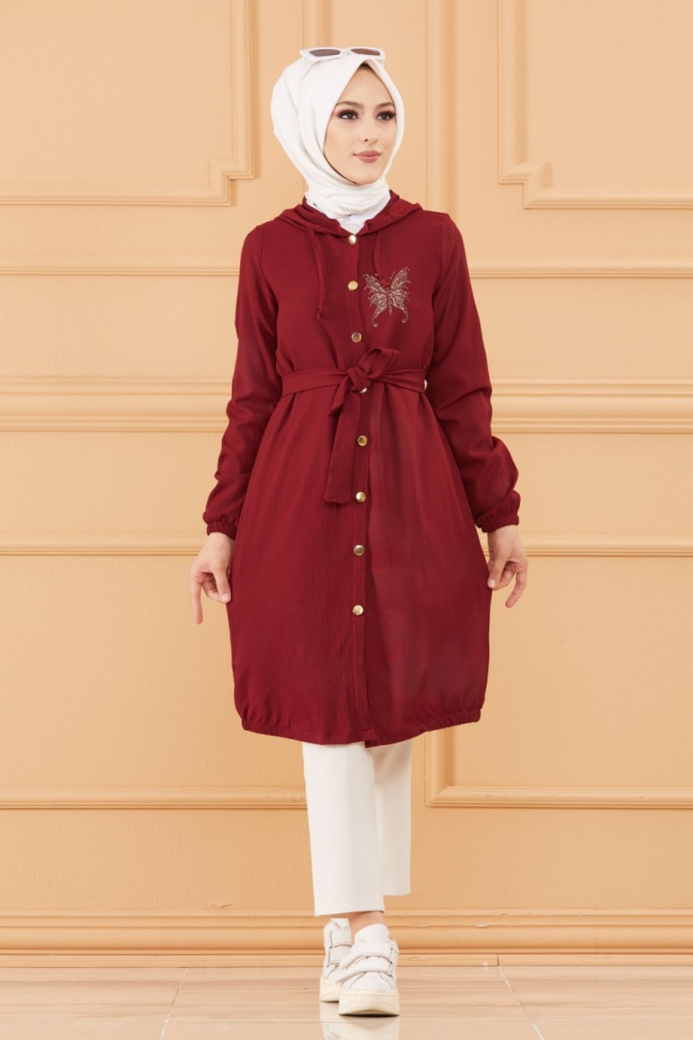 Tunique avec capuche et broderie (Vetement pour femme voilee) - Couleur bordeaux