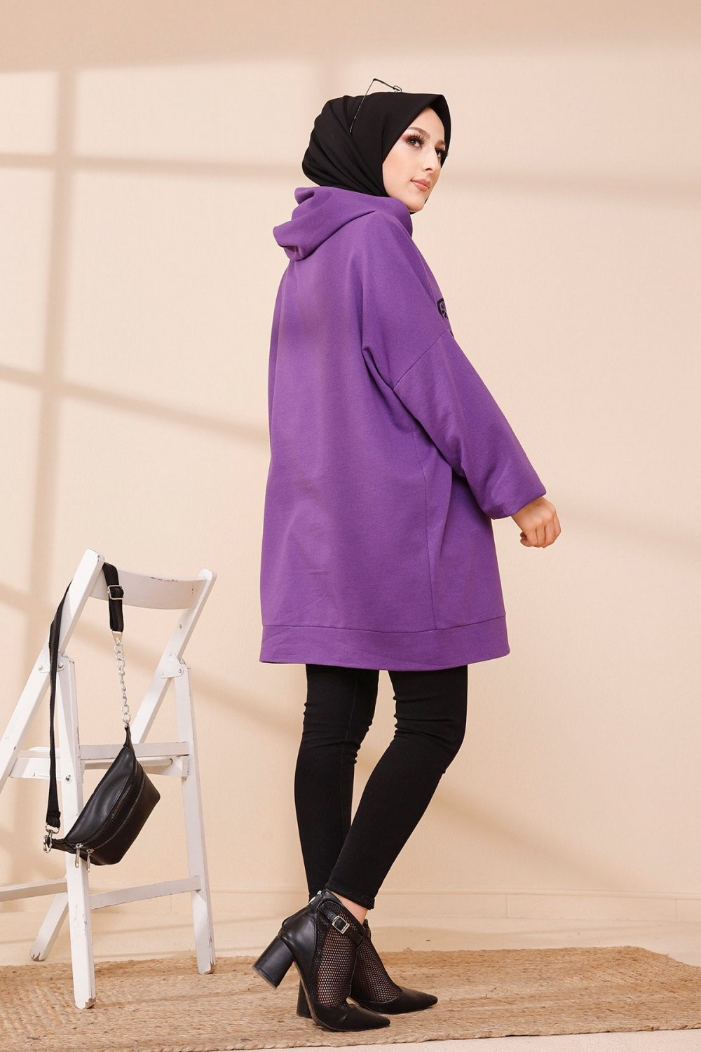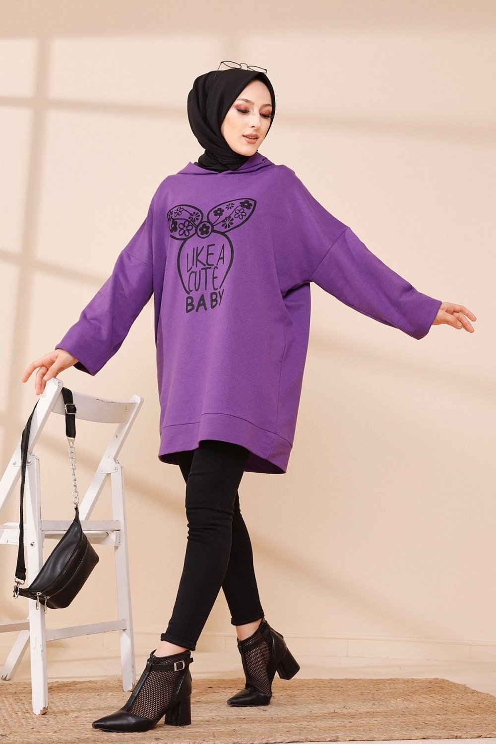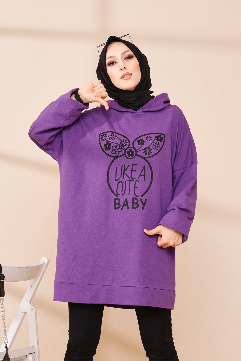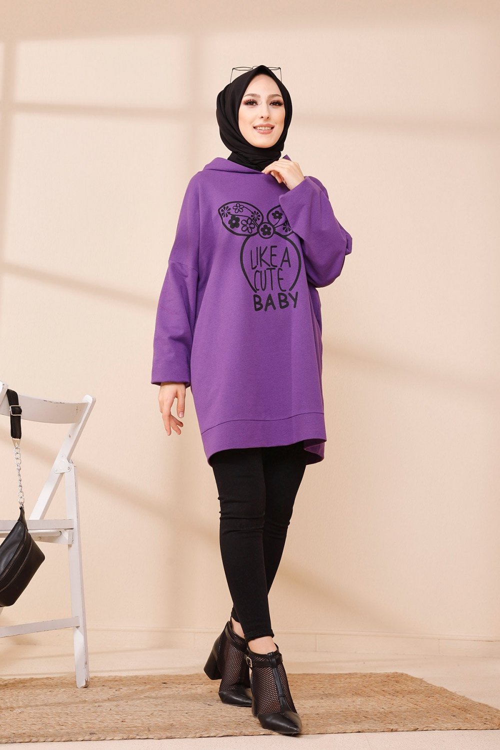 Tunique avec capuche imprimé "Like a cute baby" (Style Moderne Hijab) - Couleur mauve Vetement & Accessoire