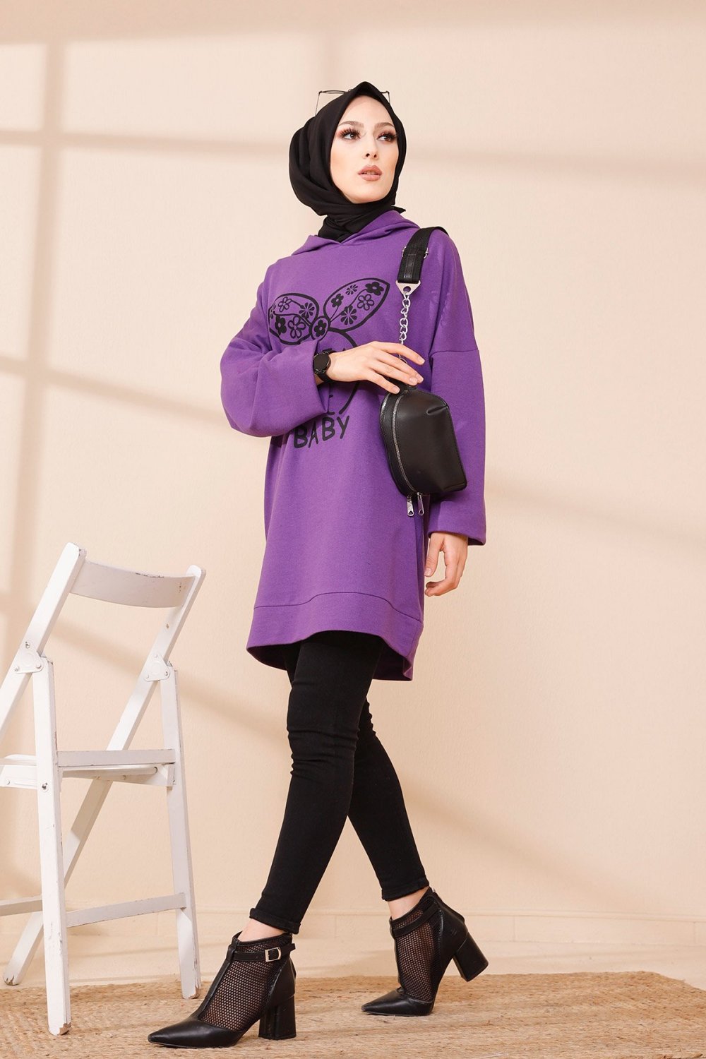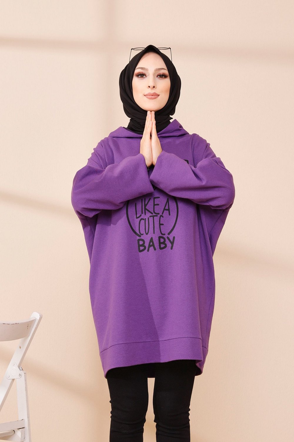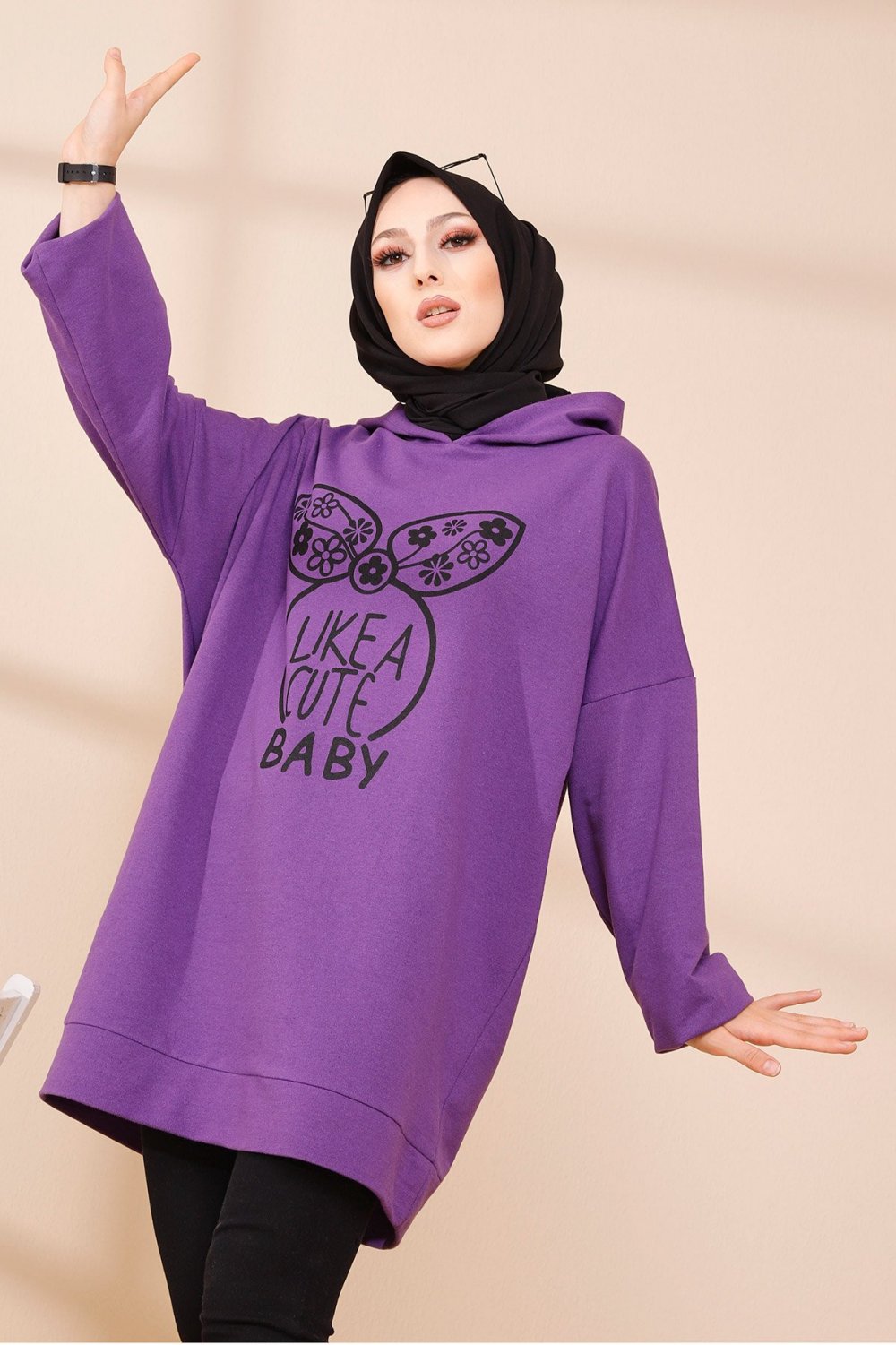 Tunique avec capuche imprime "Like a cute baby" (Style Moderne Hijab) - Couleur mauve