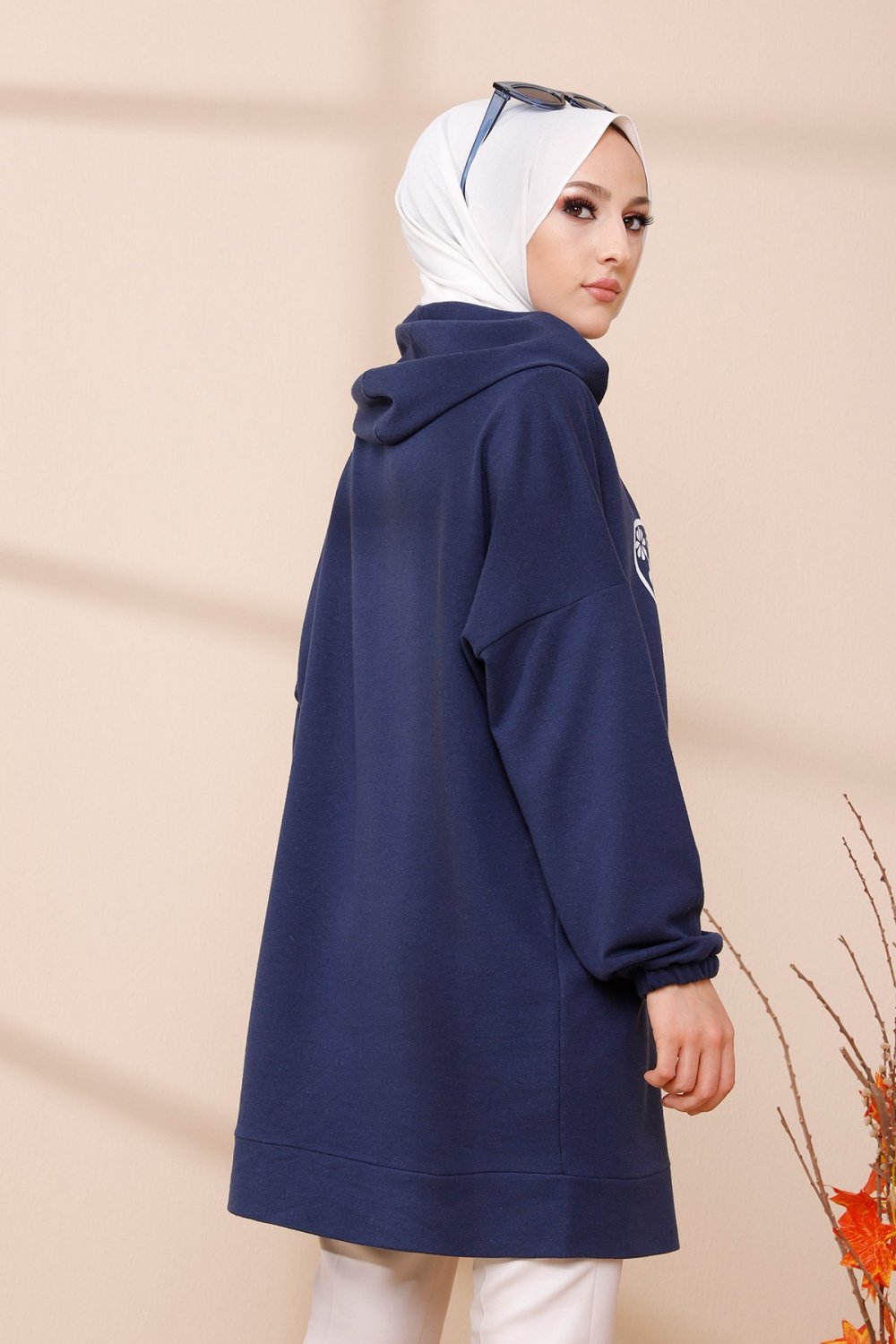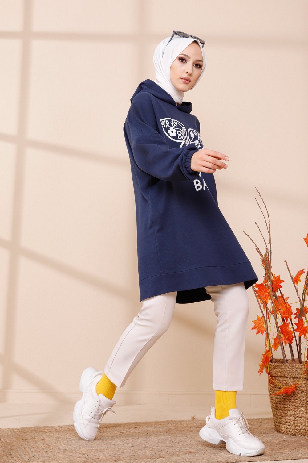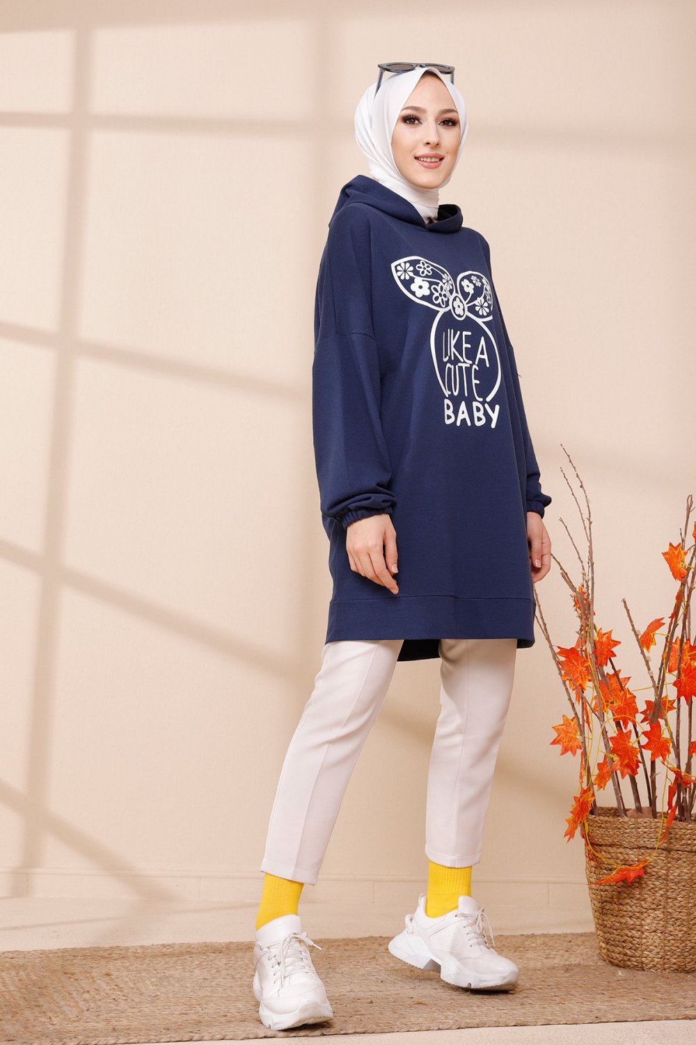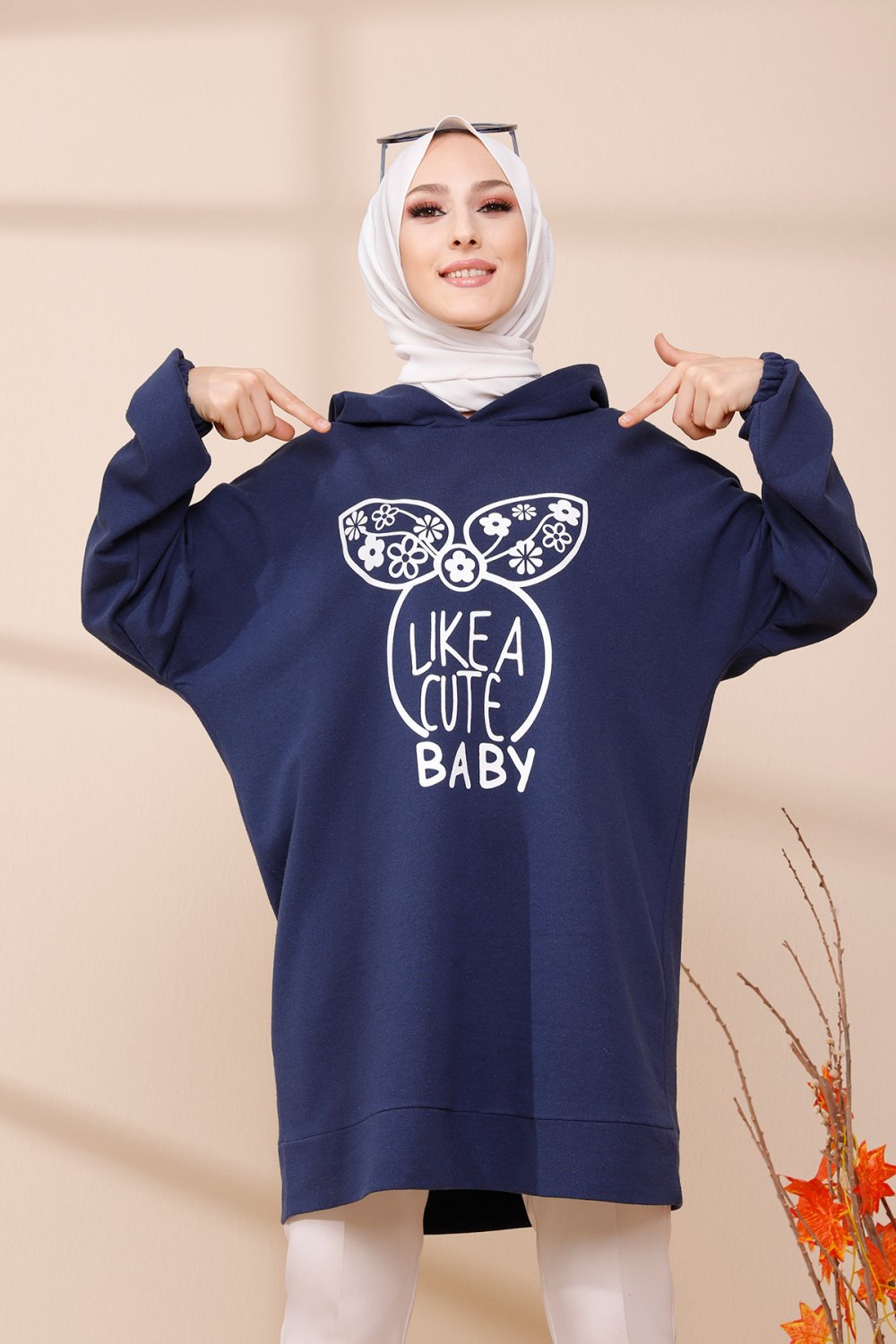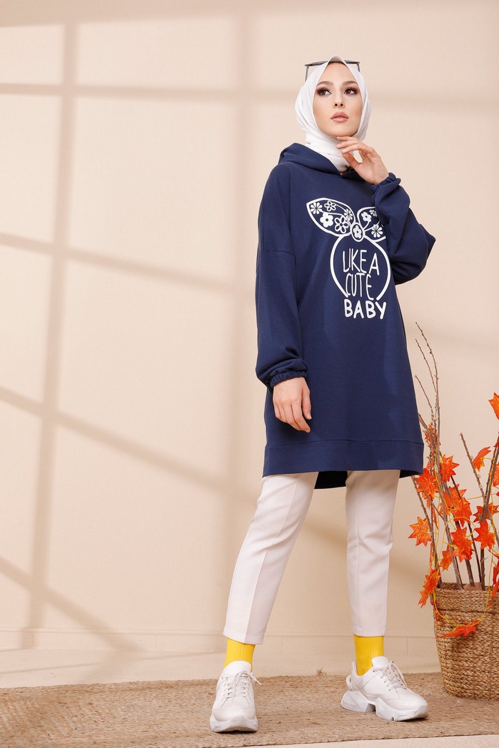 Tunique avec capuche imprime "Like a cute baby" (Tenue Moderne Hijab) - Couleur bleu marine