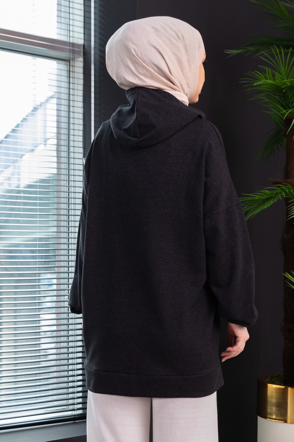 Tunique décontractée ample avec grande poche (Sweat femme Hijab) - Couleur noir - REF. 37550 (22.00 €)