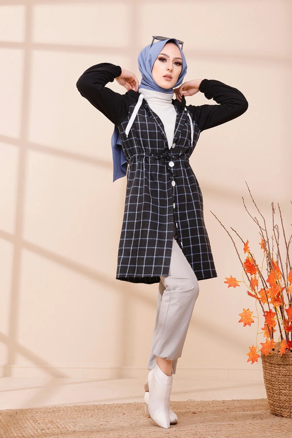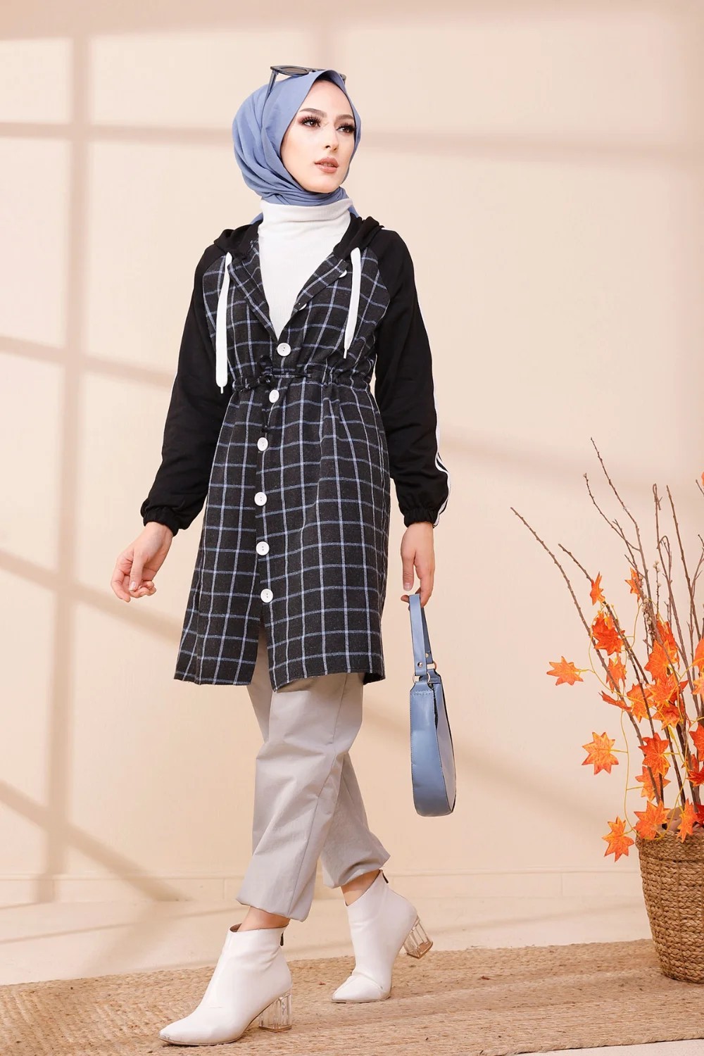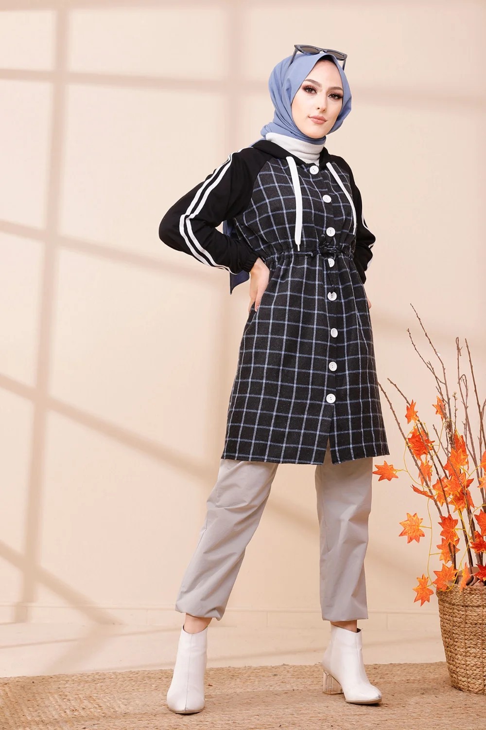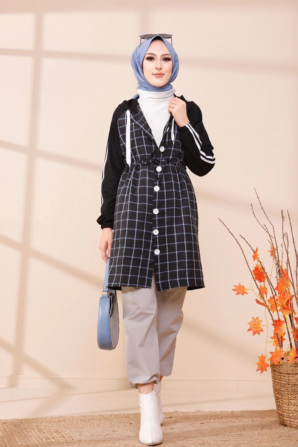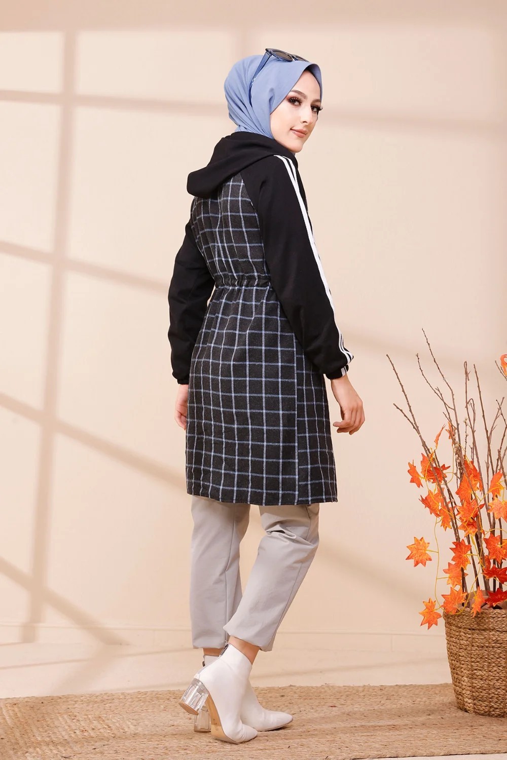 Tunique avec capuche pour femme (Tenue hijab moderne) - Couleur anthracite et bleu