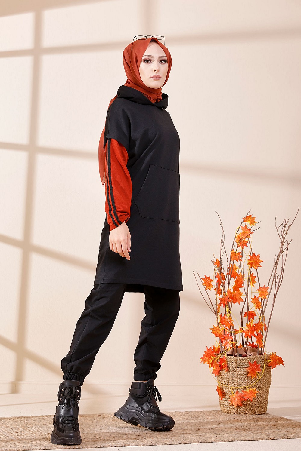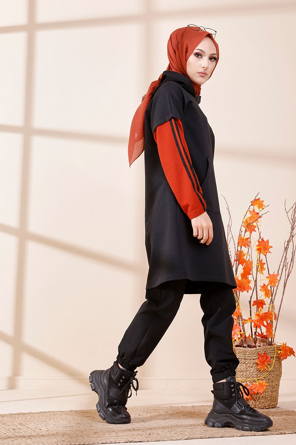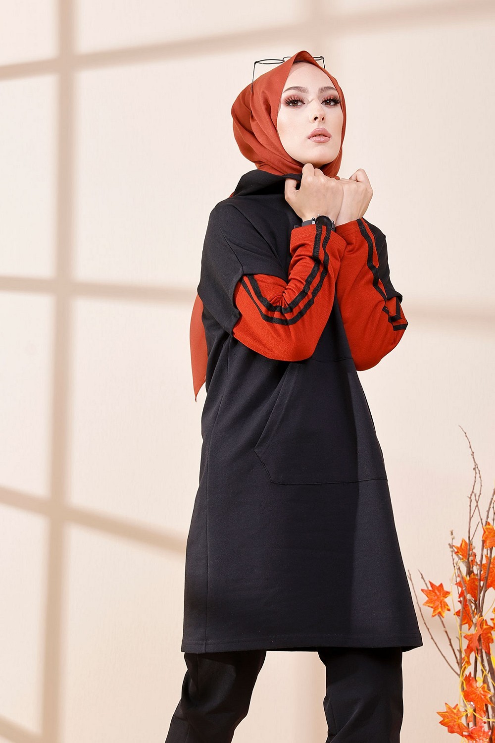 Tunique avec capuche pour femme (Vetement hijab style moderne) - Couleur noir et rouge - REF. 35561 (23.00 €) - En Promotion à 19.00 €