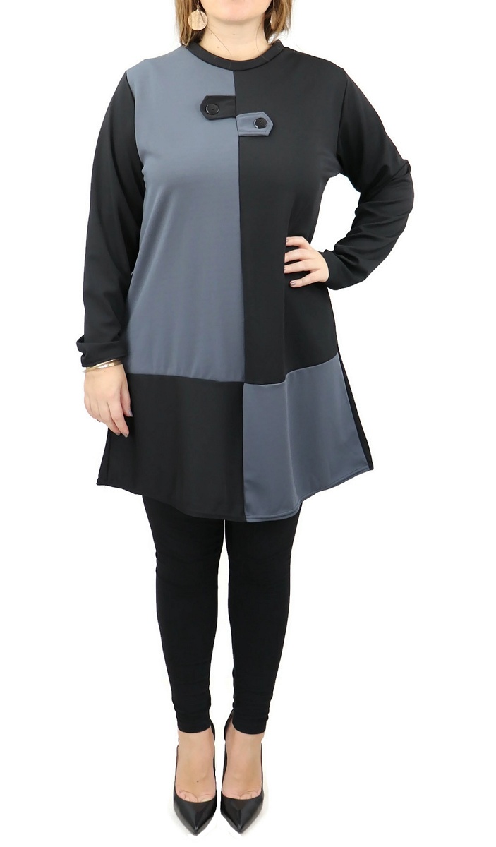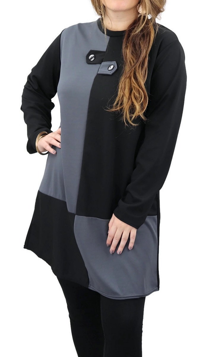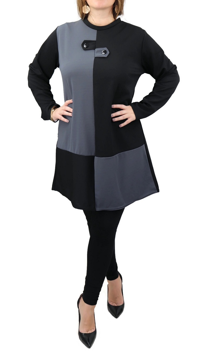 Tunique bicolore (noir et gris) avec boutons pour femme