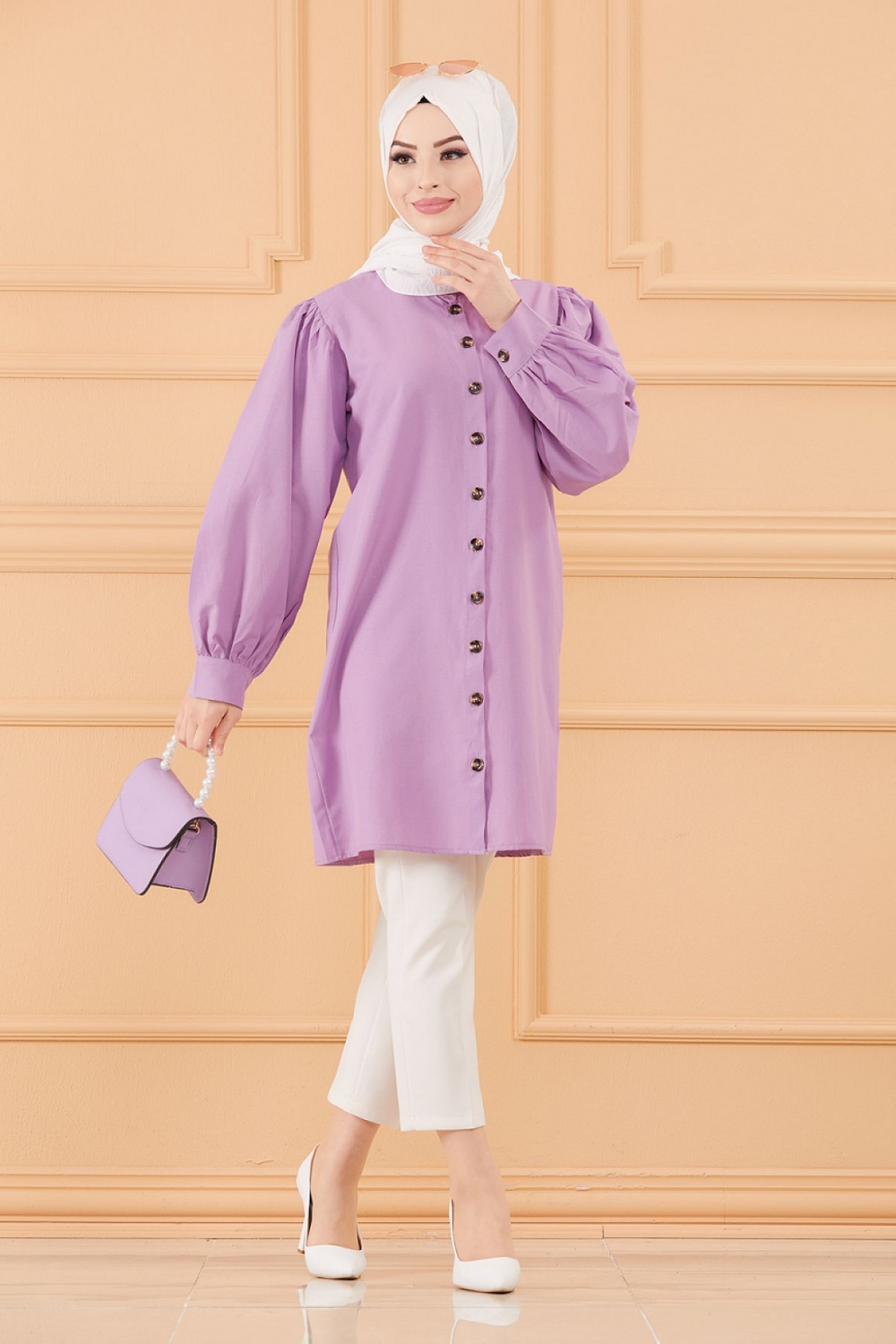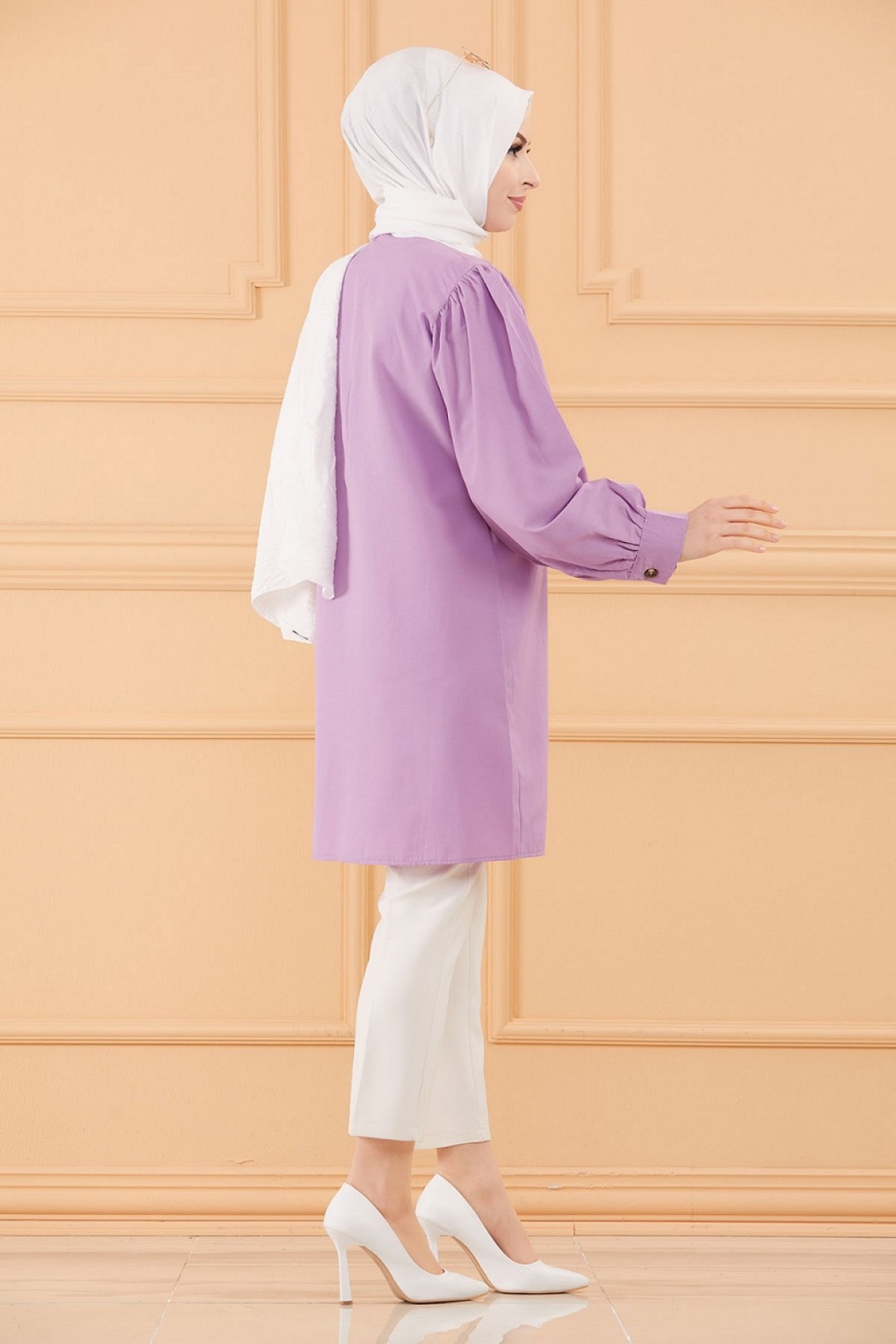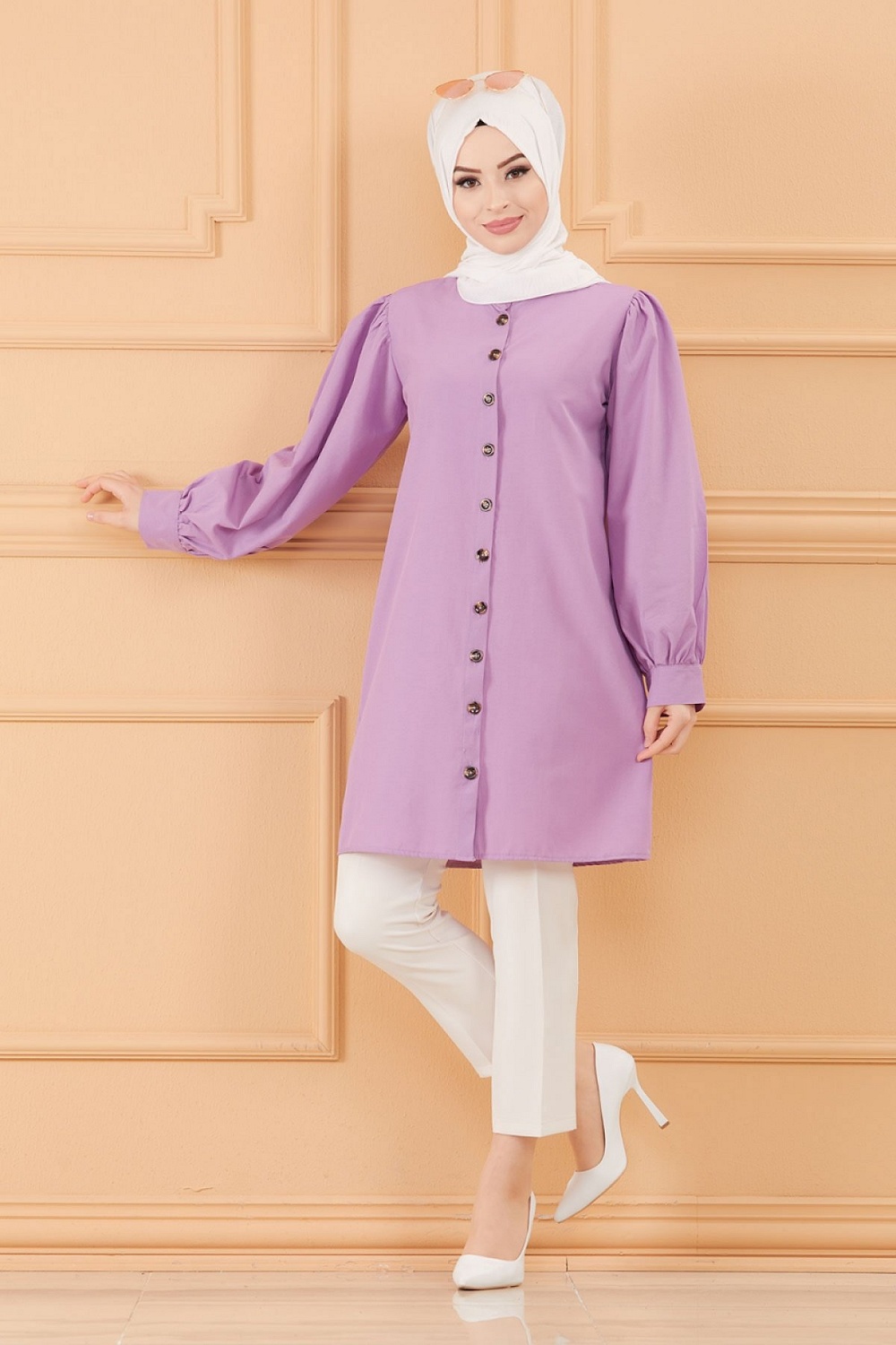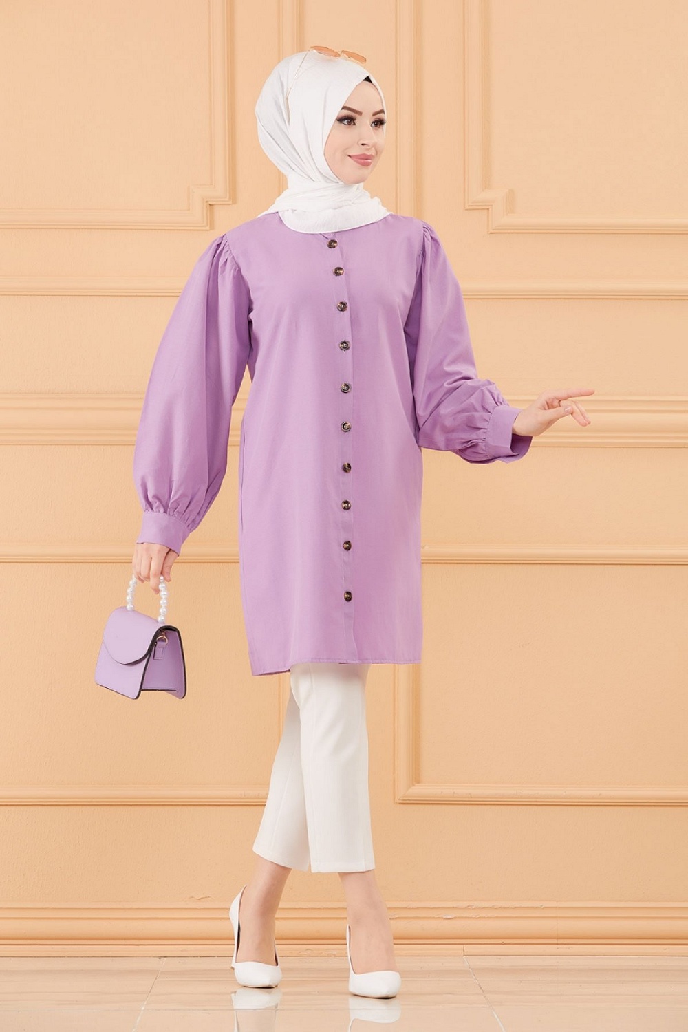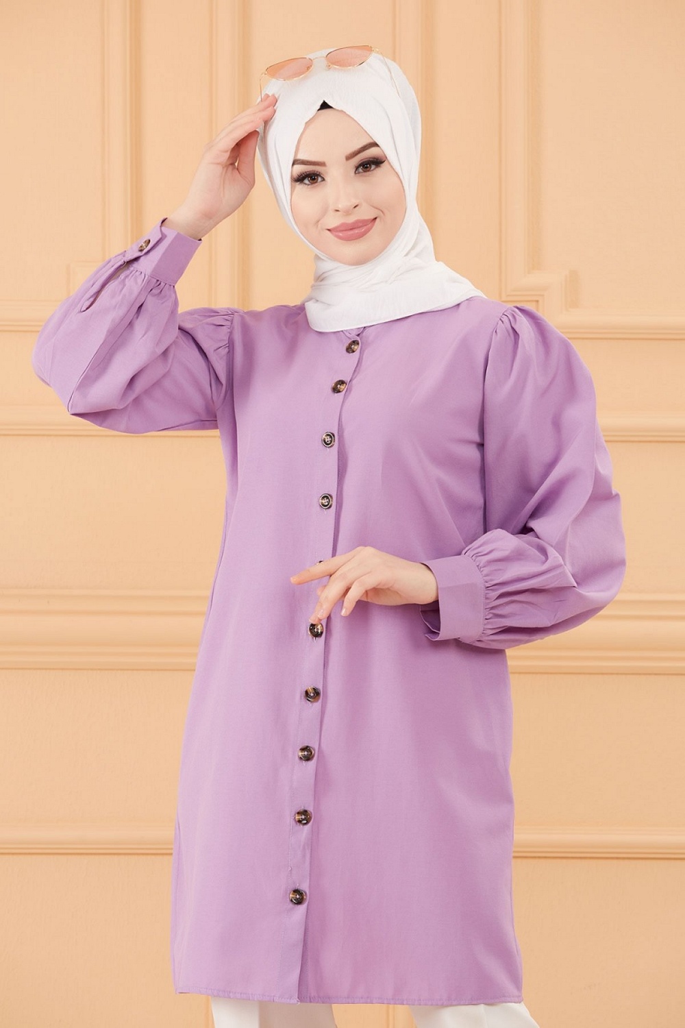 Tunique boutonnée pour femme (Tuniques style habillé pour Hijab) - Couleur lilas Vetement & Accessoire