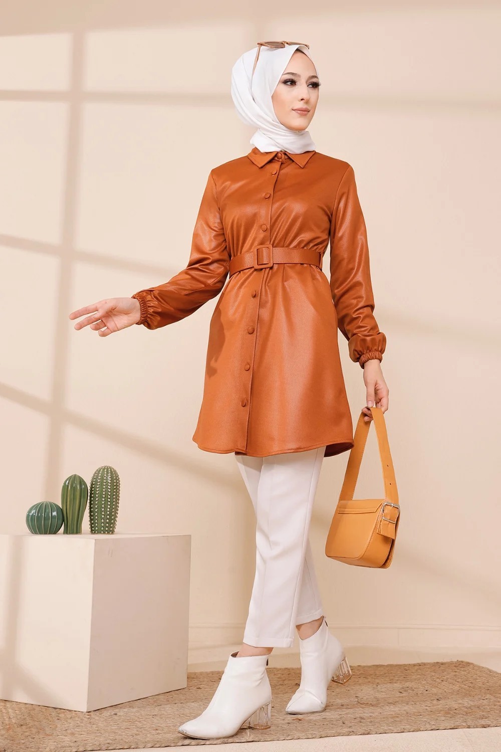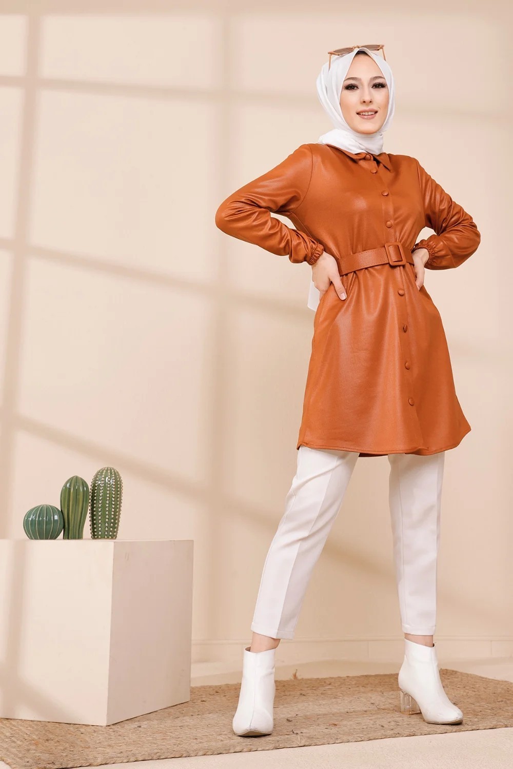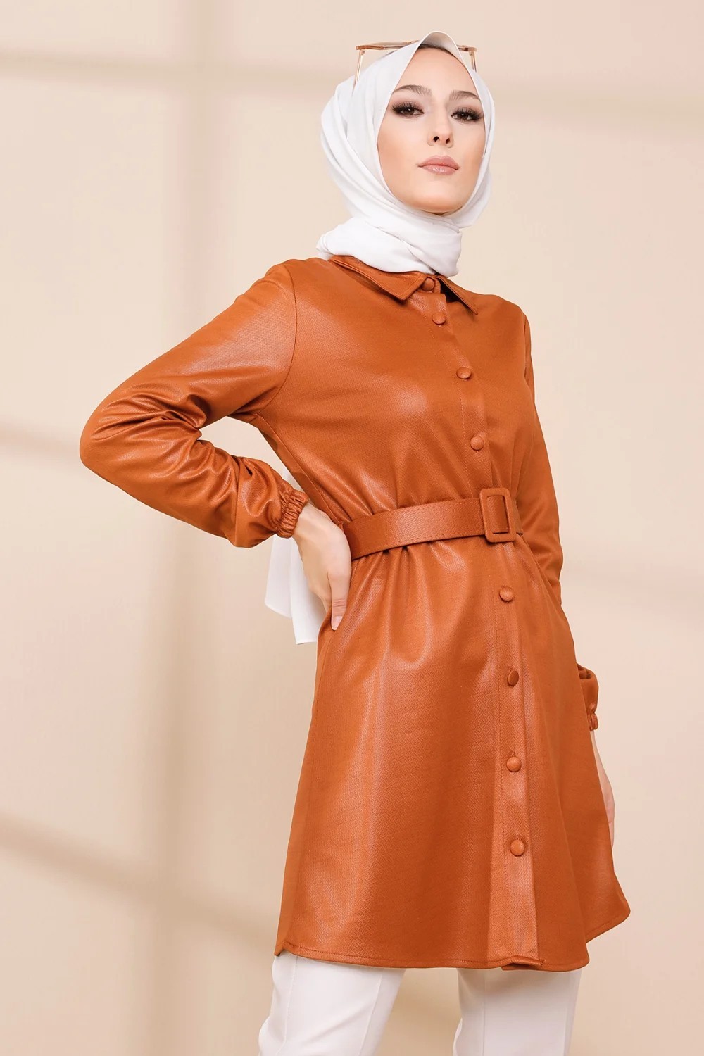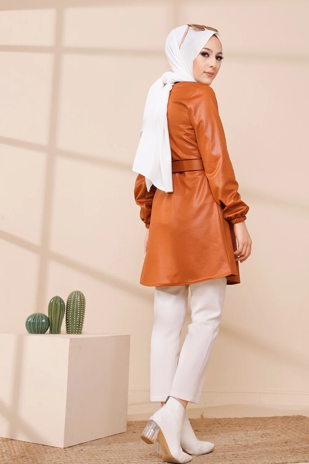 Tunique brillante avec ceinture (Vêtement moderne pour femme voilée) - Couleur brique Vetement & Accessoire