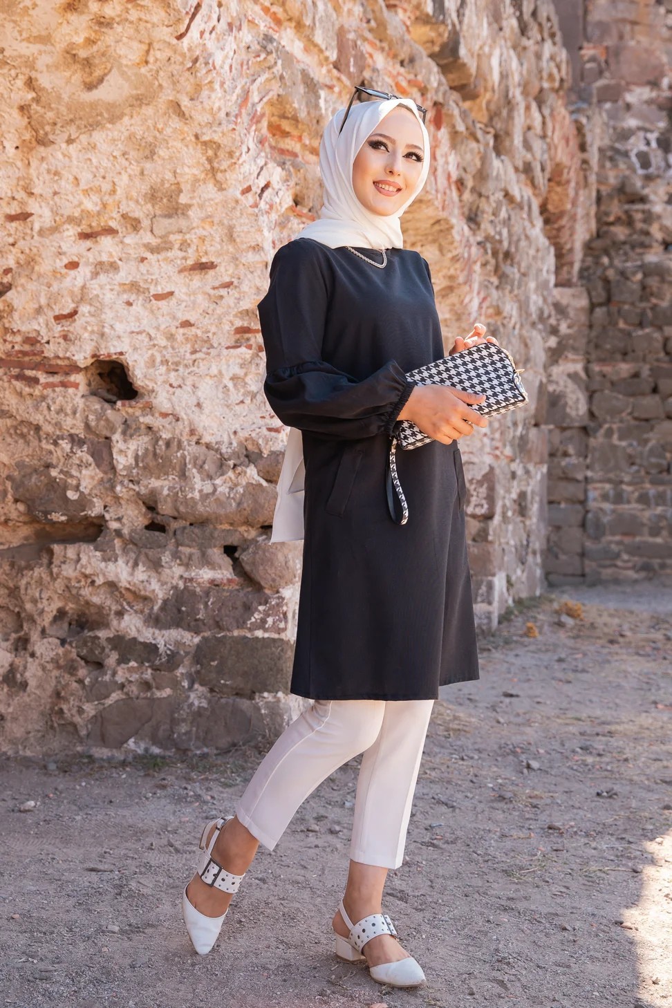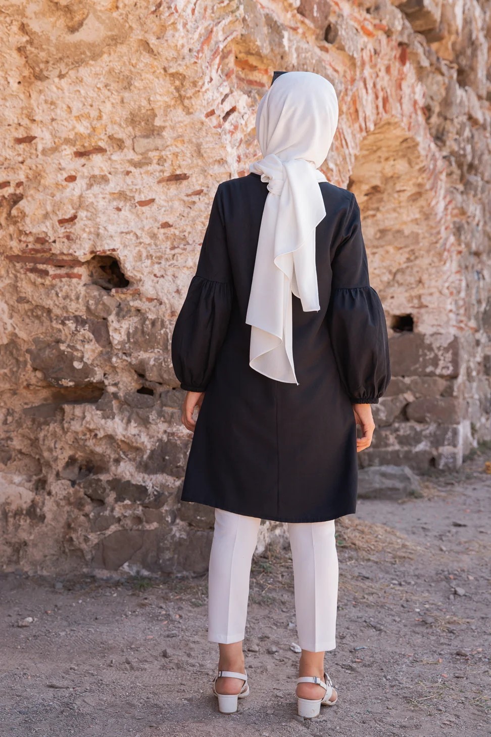 Tunique casual a manches bouffantes pour femme (Vetement pour musulmane) - Couleur noir