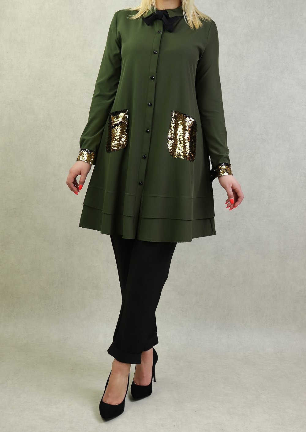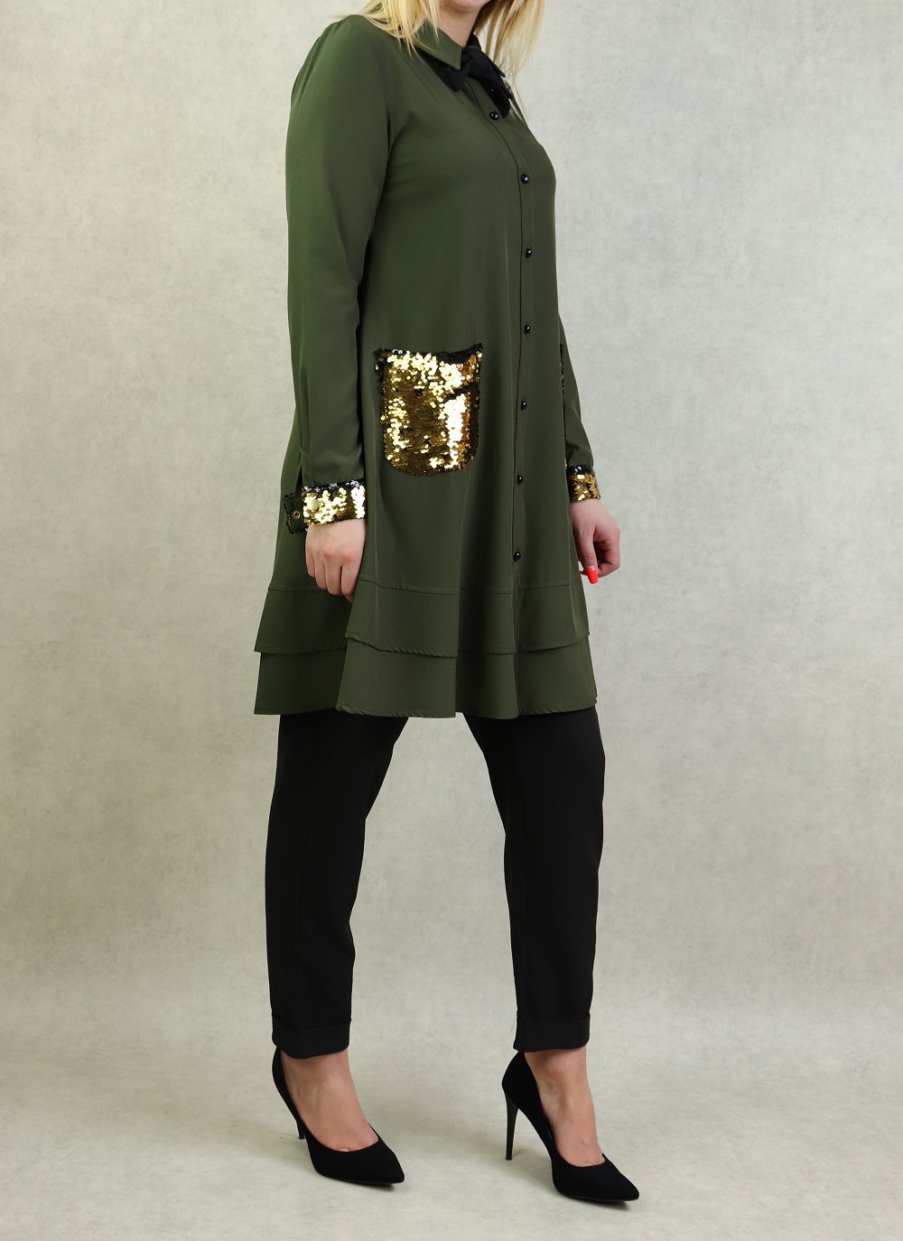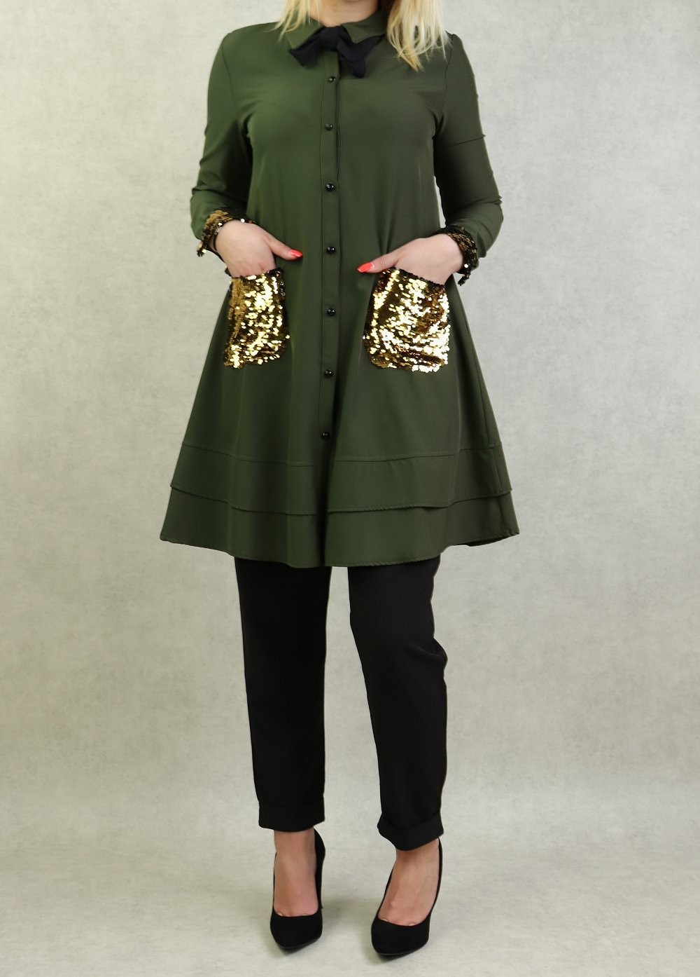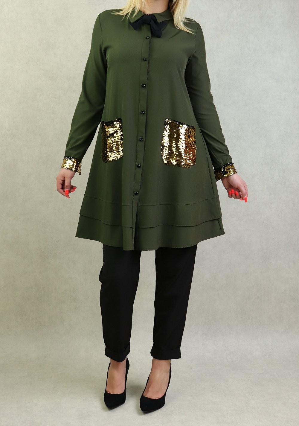 Tunique de soirée avec poches à paillettes pour femme - Couleur kaki Vetement & Accessoire