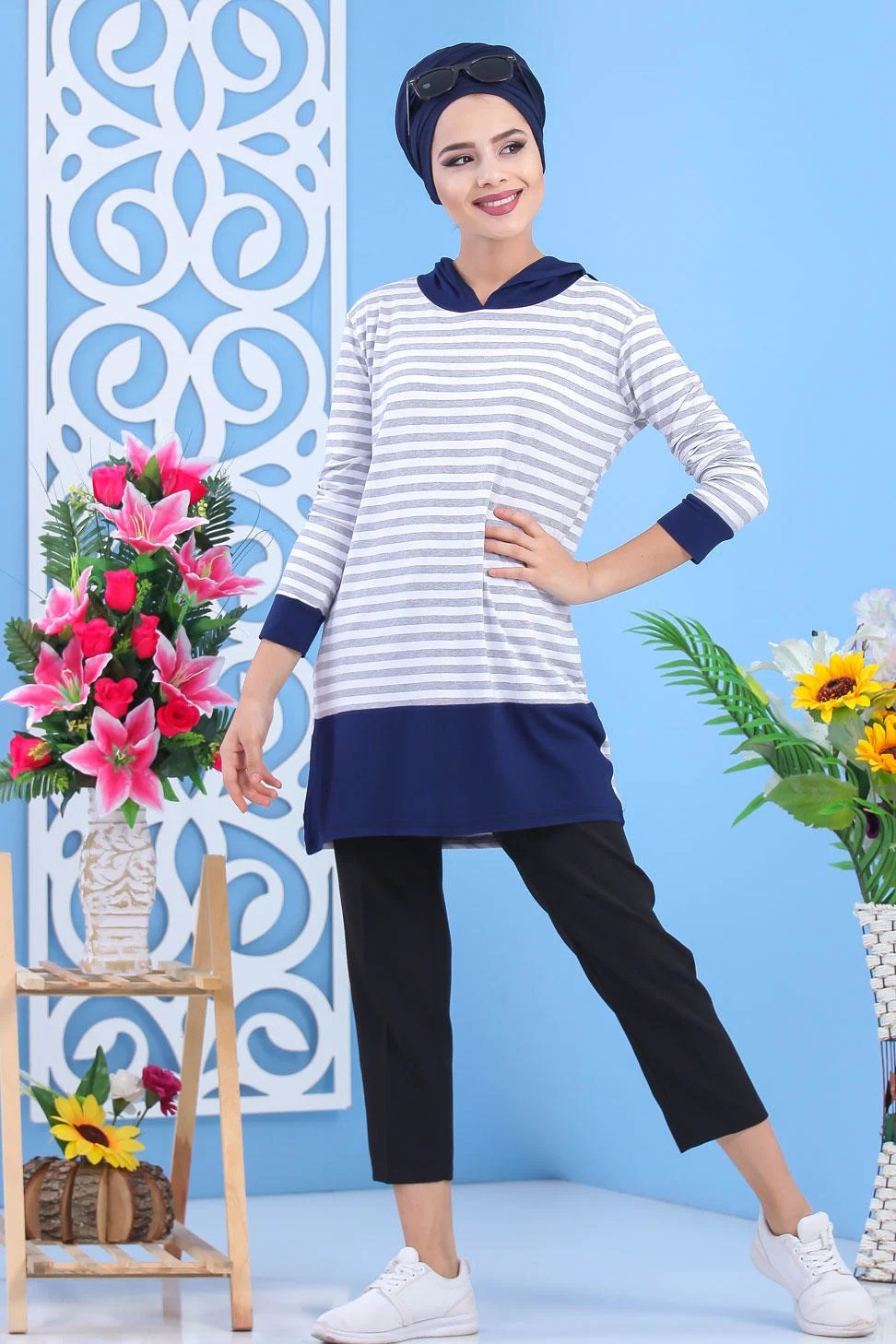 Ensemble survêtement avec sweat-shirt et jogger (Vêtement sport femme voilée) - Couleur Bleu marine - REF. 32895 (25.00 €) - En Promotion à 19.90 €