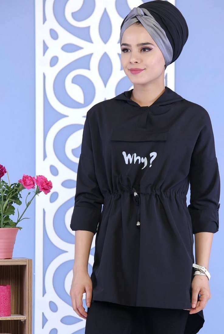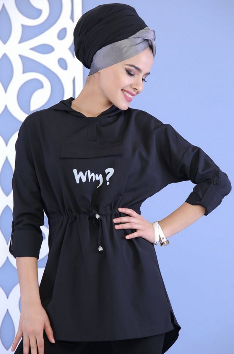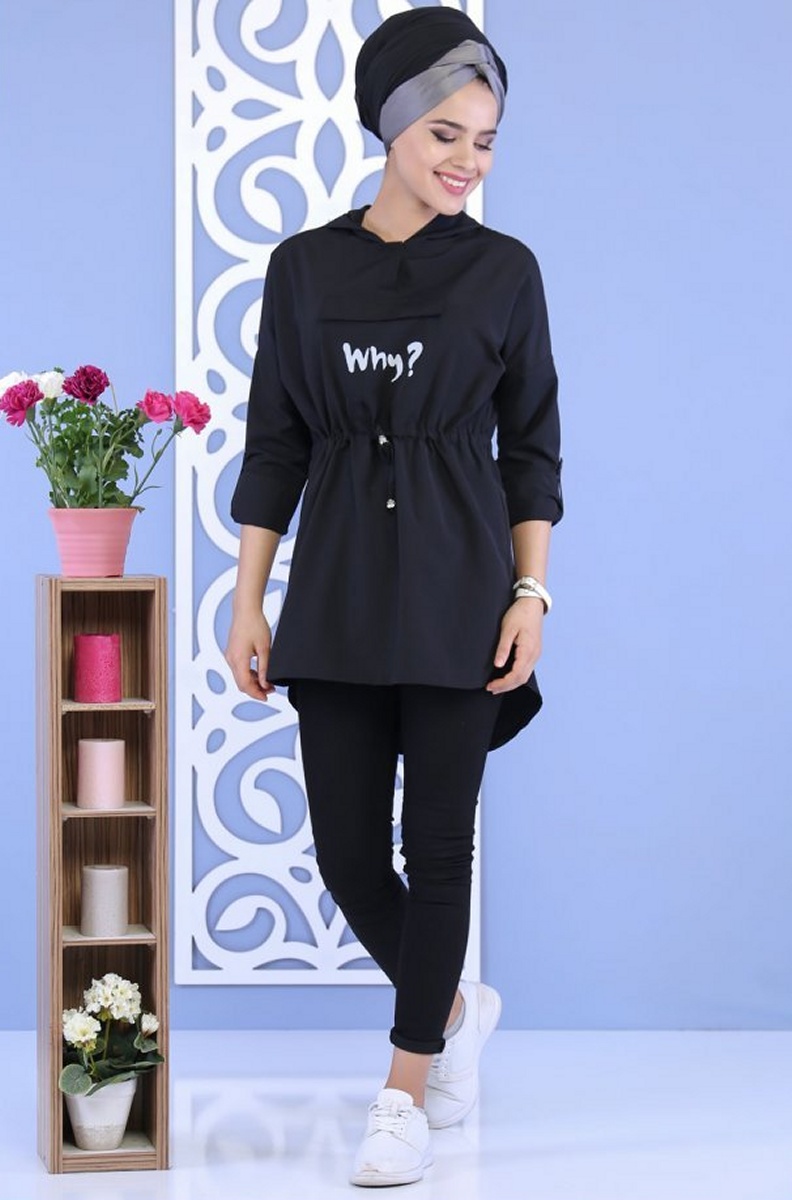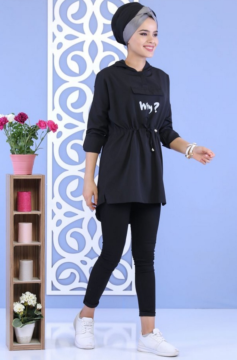 Tunique moderne pour femme - Sweat original pour hijab - Couleur noir - REF. 36226 (19.00 €)