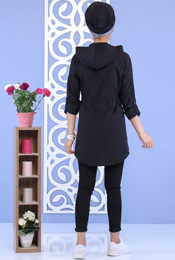 Sweat long avec capuche style moderne décontracté et sport (Vetement femme voilée) - Couleur Noir - REF. 32240 (19.90 €) - En Promotion à 16.90 €