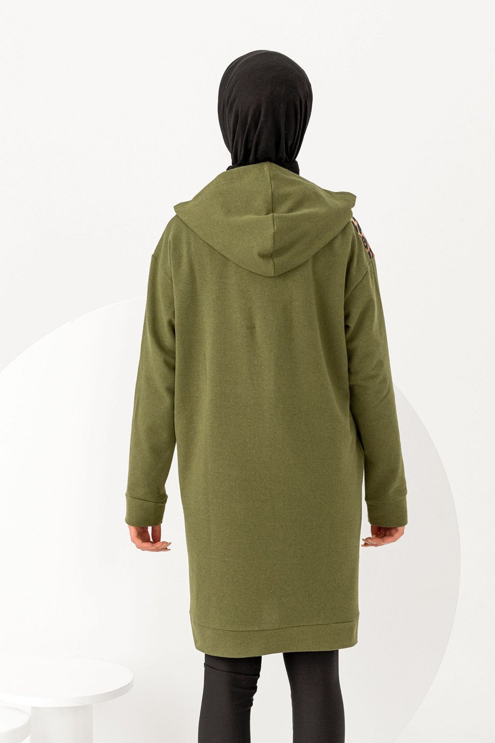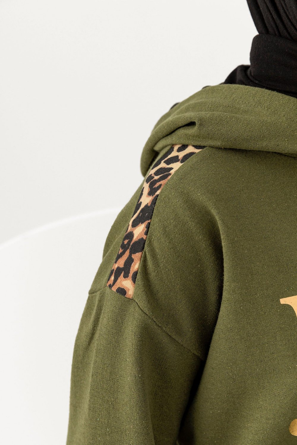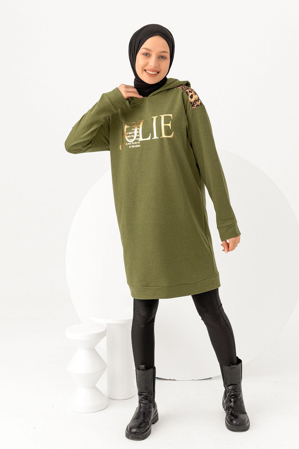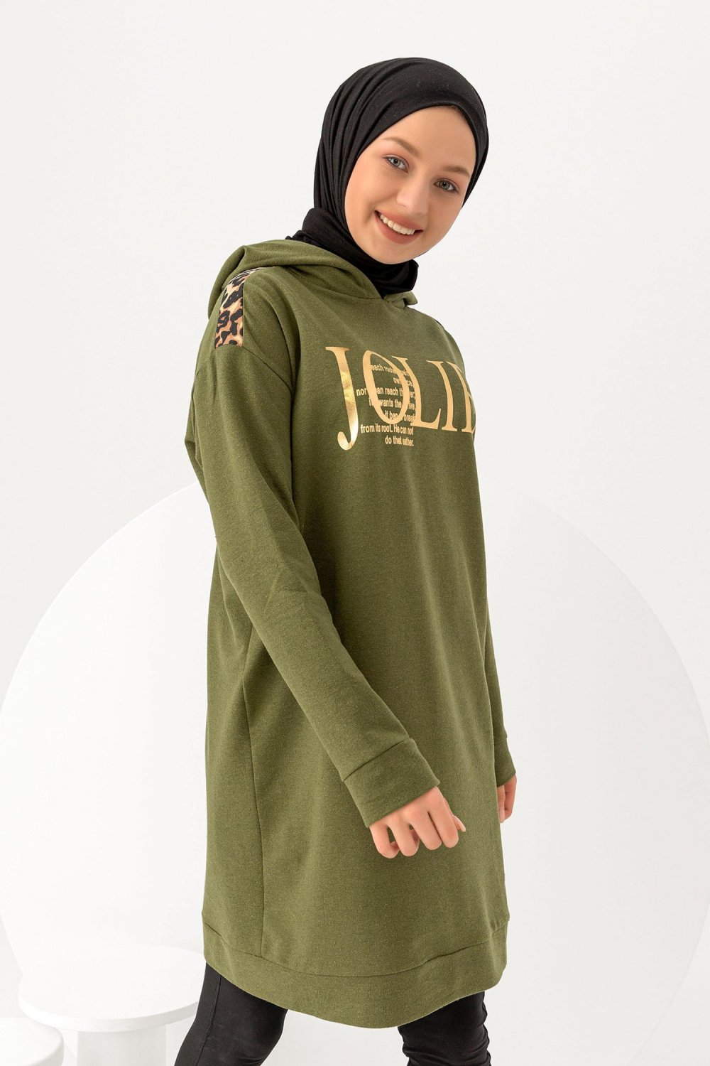 Tunique décontractée ample pour femme type sweat-shirt avec capuche et imprimé doré - Couleur kaki Vetement & Accessoire